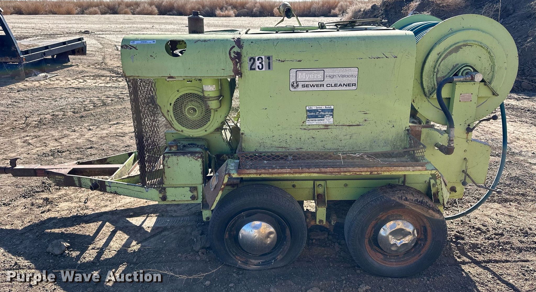 Purple Wave is selling a used Vacuum Excavator in Kansas. This item is a Myers sewer jetter trailer with the following: Wisconsin, Cylinders: 4, Fuel type: Gas