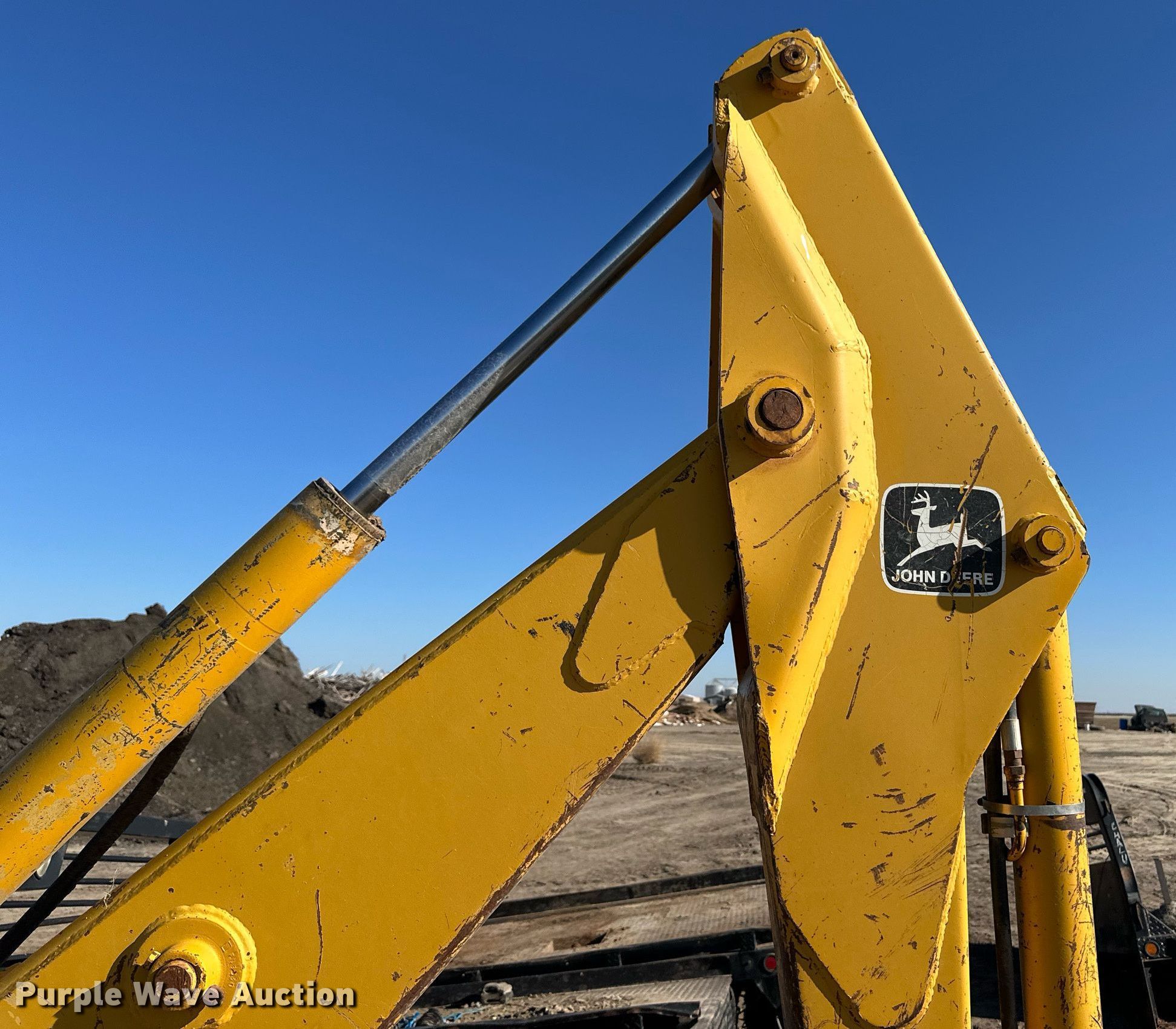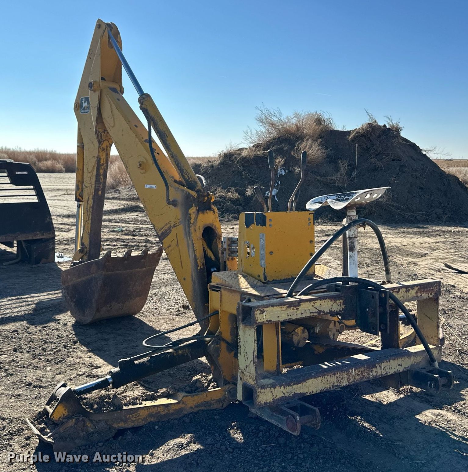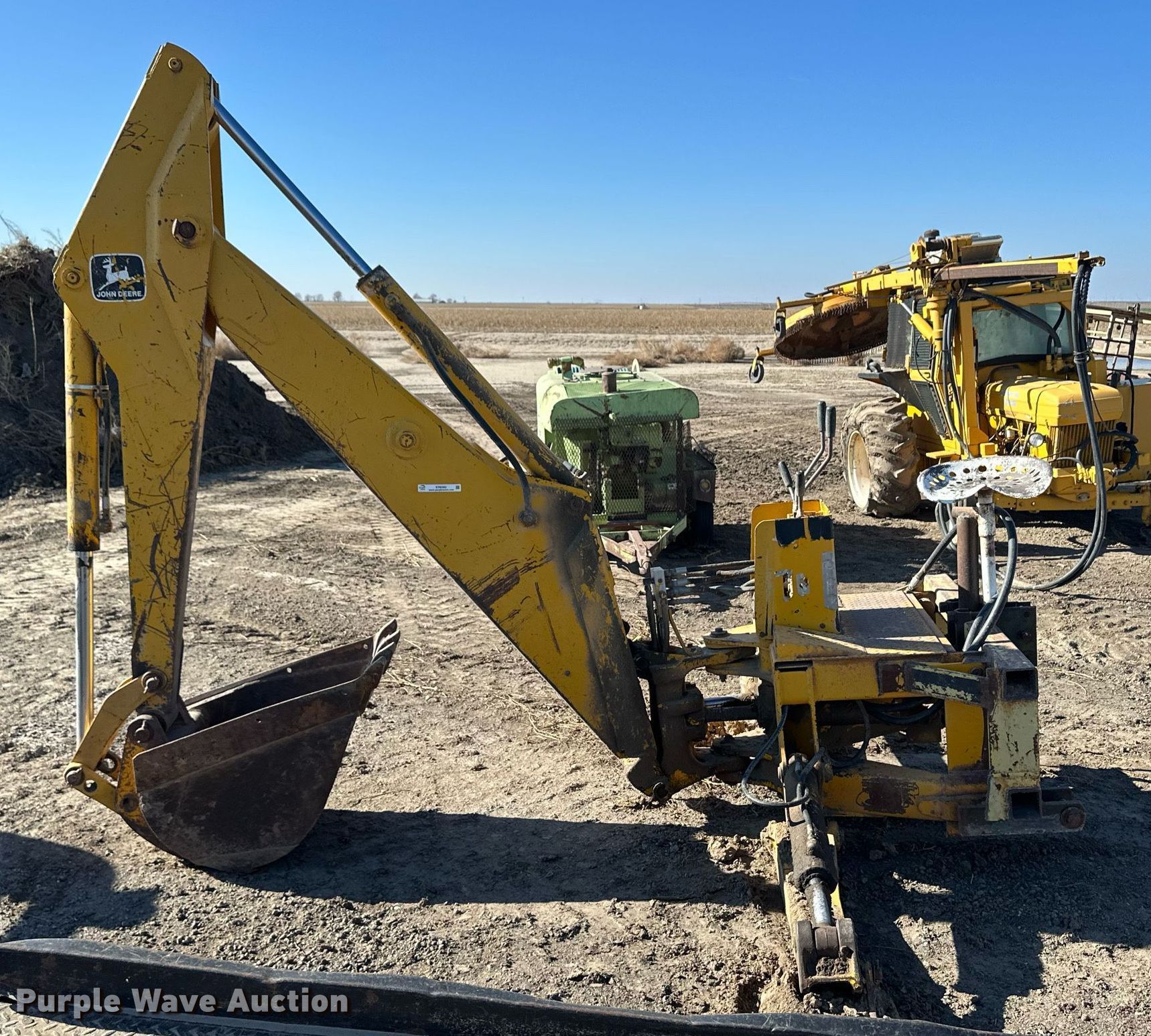 Purple Wave is selling a used Ag Equip. Other in Kansas. This item is a John Deere backhoe attachment with the following: Width: 23", Hitch: Three point