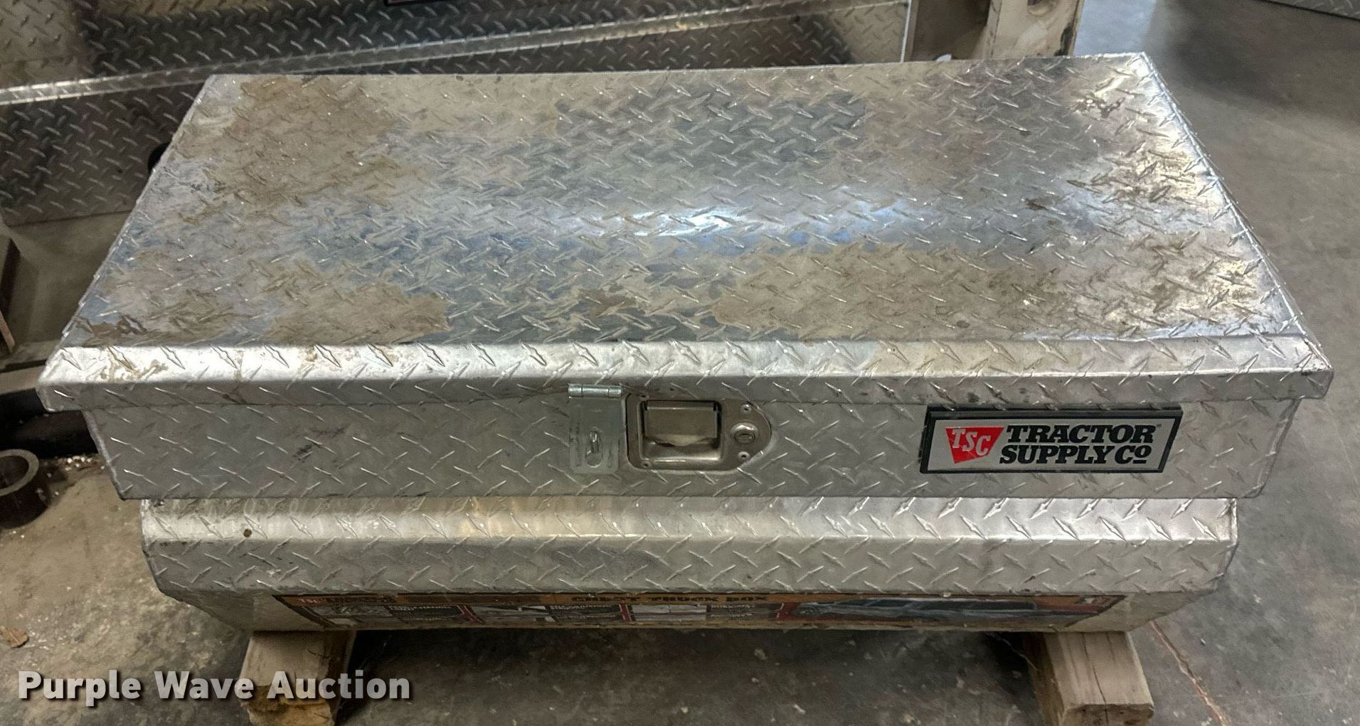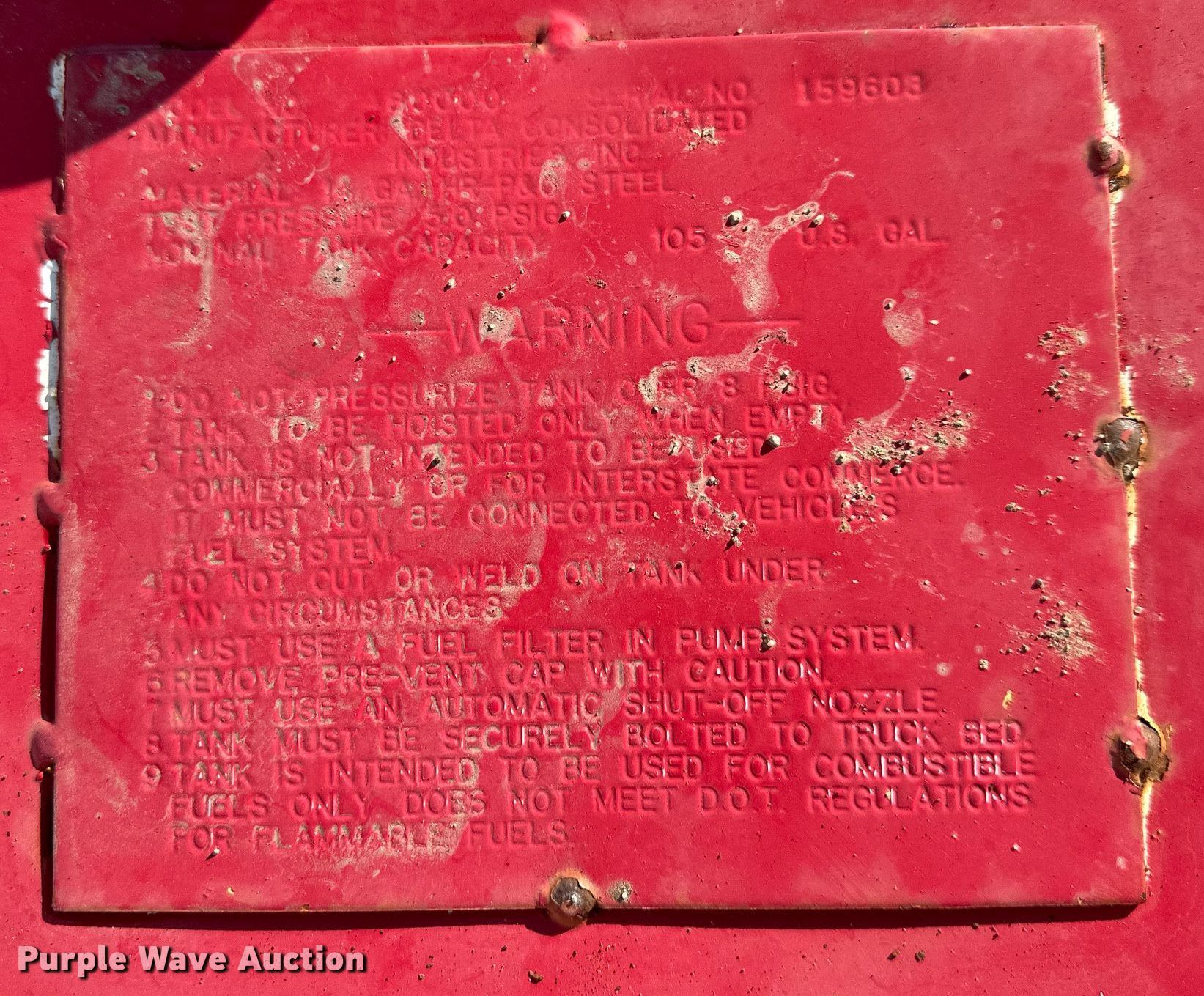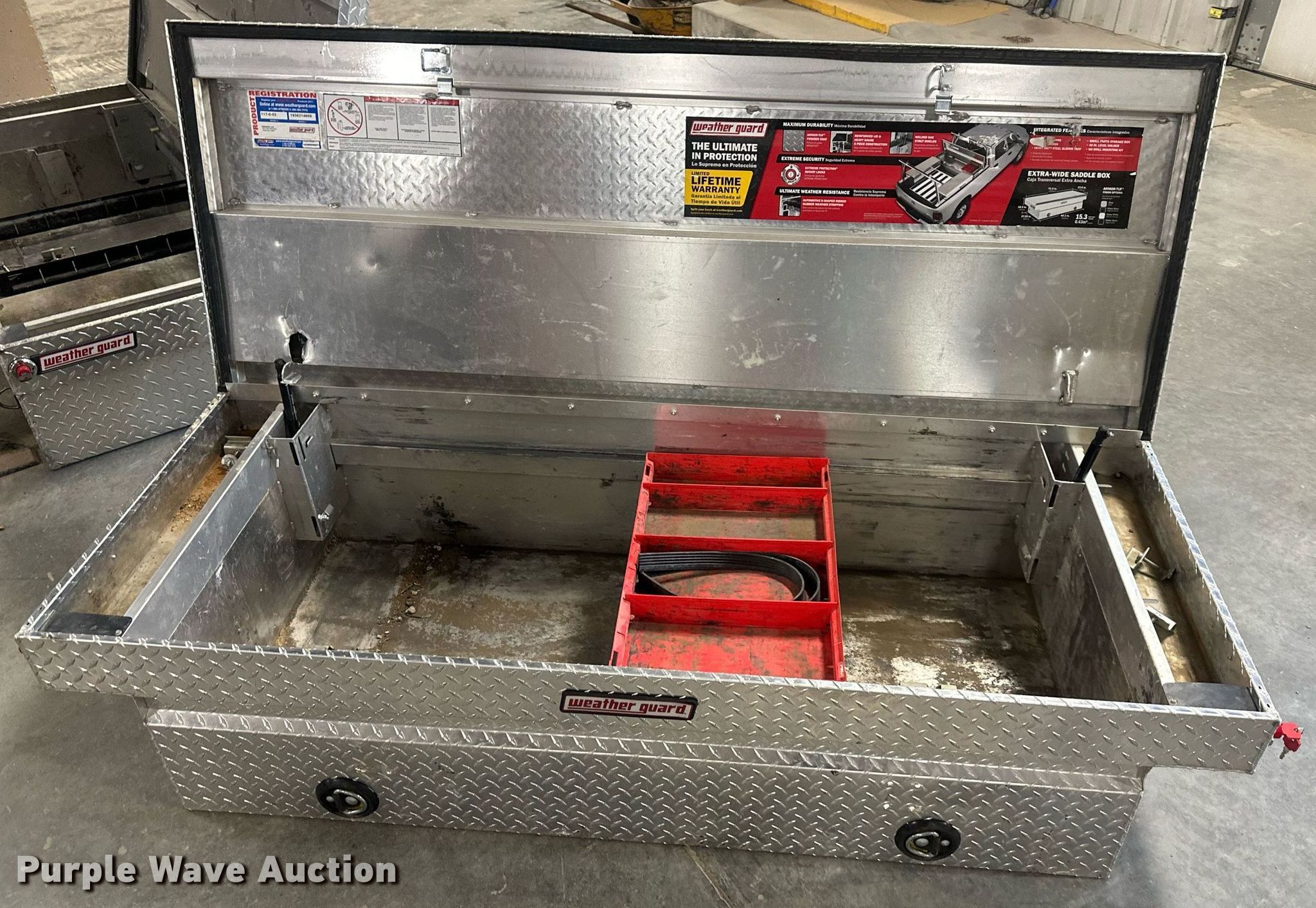 Purple Wave is selling a used Automotive Parts or Acces. in Kansas. This item is a Automotive parts with the following: L-shaped fuel tank, Capacity: 105 gallons, Pump, (2) Weather Guard toolboxes