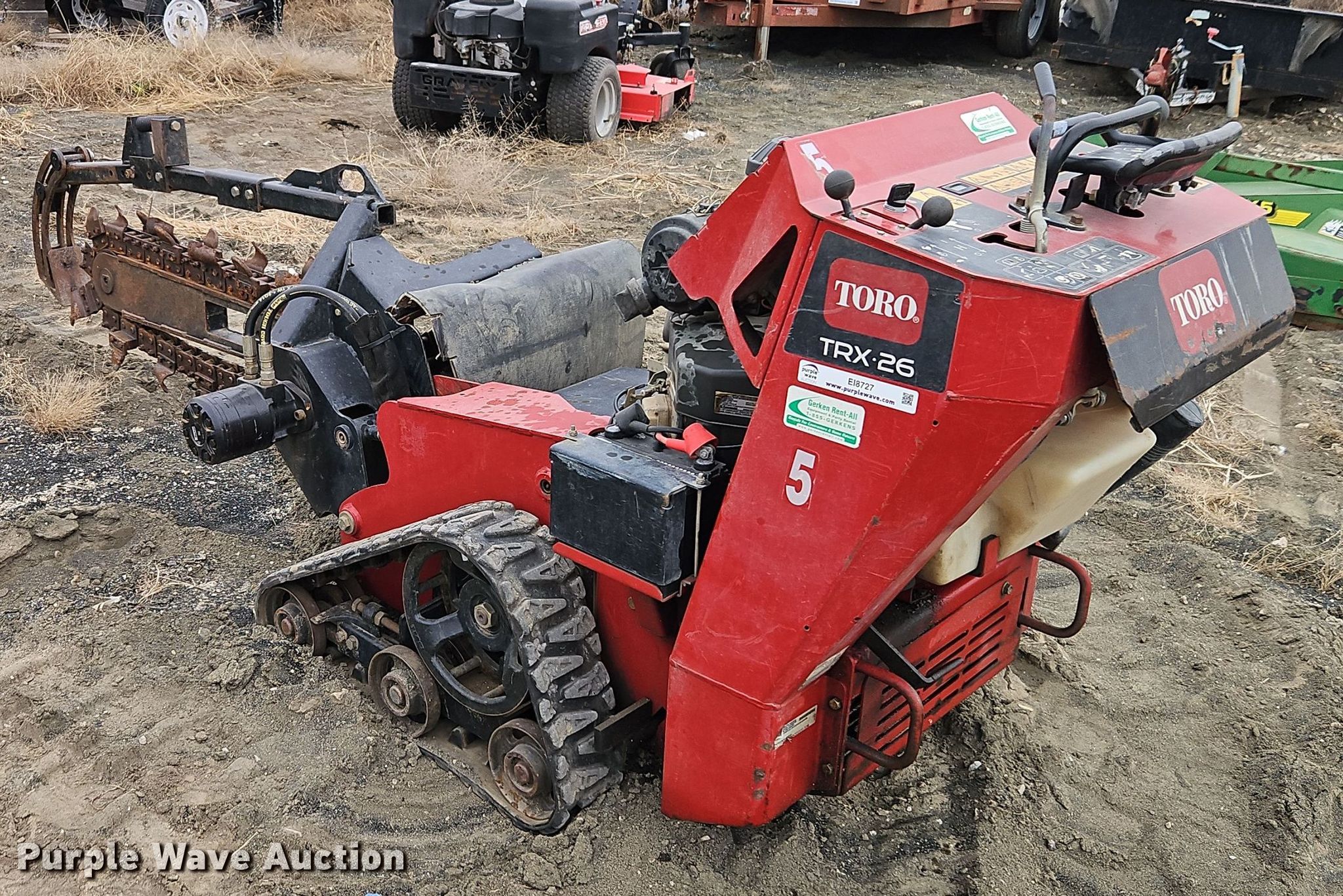 Purple Wave is selling a used Trencher or Rock Saw in Kansas. This item is a 2014 Toro TRX-26 trencher with the following: Hours: 557 on meter, Serial: 314000156