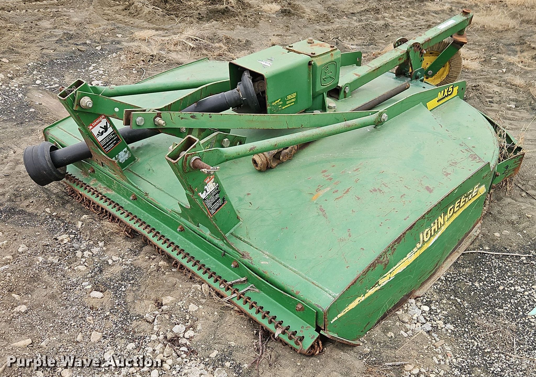 Purple Wave is selling a used Mower, Cutter, Shredder in Kansas. This item is a John Deere MX5 rotary mower with the following: Width: 60", PTO: 540, Hitch: Three point