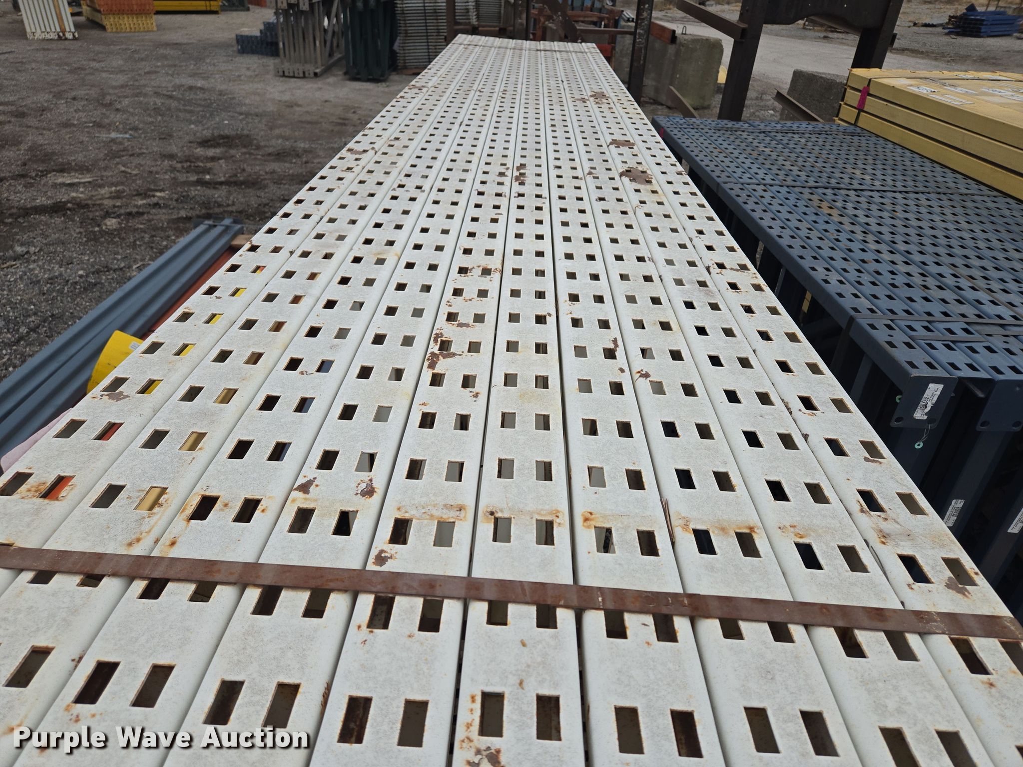 Purple Wave is selling a used Pallet Racking in Missouri. This item is a T-bolt pallet racking with the following: Unit #: 868453, (10) 52 x 168 uprights, (4) 96 x 2 1/2 beams, (12) 96 x 3 1/4 beams, (20) 96 x 3 1/2 beams, Aisle guard