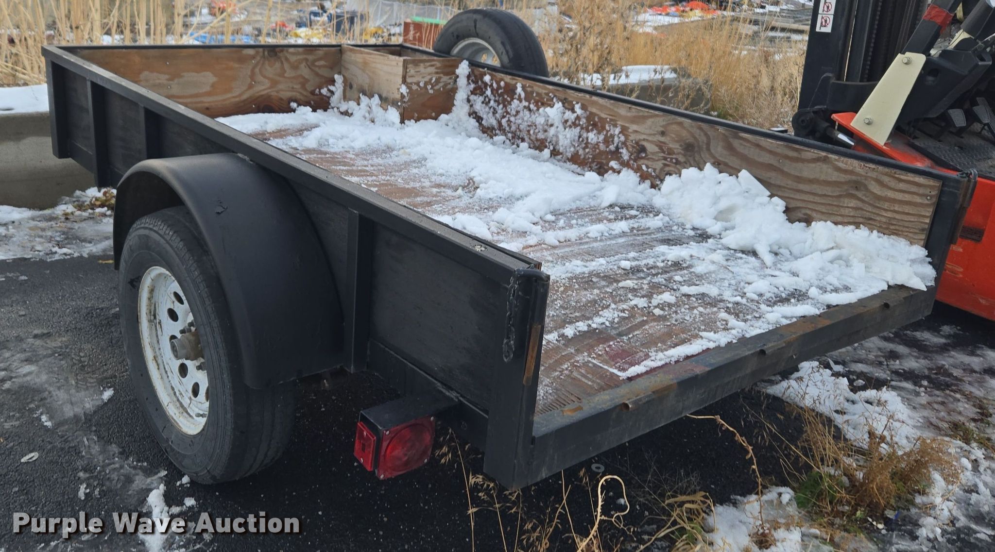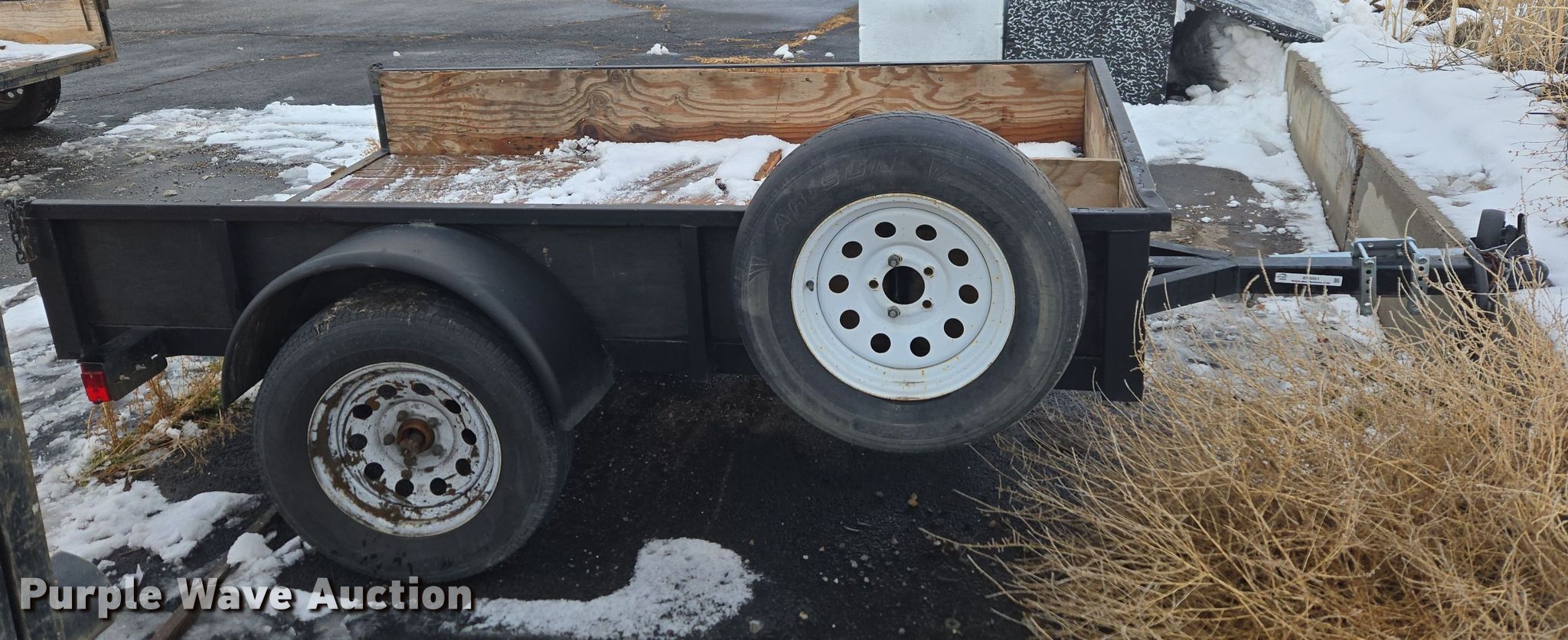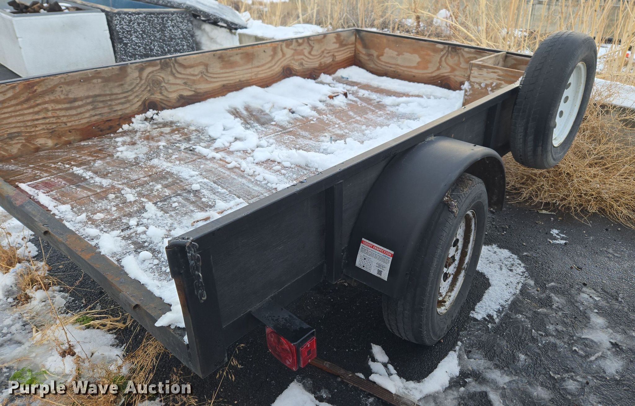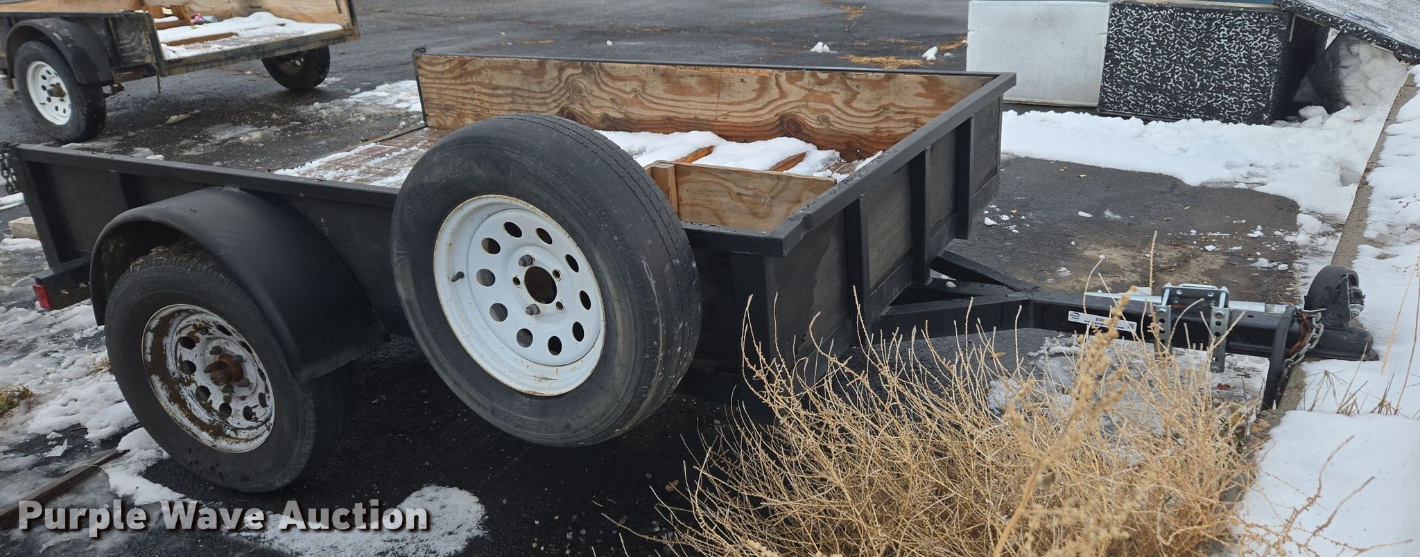 2021 Big Bubbas utility trailer. VIN: 5F7US0813MU048927, Unit #: 6644. Dimensions Overall: 11' 5" L x 79" W, Deck: 8' 4" L x 63" W, Side height: 11". Features Deck type: Wood. Chassis Ball hitch: 2", Landing gear: Single, Suspension: Spring, Brakes: Electric, Axles: Single, GVWR: 2,990 lbs, GAWR: 3,500 lbs. Tires Steel wheels, Size: 205/75R15. Notes Axle damaged, Wheel hub damaged, Non-operational landing gear. Transfer of ownership documentation will be a bill of sale. Wilbert Funeral Services. Preston, ID 83263