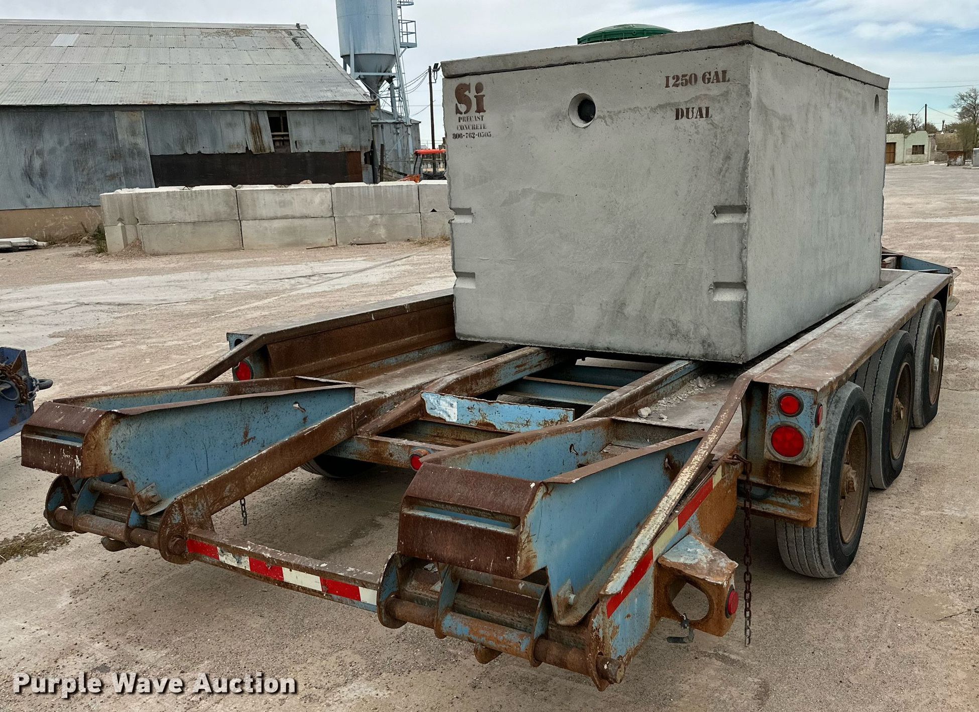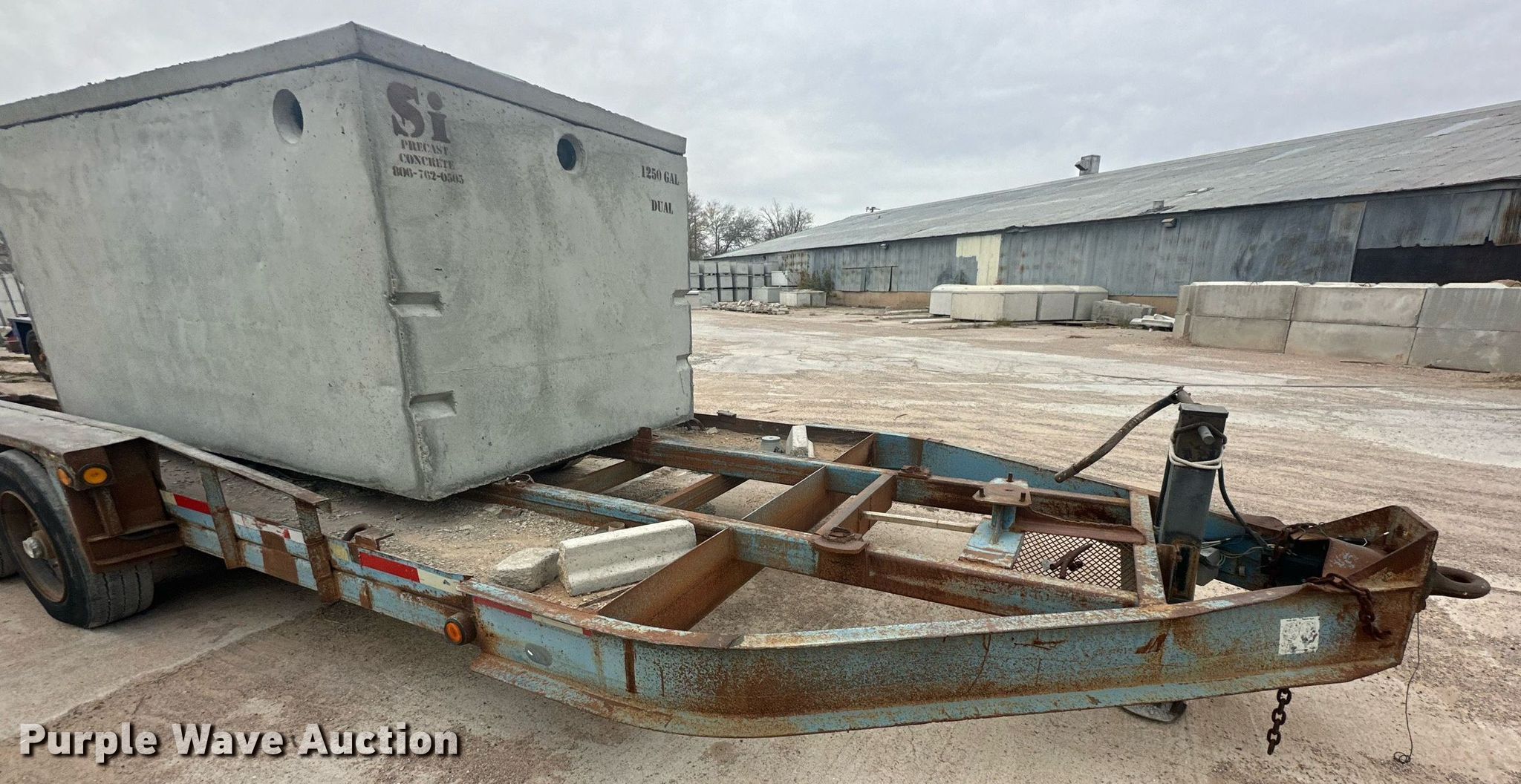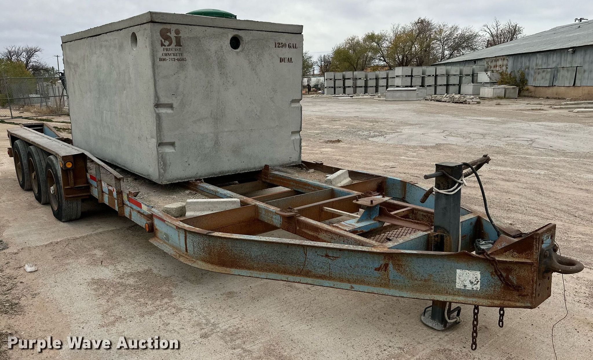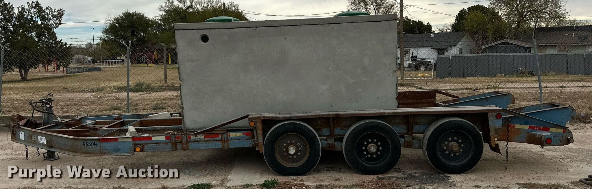 2001 Belshe T-18 equipment trailer. VIN: 16JF0183011036285. Dimensions Overall: 28' L x 108" W, Deck: 18' L x 92" W, Tail length: 3', Ramps: Manual Length: 4'. Features Deck type: Steel. Chassis Hitch: Pintle, Landing gear: Single, Suspension: Spring, Brakes: Electric, Axles: Triple, GVWR: 24,000 lbs. Tires Steel wheels, Size: 215/75R17.5. Notes Concrete container will be removed prior to auction. Texas title. Title distribution may be delayed up to 30 days from verification of funds. Wilbert Funeral Services. Lubbock, TX 79415