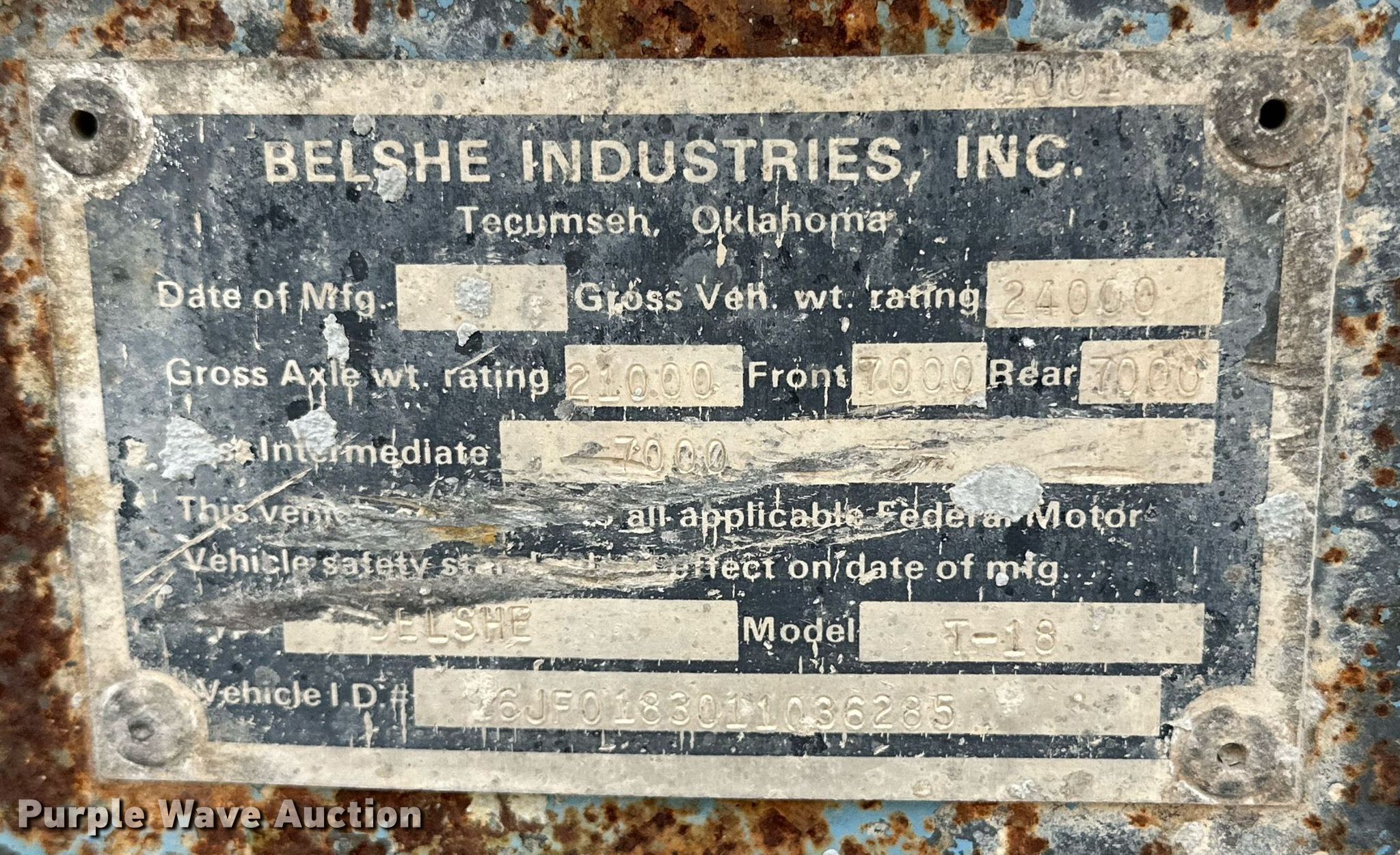 Purple Wave is selling a used Equip. Trailer in Texas. This item is a 2001 Belshe T-18 equipment trailer with the following: VIN: 16JF0183011036285