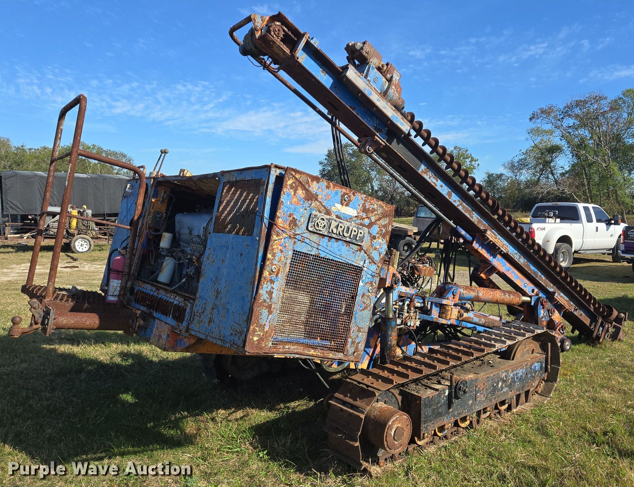 Krupp drilling rig. Hours: 3,132 on meter. Engine Deutz, Cylinders: 6, Fuel type: Diesel. Features Drill bit width: 6". Tracks Width: 12", Steel. Notes Dead battery, hydraulic leak. Angleton, TX 77515