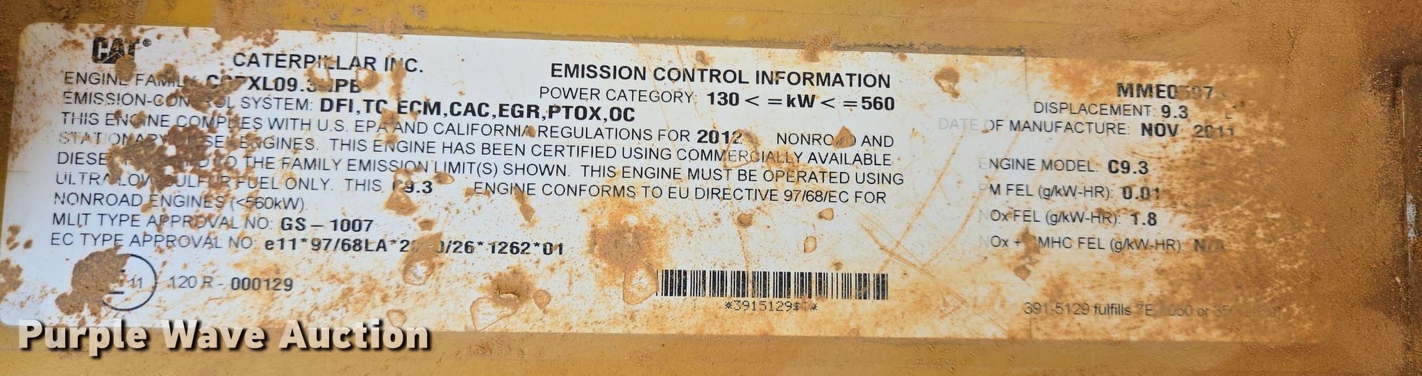 2012 Caterpillar 336E excavator. Hours: Unknown, Serial: CAT0336ECBZY01307. Engine Caterpillar C9.3, Serial: MME0597, Displacement: 9.3L, Cylinders: 6, Fuel type: Diesel, HP: 316, kW: 236. Transmission Hydrostatic. Operators station Enclosed cab, AC, Heat, Backup camera. Features Boom Standard, Stick Stick length: 10', Bucket Caterpillar, Width: 54", Teeth: 6. Tracks Width: 33.5", Steel, Grouser pads: Triple. Notes Dead battery. Capital Sand Company. Jonesboro, AR 72401