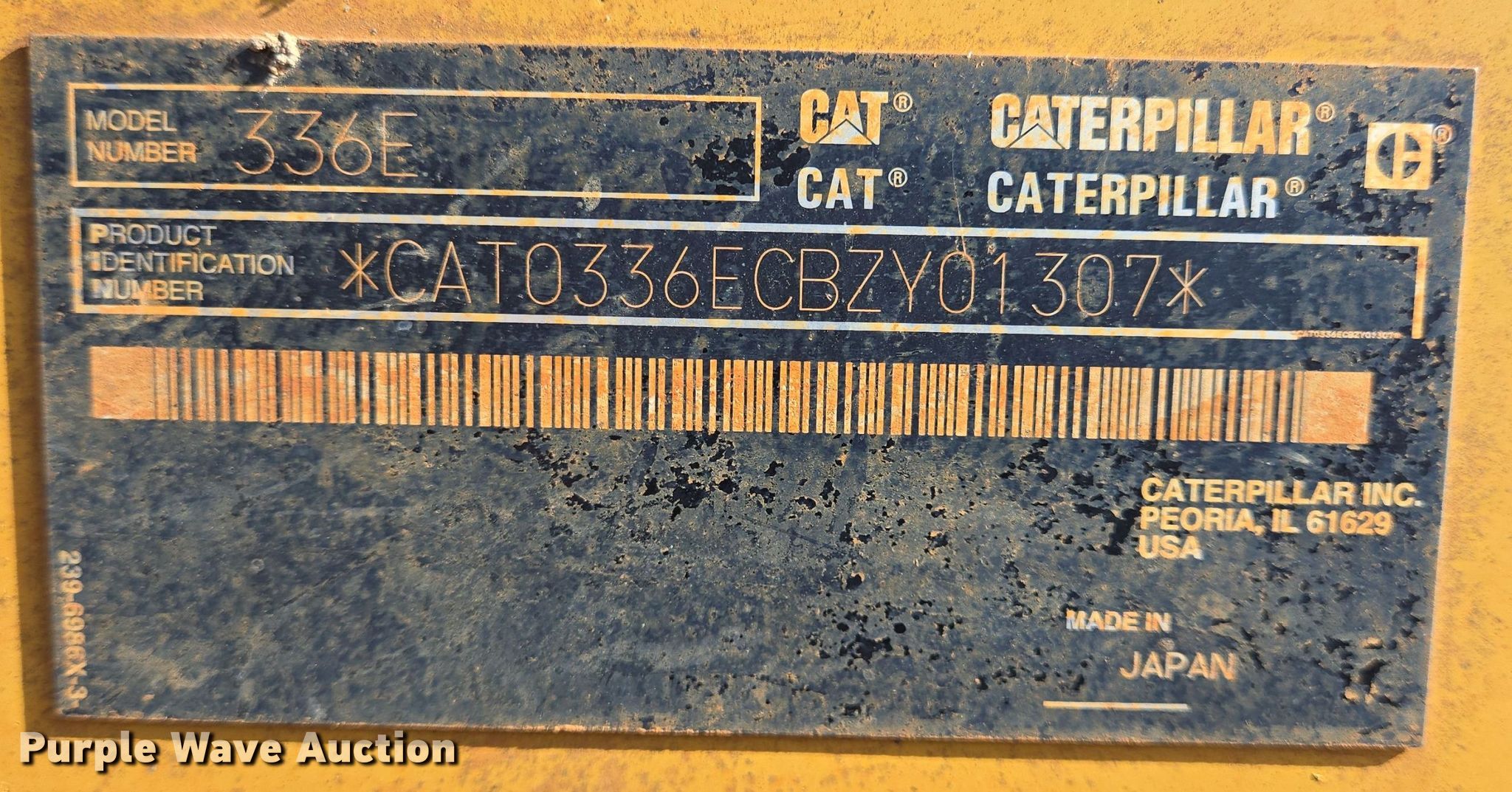 Purple Wave is selling a used Hydraulic Excavator in Arkansas. This item is a 2012 Caterpillar 336E excavator with the following: Hours: Unknown, Serial: CAT0336ECBZY01307