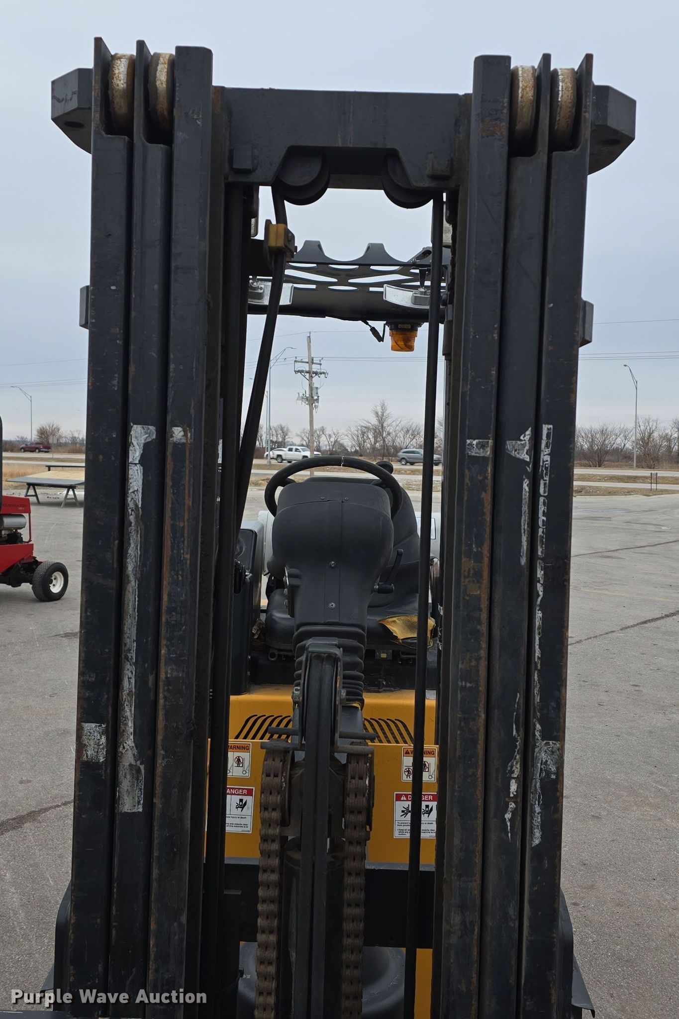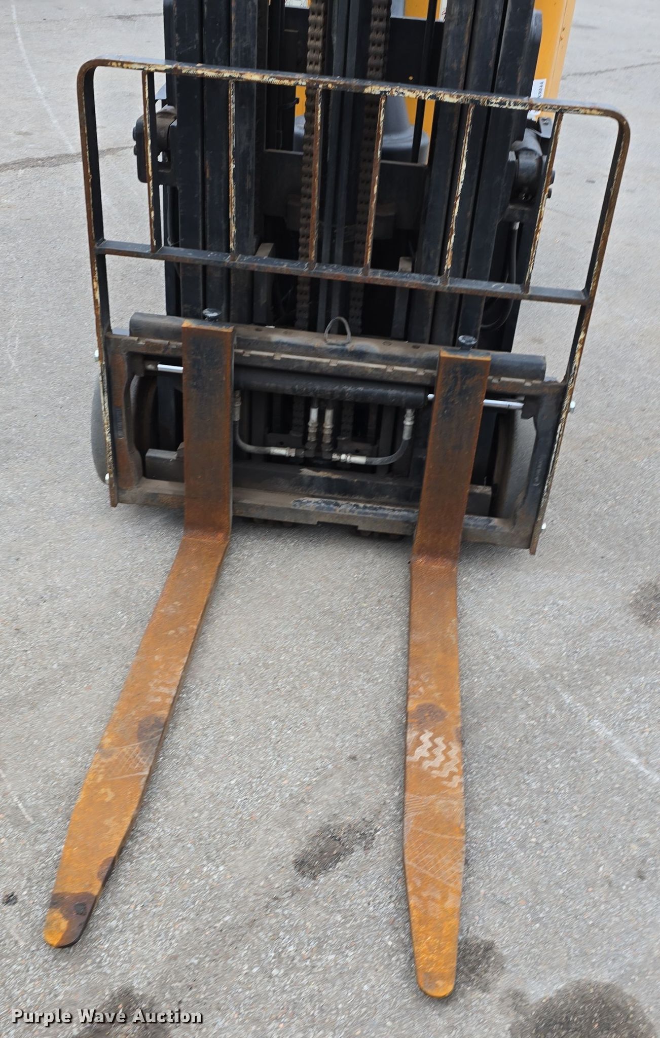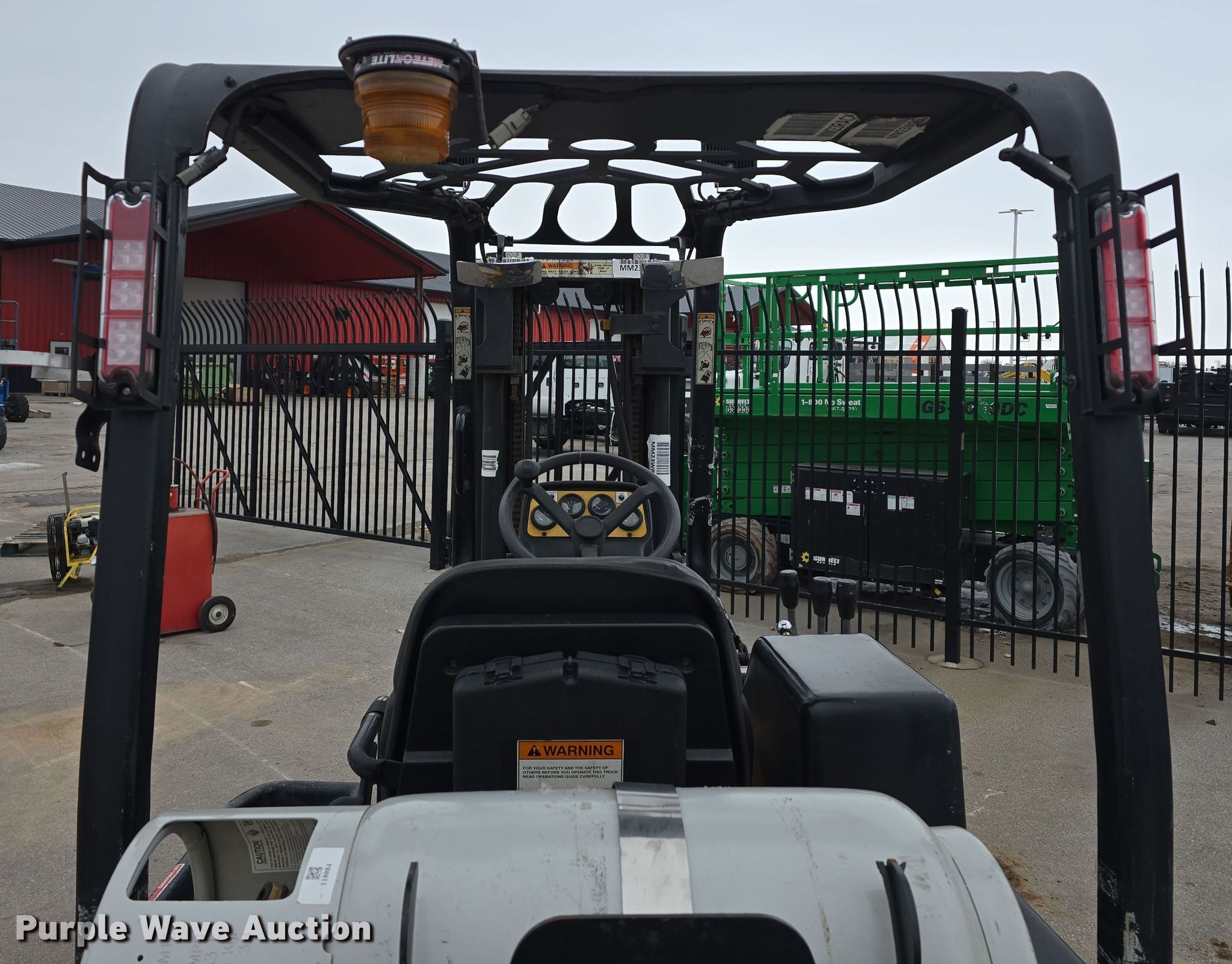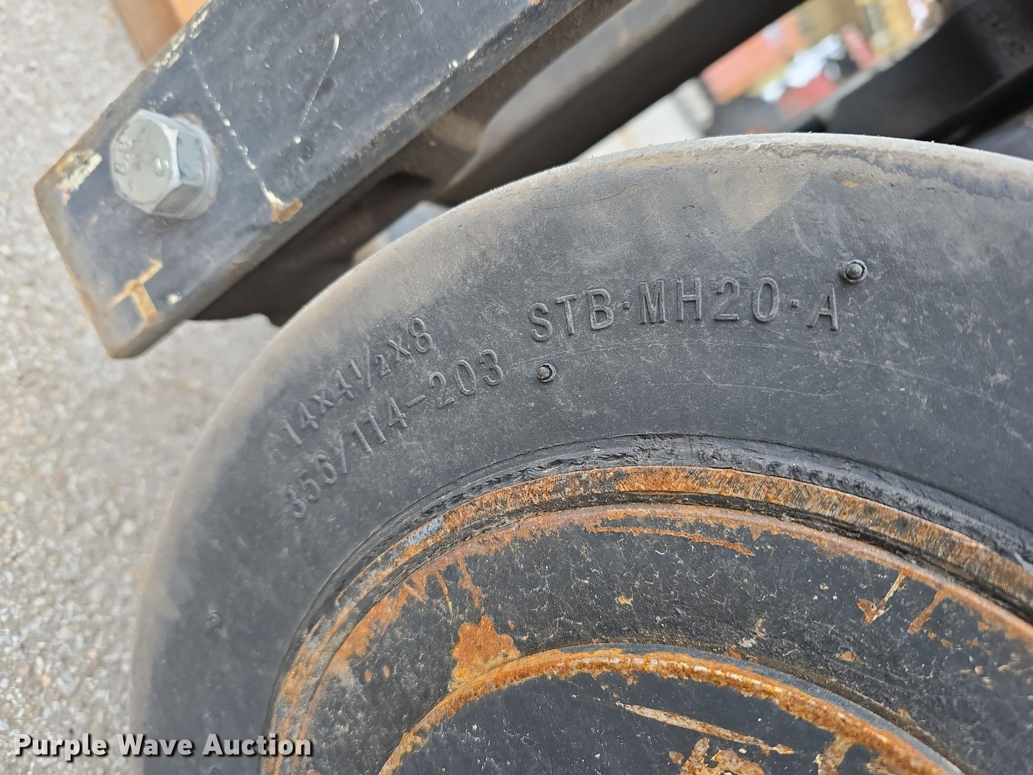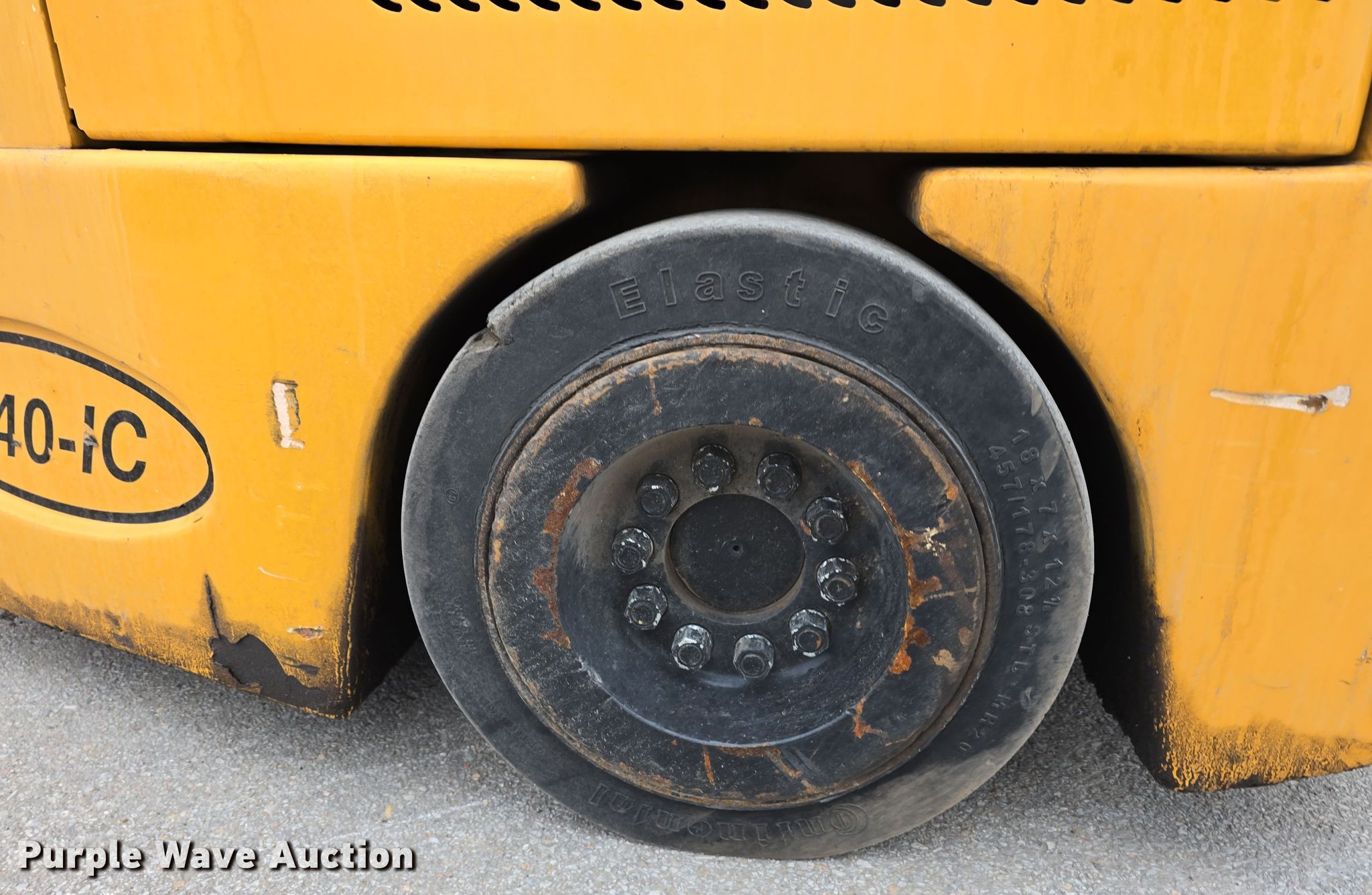 Landoll B40-IC forklift. Hours: 2,638 on meter, Serial: B40/48IC-612B-04399. Engine Cylinders: 4, Fuel type: LPG LP bottle: Not included. Transmission Hydrostatic. Operators station Canopy. Features Maximum lift capacity: 4,000 lbs, Maximum lift height: 198", Mast stages: 3, Side shift, Mast tilt, Fork length: 40". Tires Front: 14x4.5x8, Rear: 18x7x12 1/8, Solid. Jordan Machinery/ S & N Auto Sales. Waterloo, NE 68069