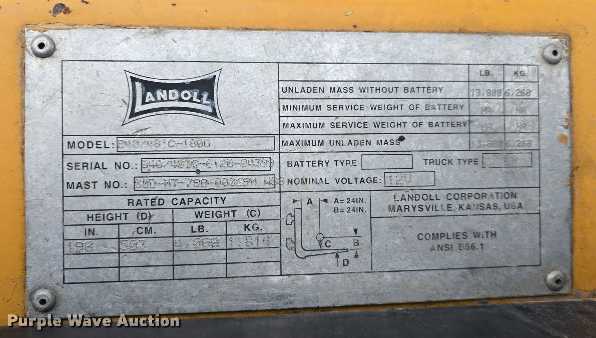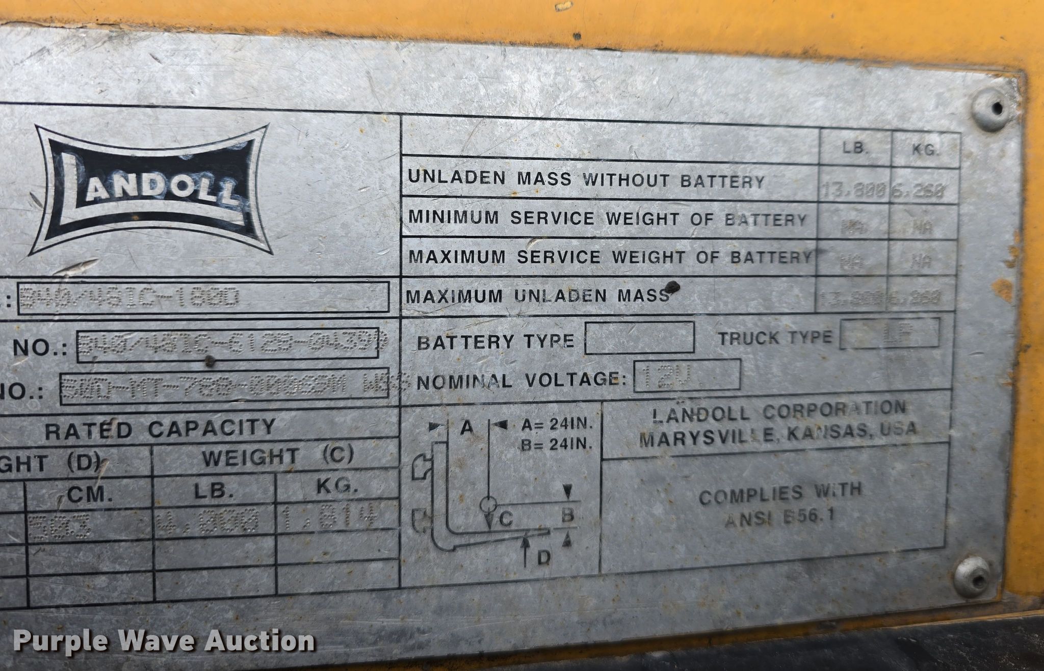 Purple Wave is selling a used Warehouse Forklift in Nebraska. This item is a Landoll B40-IC forklift with the following: Hours: 2,638 on meter, Serial: B40/48IC-612B-04399