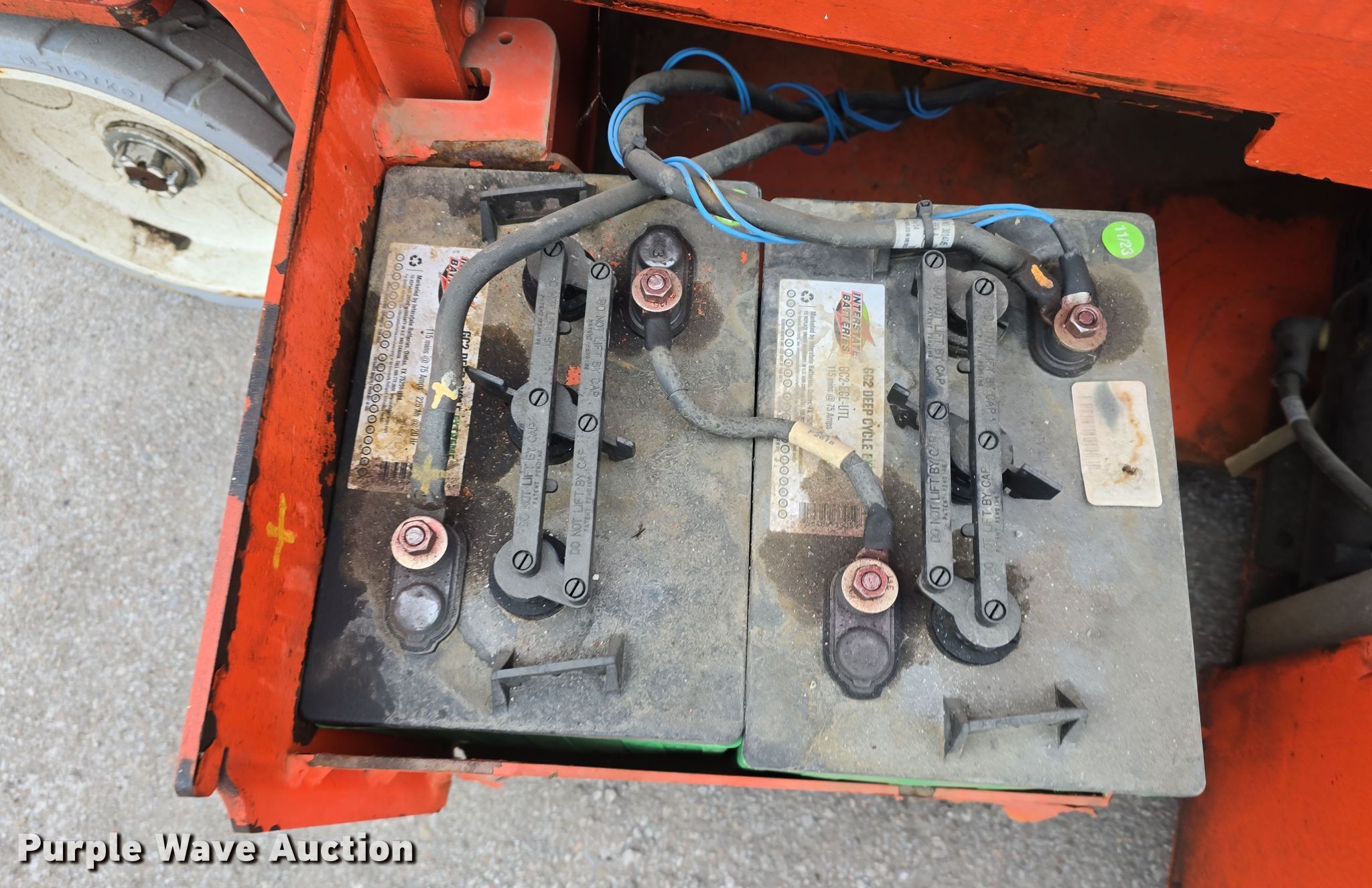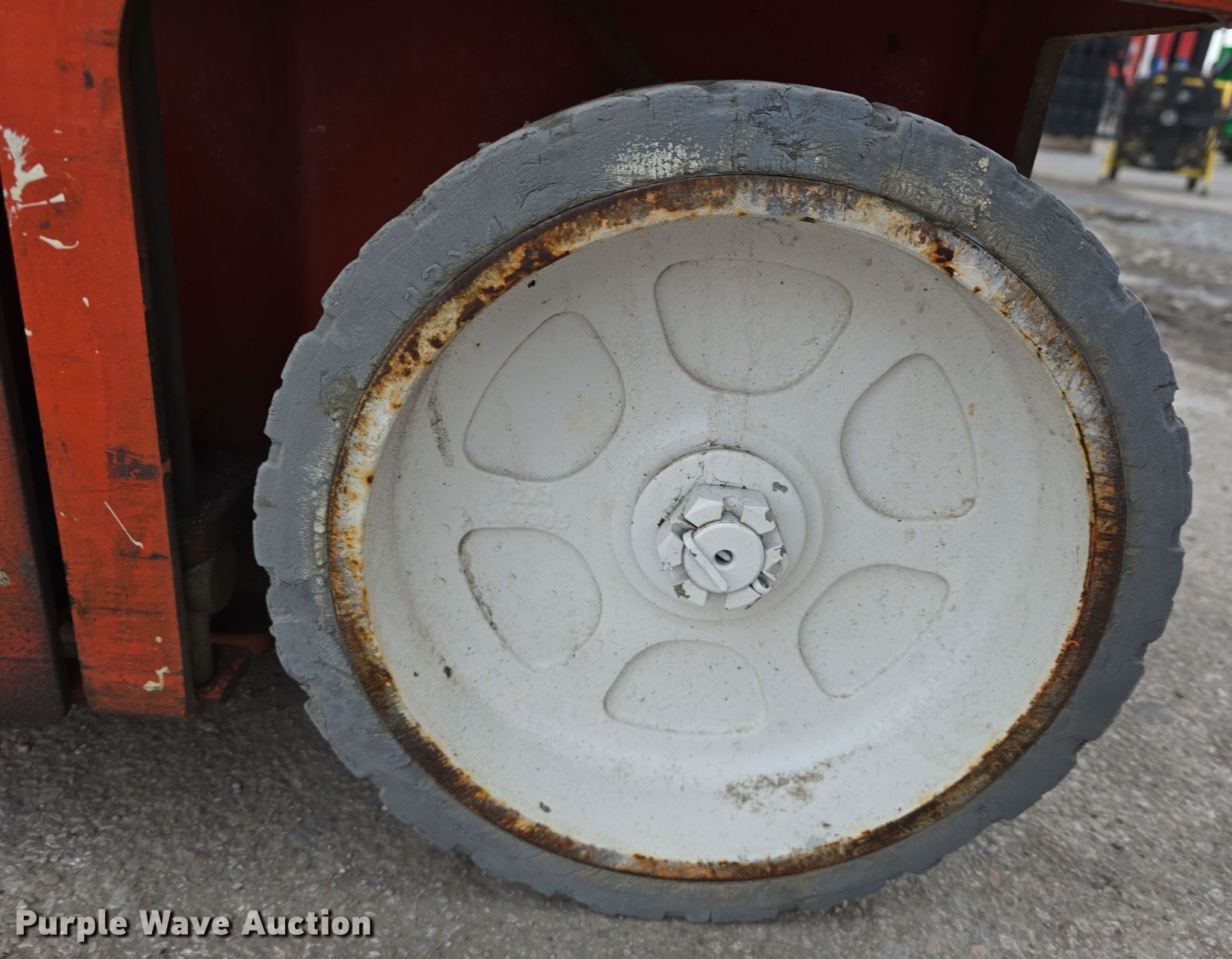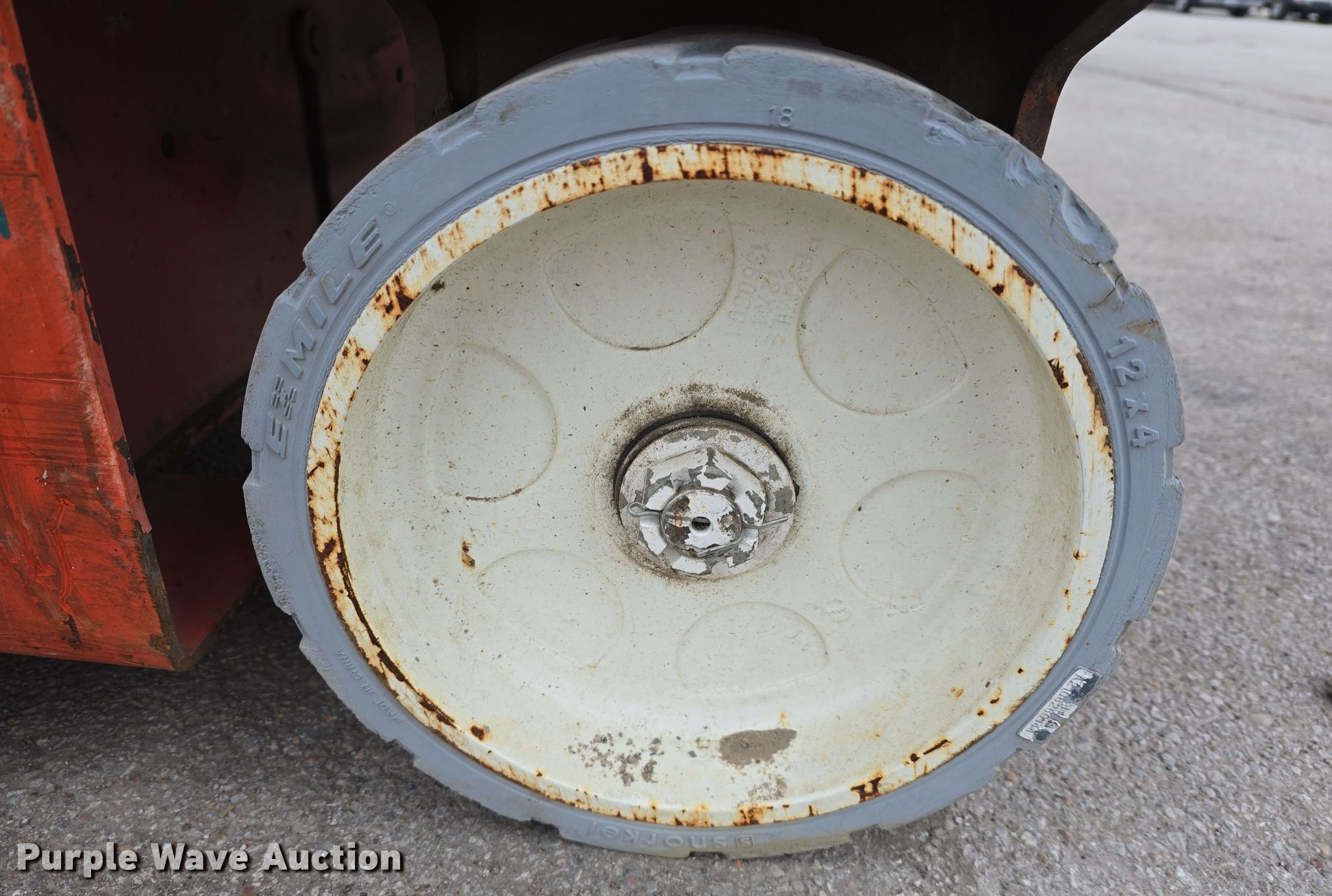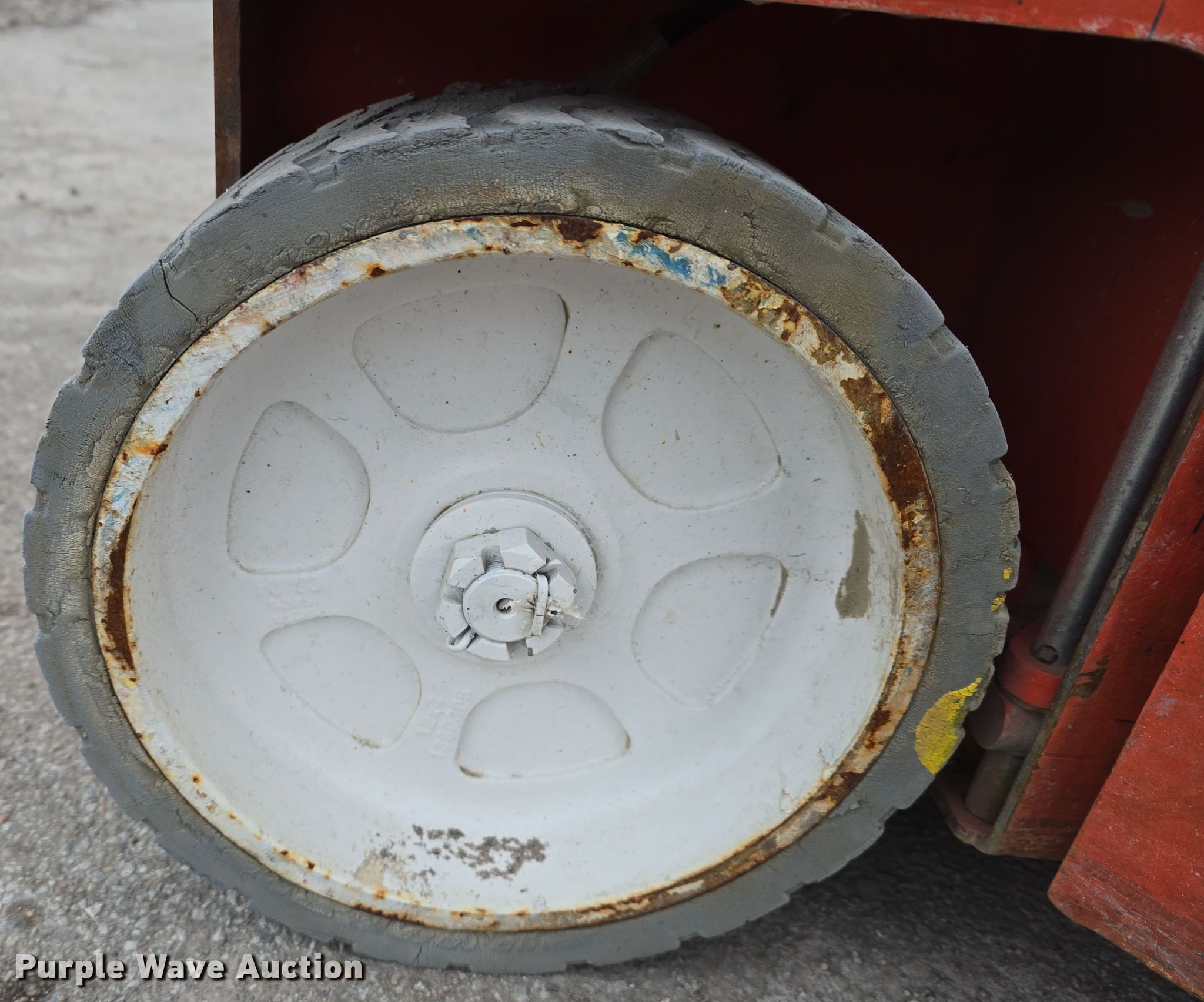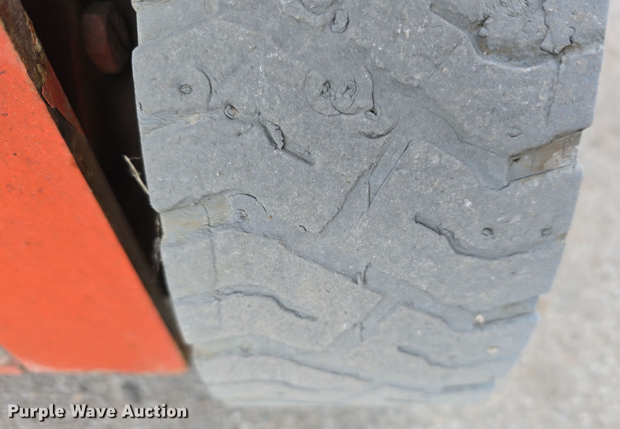 2015 Snorkel S3219E scissor lift. Hours: 512 on meter, Serial: S3219E-04-000270. Electric Motor Volts: 24. Features Maximum lift capacity: 550 lbs, Maximum lift height: 19', Platform: 102" L x 30" W, Controls: Remote Control, Ground, Platform extensions: Manual, Safety alarm. Tires Tire size: 12x4, Solid, Non-marking. Notes Owners manual. Jordan Machinery/ S & N Auto Sales. Waterloo, NE 68069