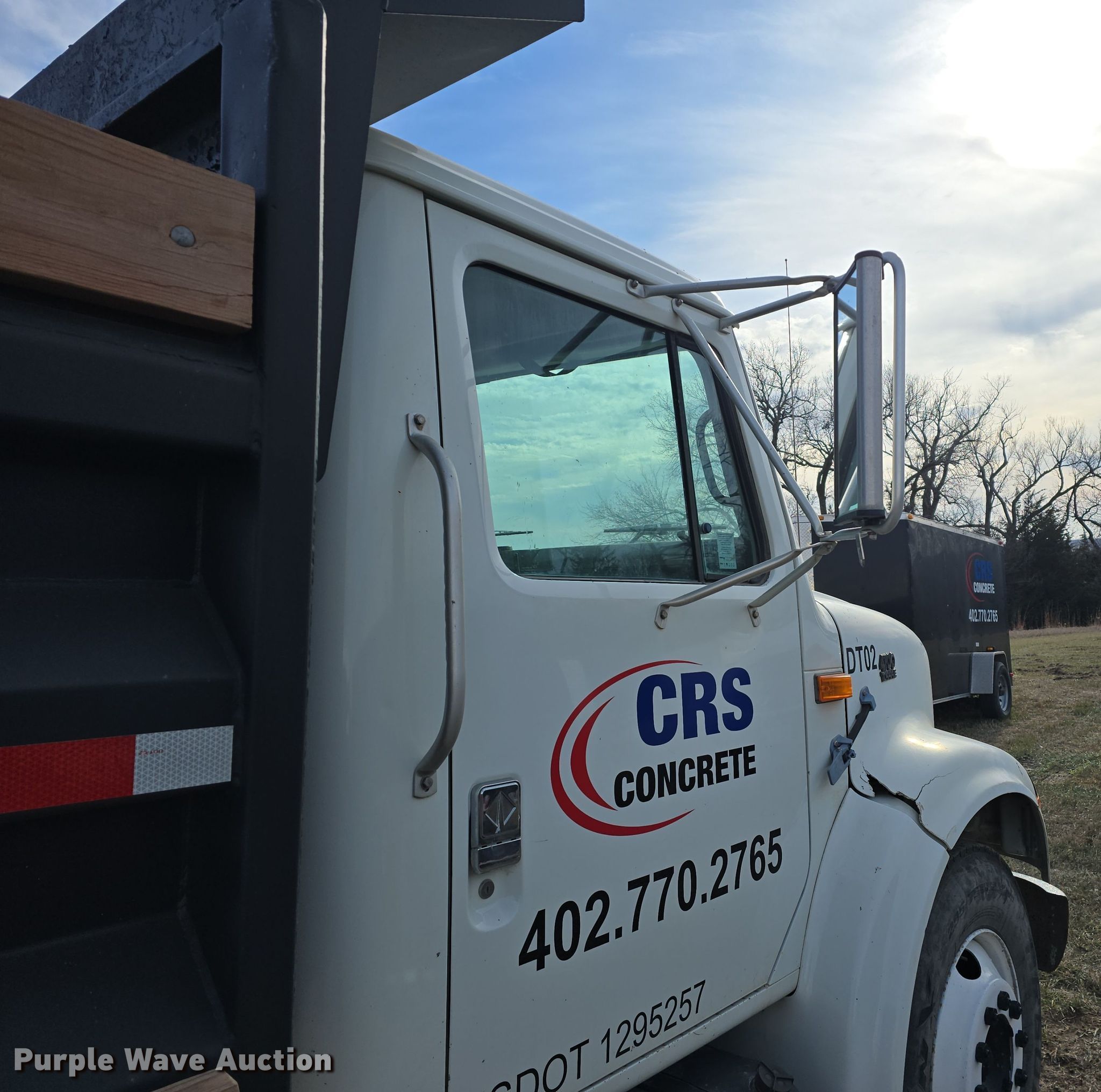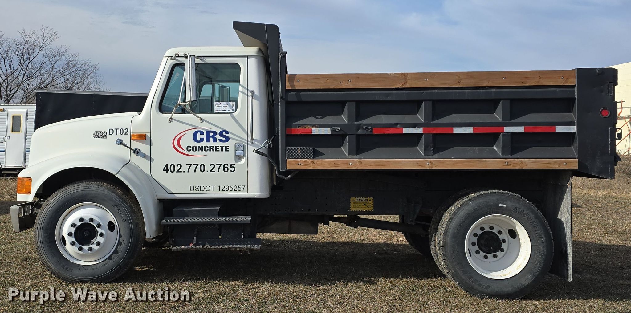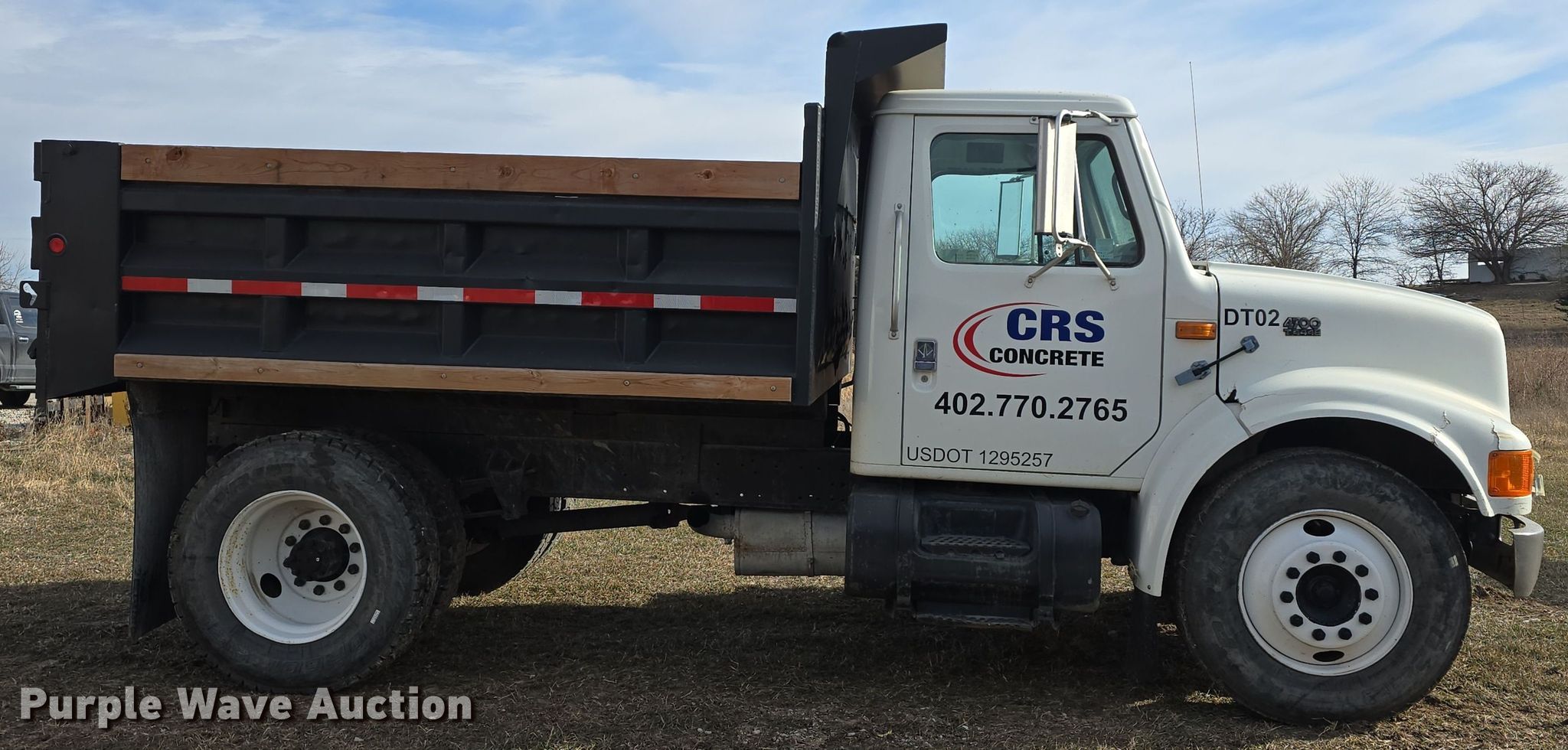 1998 International 4700 dump truck. Miles: 71,863 on odometer, VIN: 1HTSCABM7WH515175. Engine International B190, Displacement: 7.3L, Cylinders: 6, Fuel type: Diesel, HP: 190. Transmission International 6 Plus, Manual, Speed: 7. Chassis Axles: Single, Suspension: Spring, Brakes: Hydraulic, PTO, GVWR: 25,000 lbs FAWR: 8,000 lbs, RAWR: 17,500 lbs, Wheelbase: 150". Interior Heat, Cruise control, Brake controller. Features Dump bed 10' L x 96" W, Side height: 26", Side board height: 6", Bed type: Steel, Ram: Single, End gate: Manual. Tires Size: 295/75R22.5. Nebraska title. Title distribution may be delayed up to 14 days from verification of funds. CRS Concrete. Denton, NE 68339