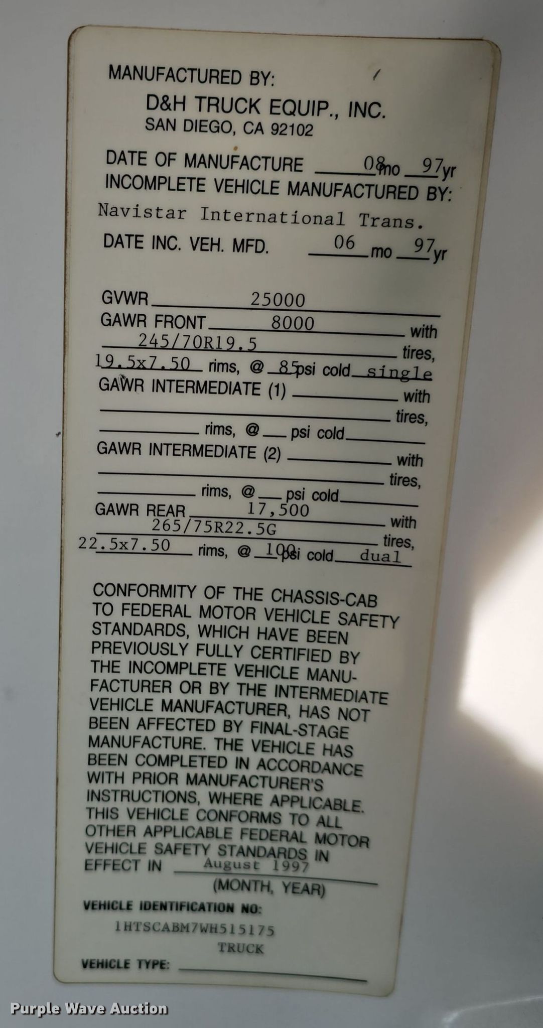 • VIN: 1HTSCABM7WH515175