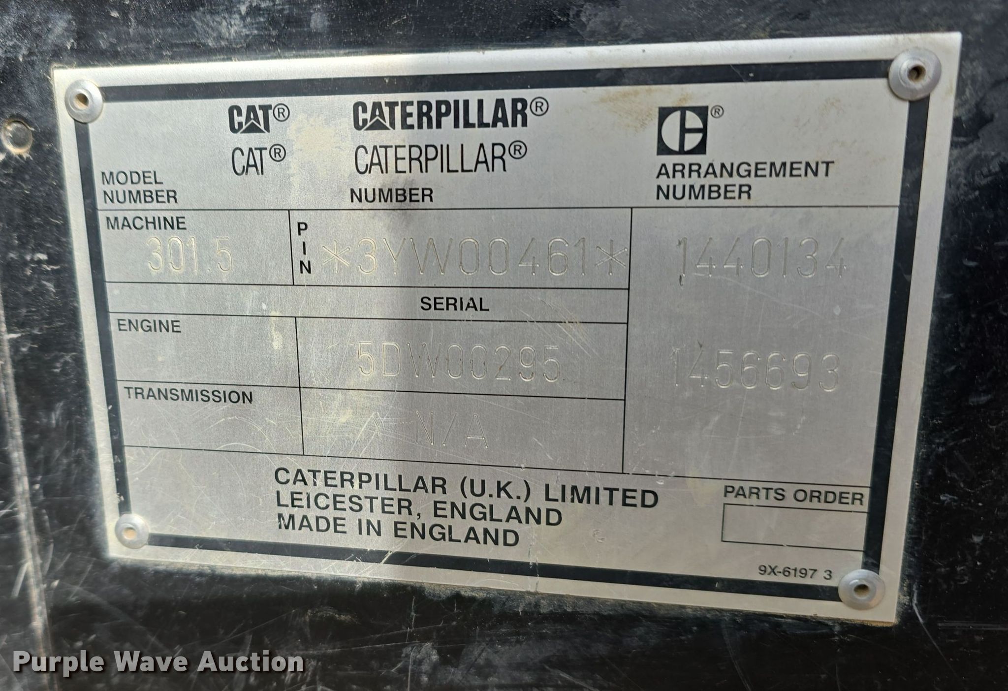 Purple Wave is selling a used Mini Excavator in Nebraska. This item is a 1999 Caterpillar 301.5 mini excavator with the following: Hours: 1,081 on meter, Serial: 3YW00461