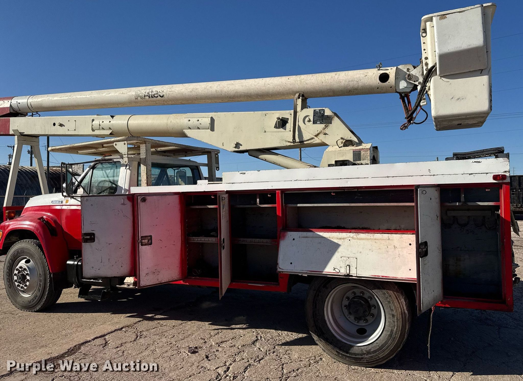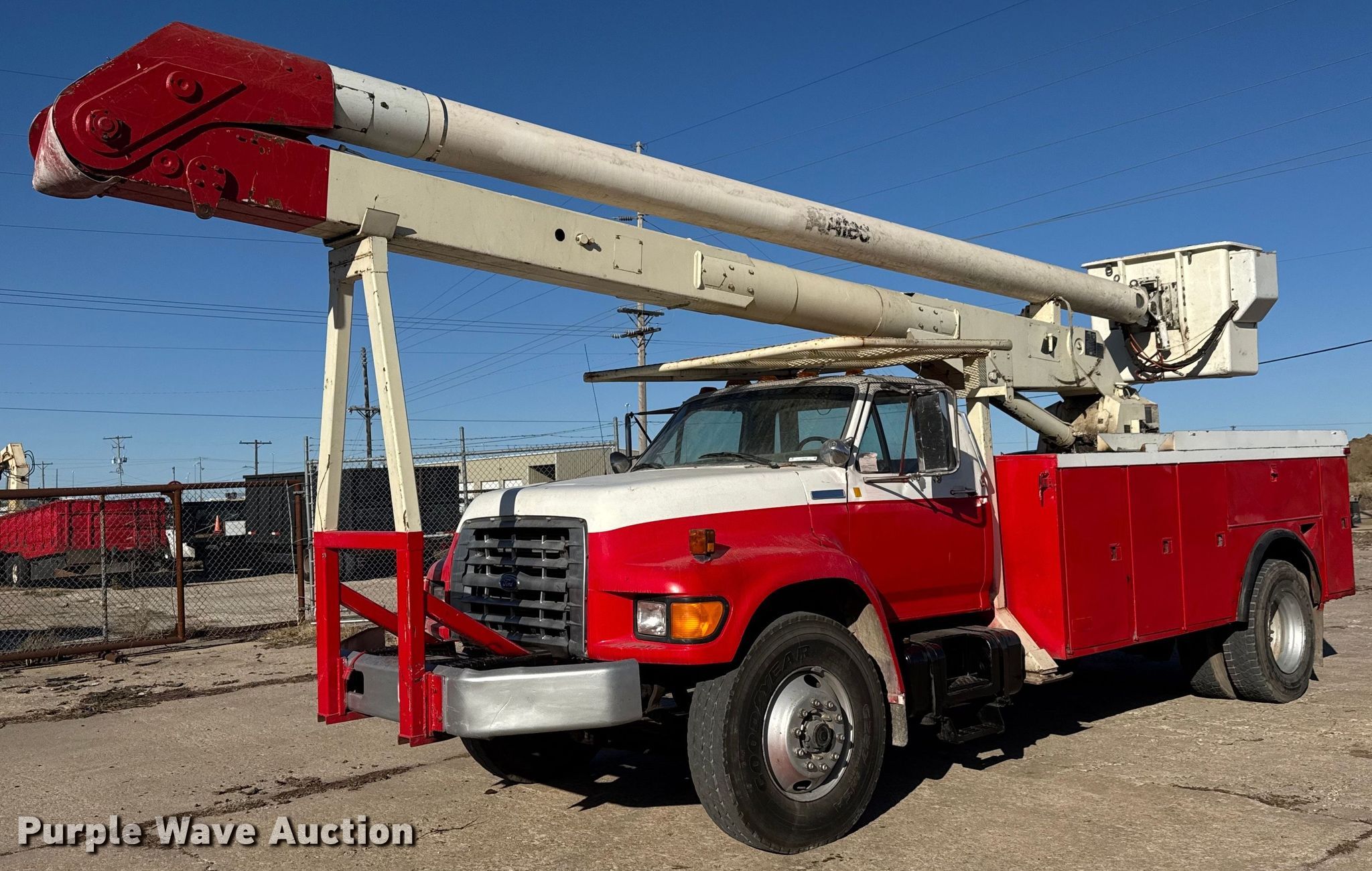 Purple Wave is selling a used Bucket Truck in Kansas. This item is a 1995 Ford F800 bucket truck with the following: Miles: 108,755 on odometer, Hours: 6,741 on meter, VIN: 1FDXF80C5SVA44051