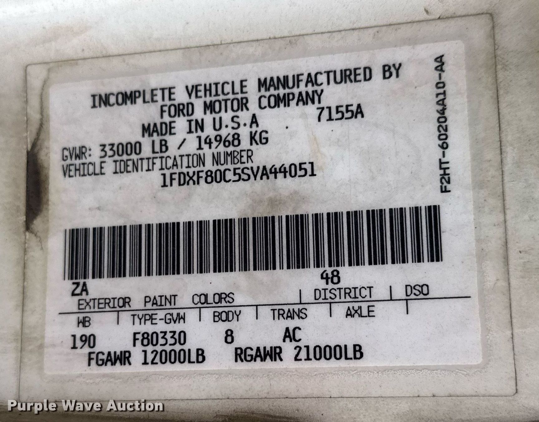 - VIN: 1FDXF80C5SVA44051