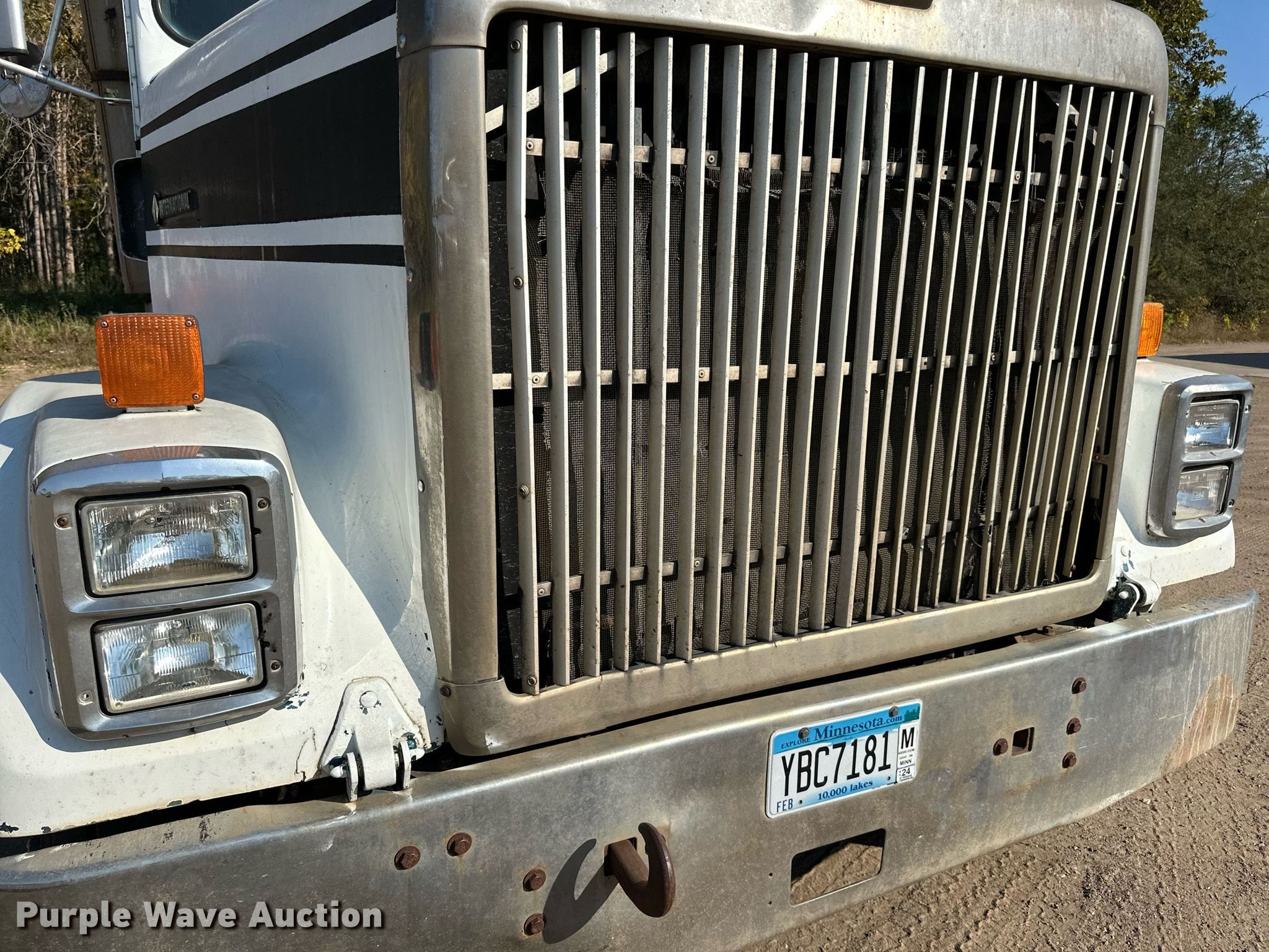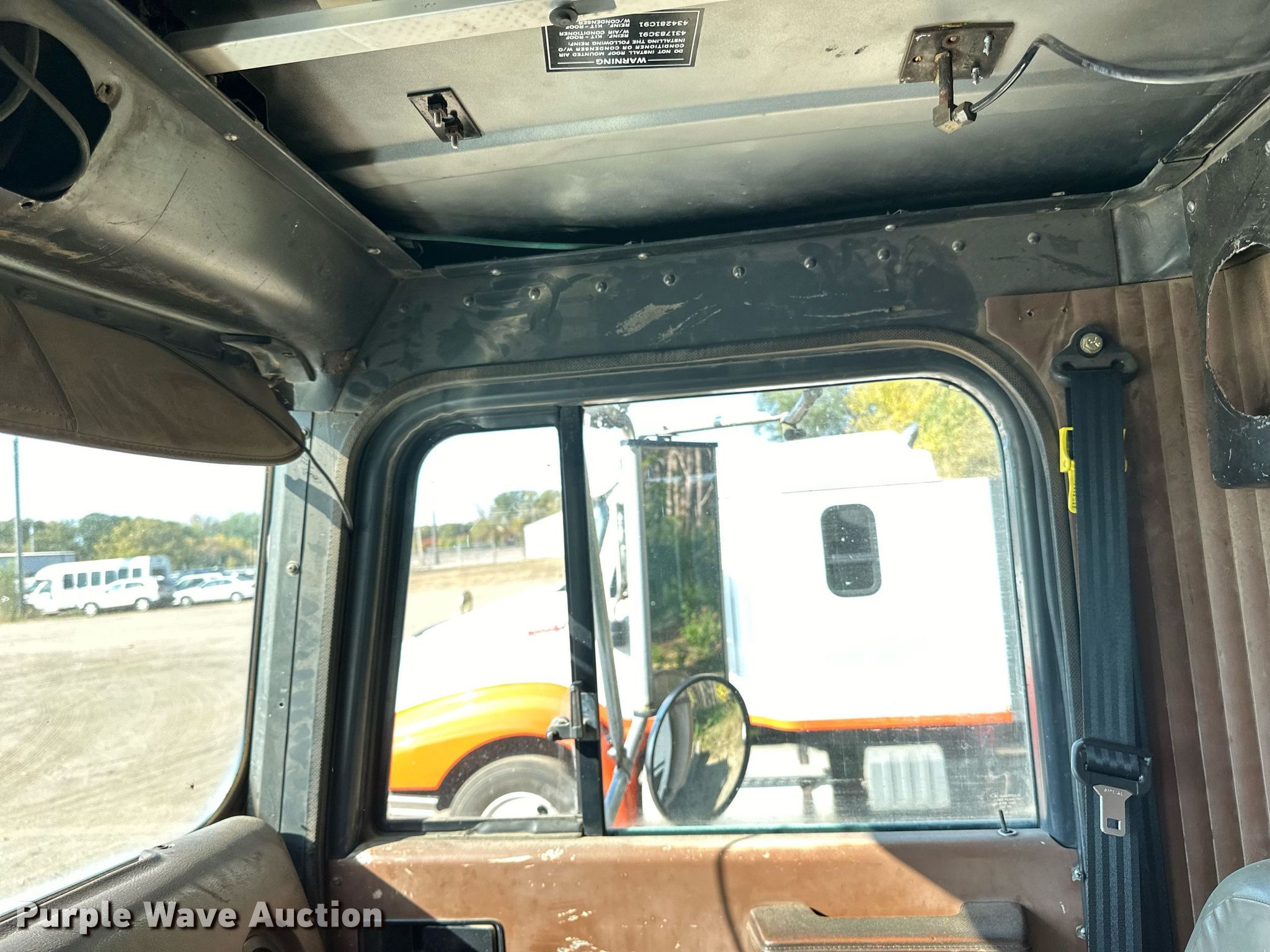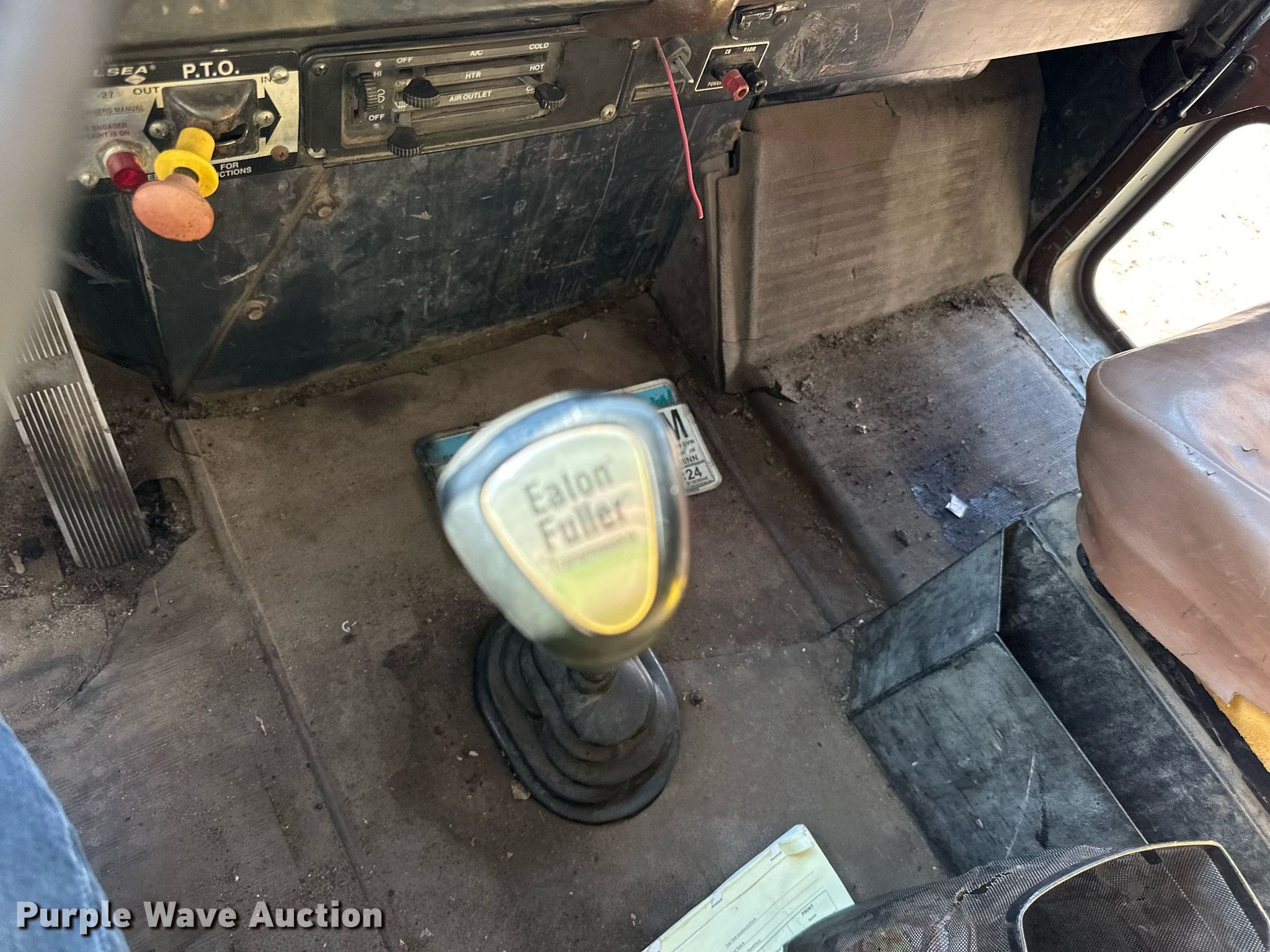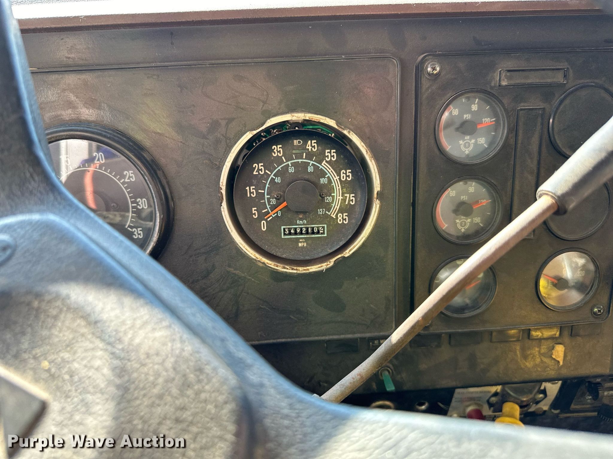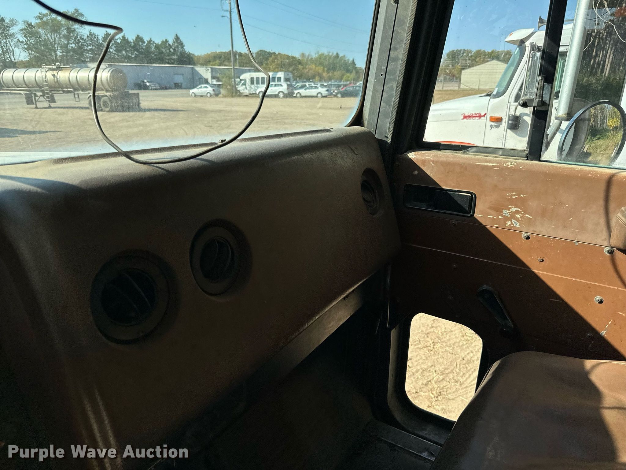 1989 International F9370 semi truck. Miles: 349,210 on odometer, Hours: 983 on meter, VIN: 2HSFBGUR6KC029639. Engine Cummins, Cylinders: 6, Fuel type: Diesel. Transmission Eaton fuller, Manual. Chassis Axles: Tandem, Differential lock: Inter-axle, Brakes: Air, PTO, Truck chassis: 12', GVWR: 48,000 lbs FAWR: 12,000 lbs, RAWR: 18,000 lbs. Interior Heat. Features Fuel tank: Single. Tires Size: 11R22.5. Minnesota title. Knife River. Little Falls, MN 56345