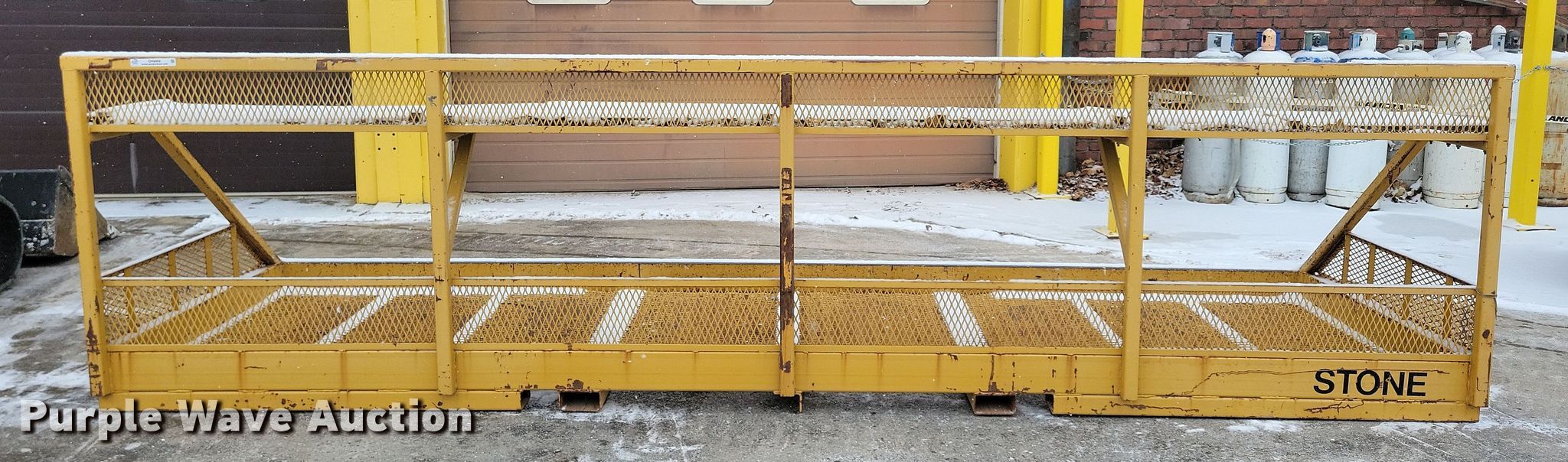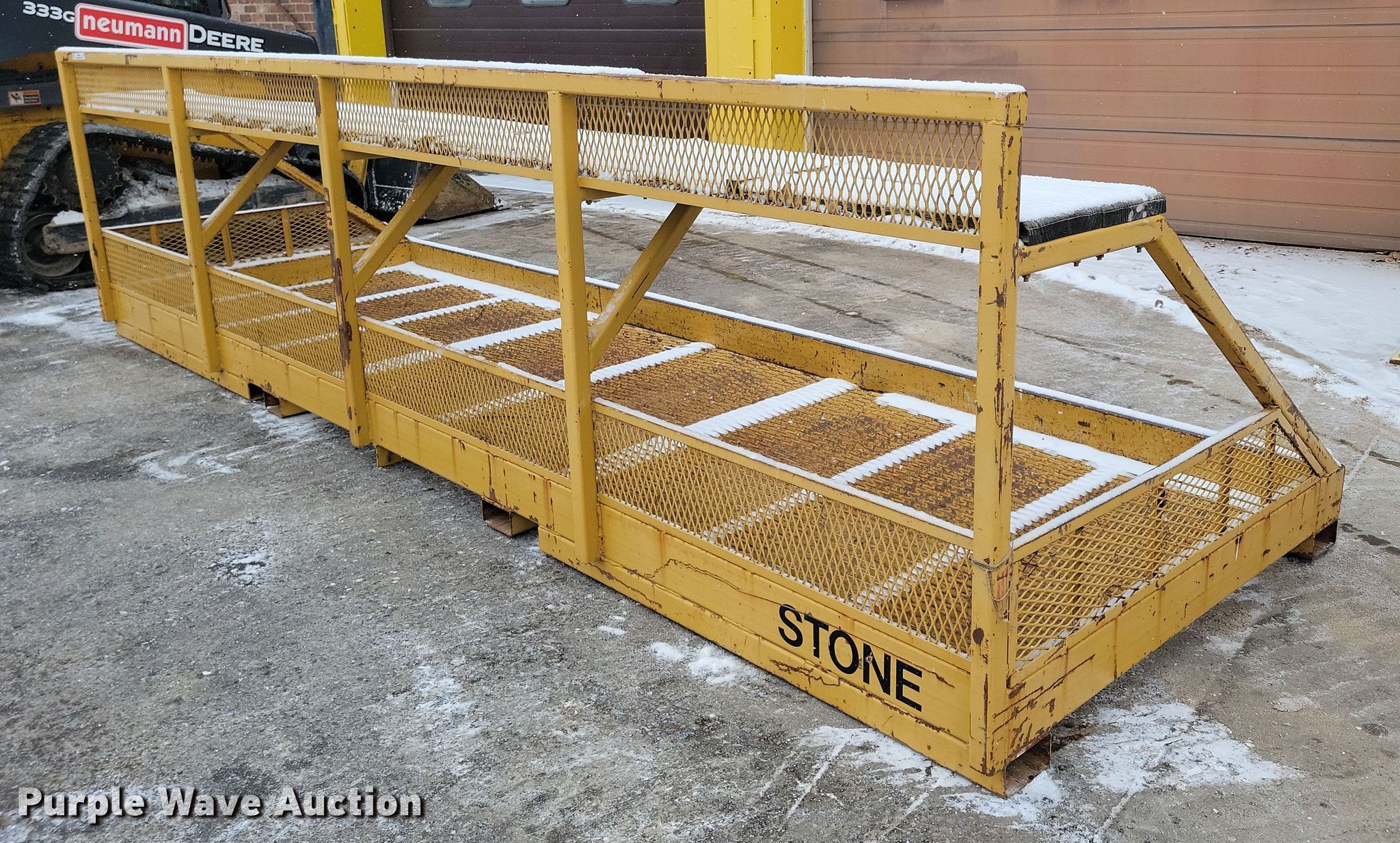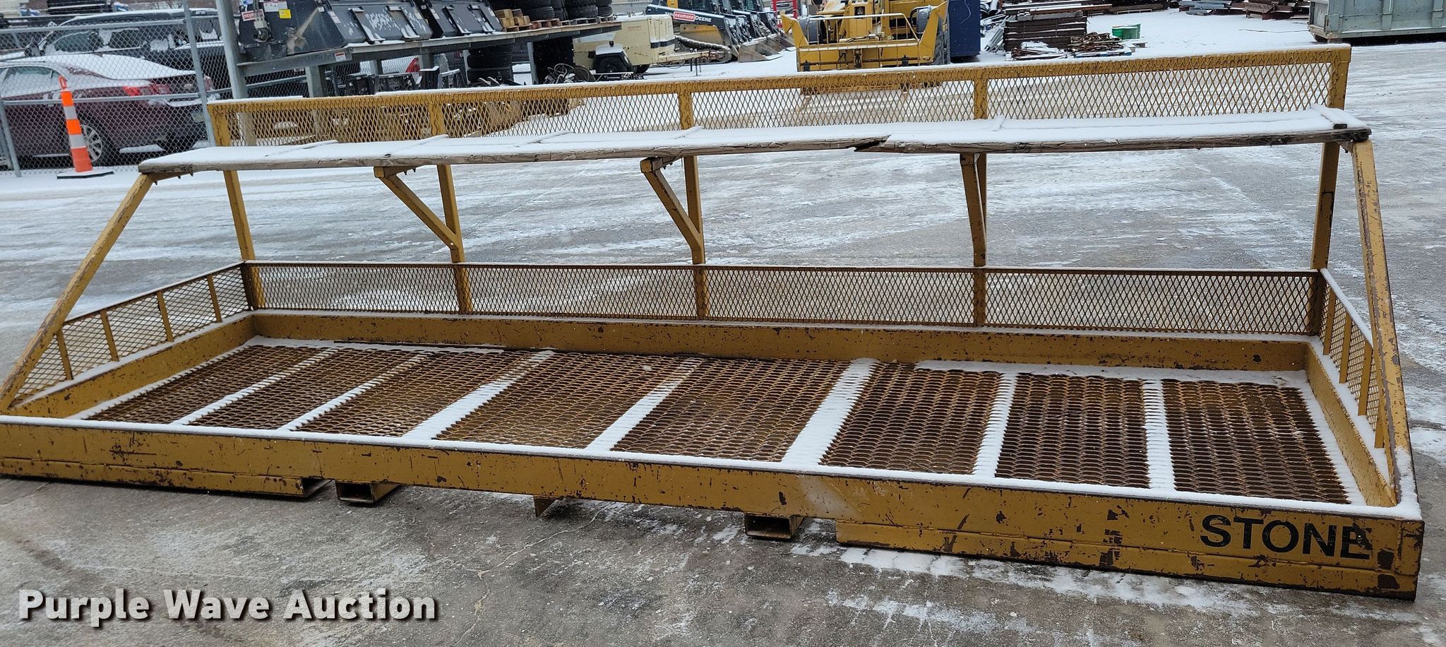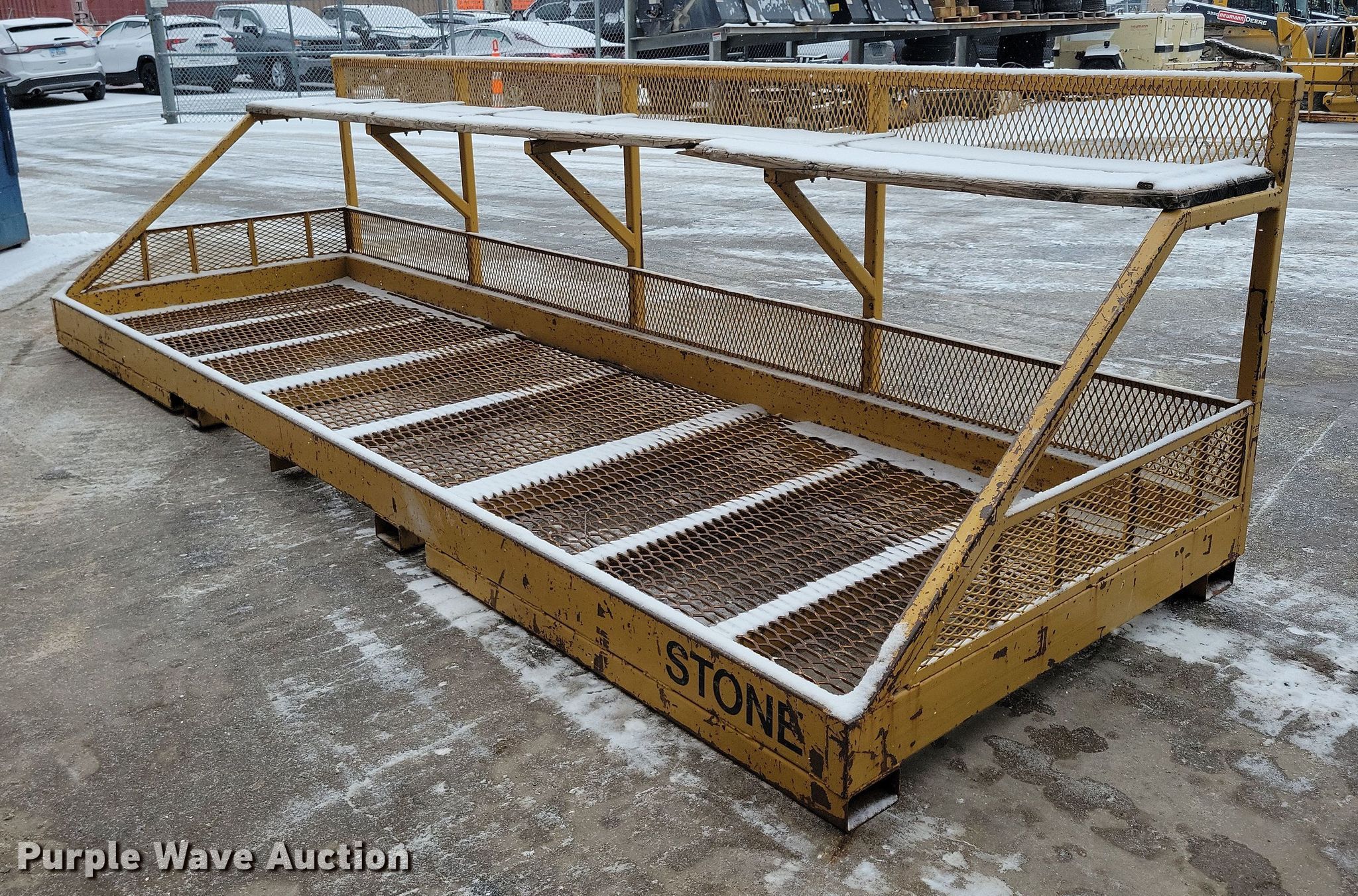 Purple Wave is selling a used Rough Terr. Forklift Attach. in Iowa. This item is a Stone telehandler work platform with the following: 16 '5" L x 62" W
