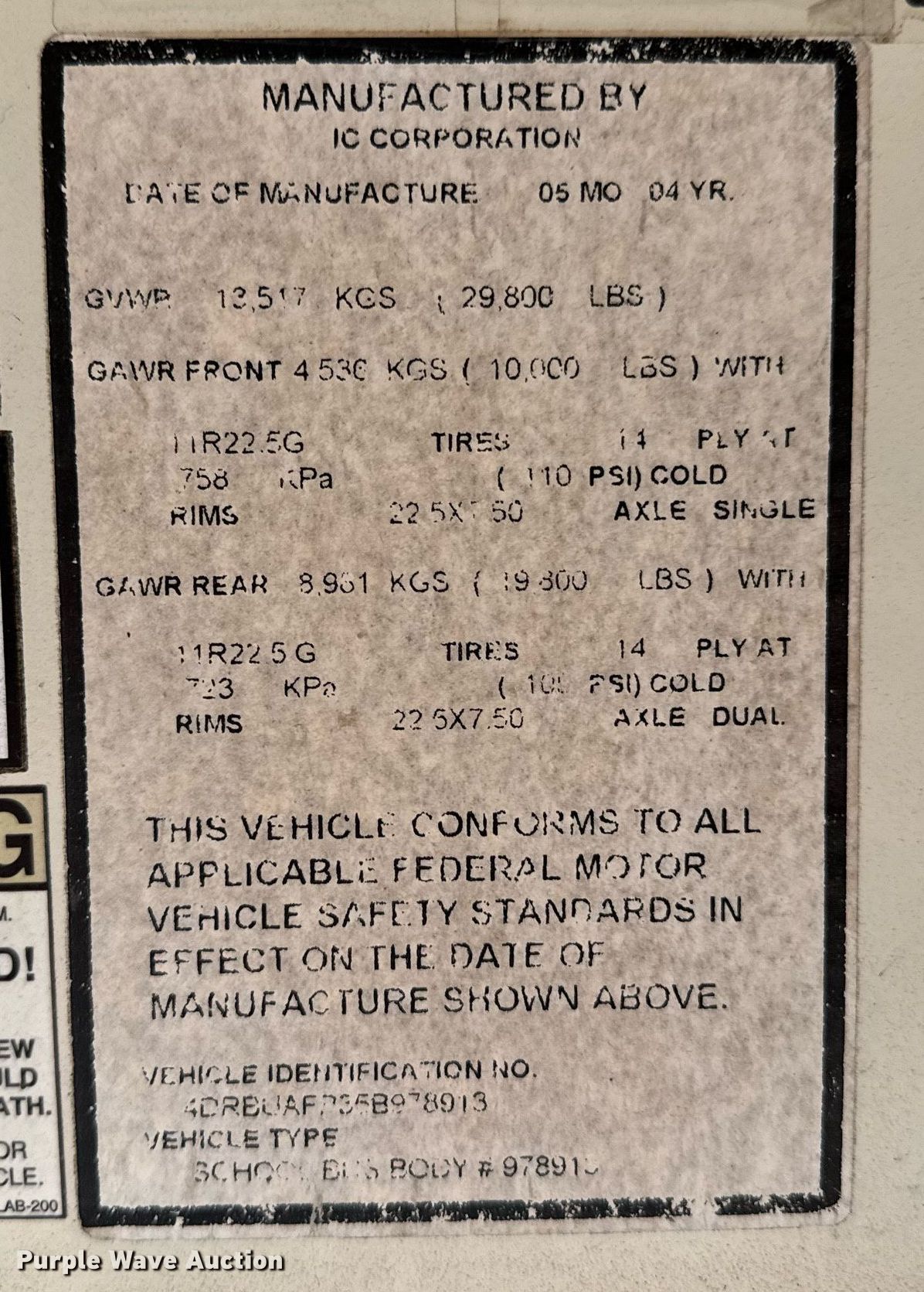 Purple Wave is selling a used Bus in Oklahoma. This item is a 2005 IC CE200 school bus with the following: Miles: 162,744 on odometer, VIN: 4DRBUAFP35B978913