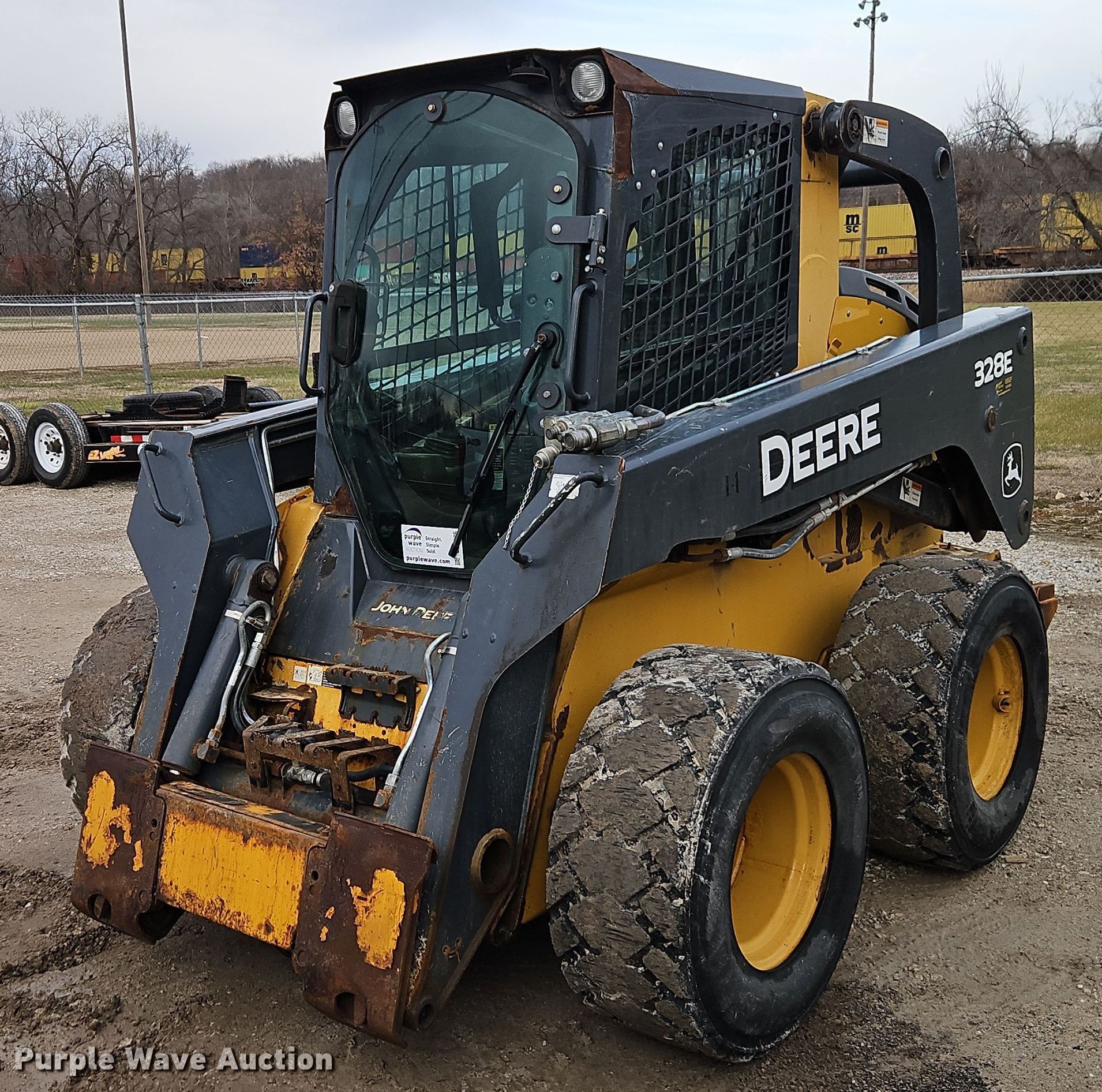 Purple Wave is selling a used Skid Steer Loader in Kansas. This item is a 2014 John Deere 328E skid steer loader with the following: Hours: 1,367 on meter, Serial: 1T0328EMAEE255635