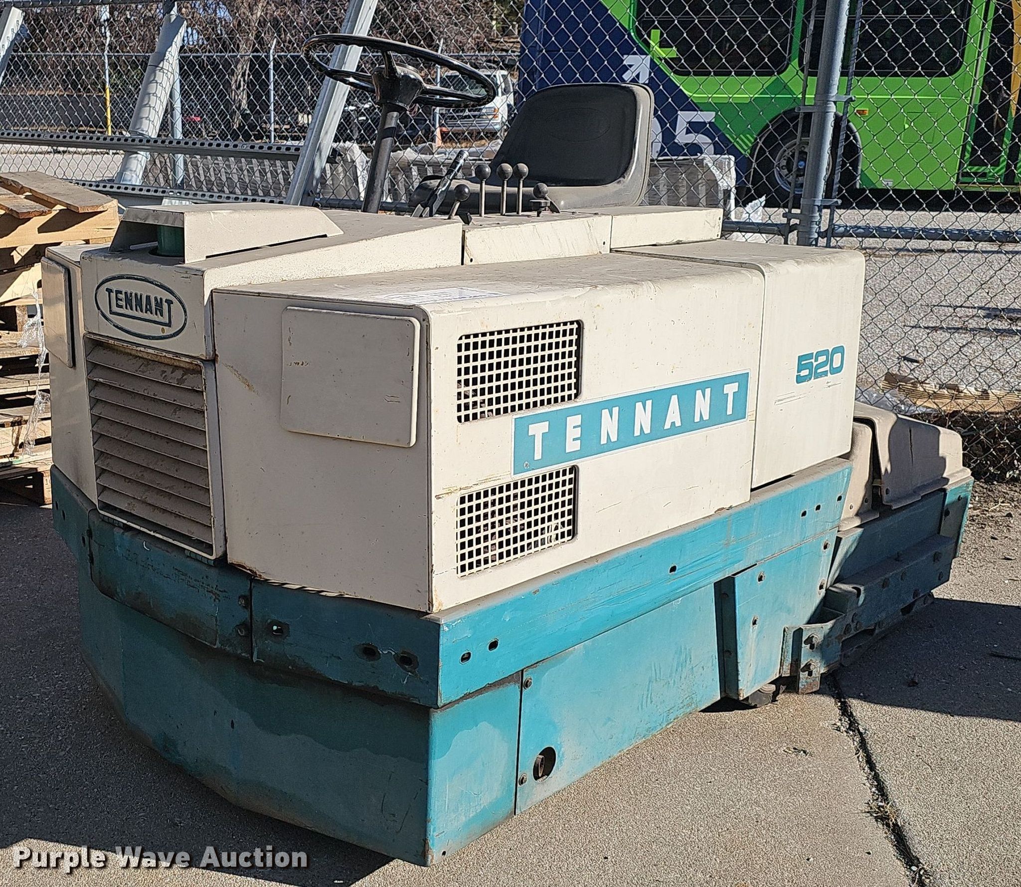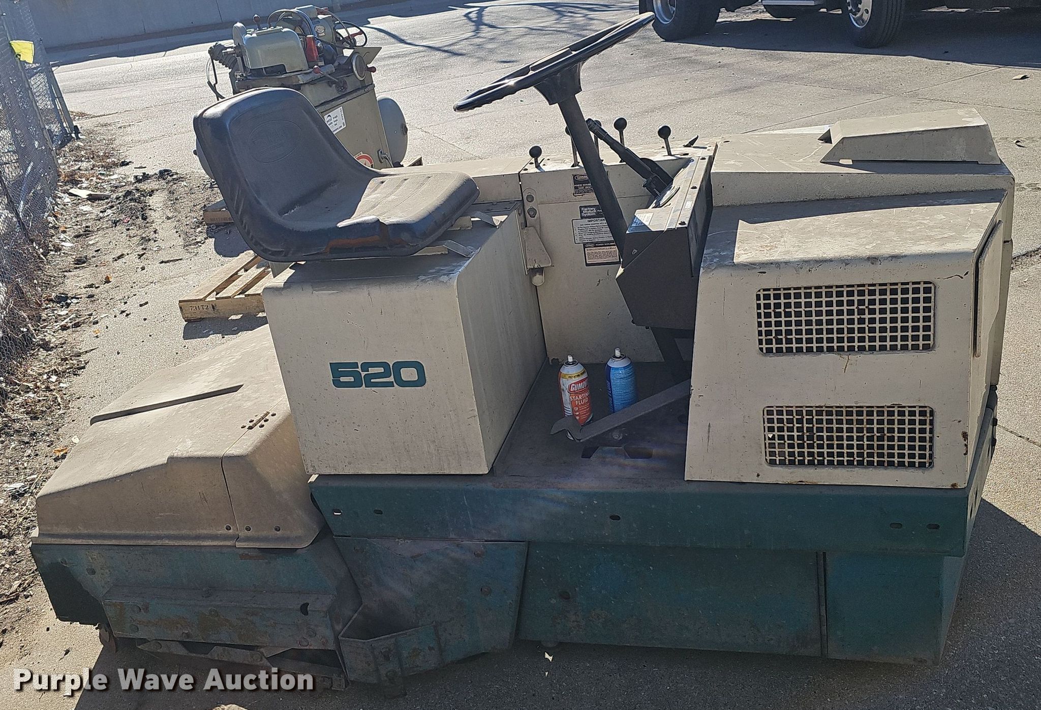 Tennant 520 floor scrubber. Serial: 1749. Engine Onan NHC-MS/3913D, Serial: H82362069A, Cylinders: 2, Fuel type: Gas. Transmission Hydrostatic. Features Broom Width: 44", Sweeper bed Sweeper bed type: Vacuum. Tires Solid. Notes Non-operational unit. City of Lincoln - Star Tran. Lincoln, NE 68508