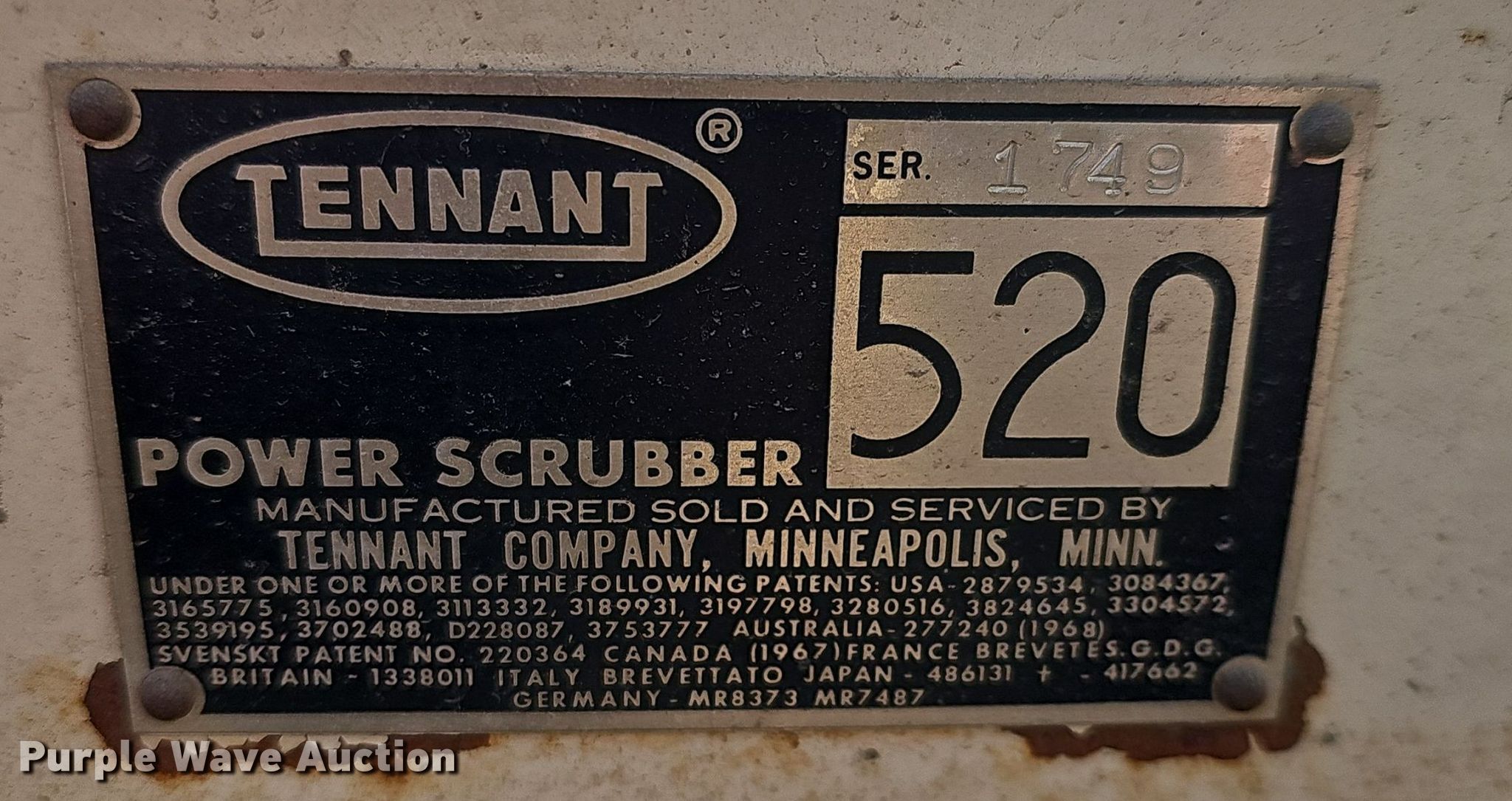 Purple Wave is selling a used Other Industrial or Business in Nebraska. This item is a Tennant 520 floor scrubber with the following: Serial: 1749