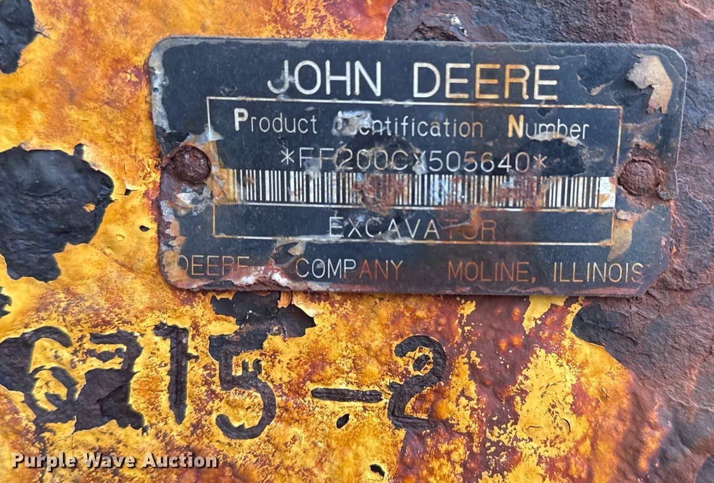Purple Wave is selling a used Hydraulic Excavator in Oklahoma. This item is a 2005 John Deere 200C LC excavator with the following: Hours: Unknown, Serial: FF200CX505640, Unit #: 2004624