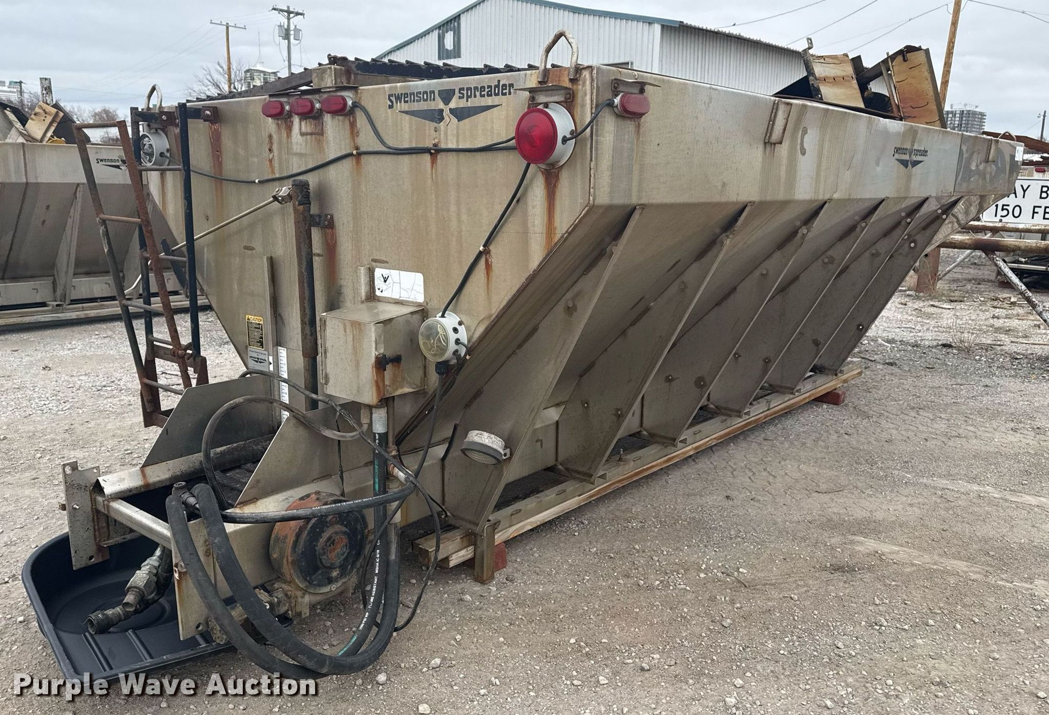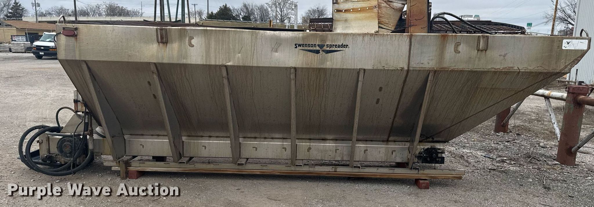 Purple Wave is selling a used Truck Part and Attach. in Oklahoma. This item is a Swenson spreader with the following: Unit #: 2003698, 15' L x 83" W, Conveyor width: 20"