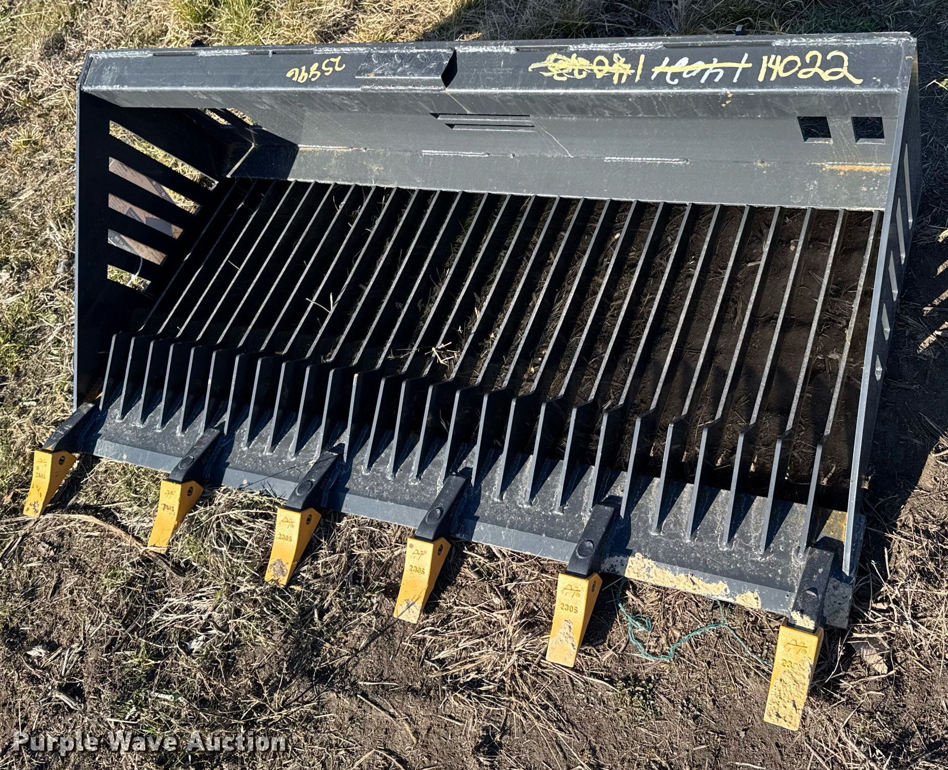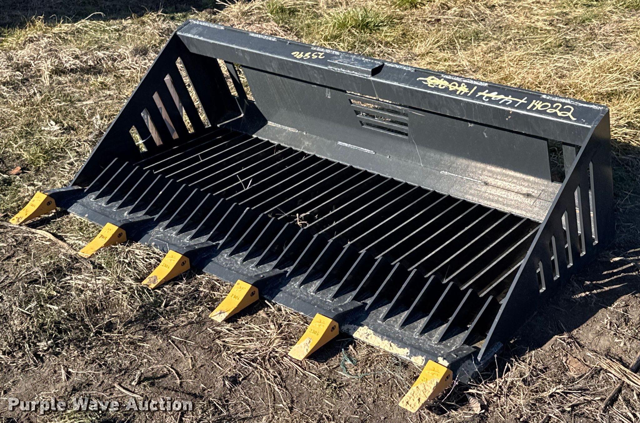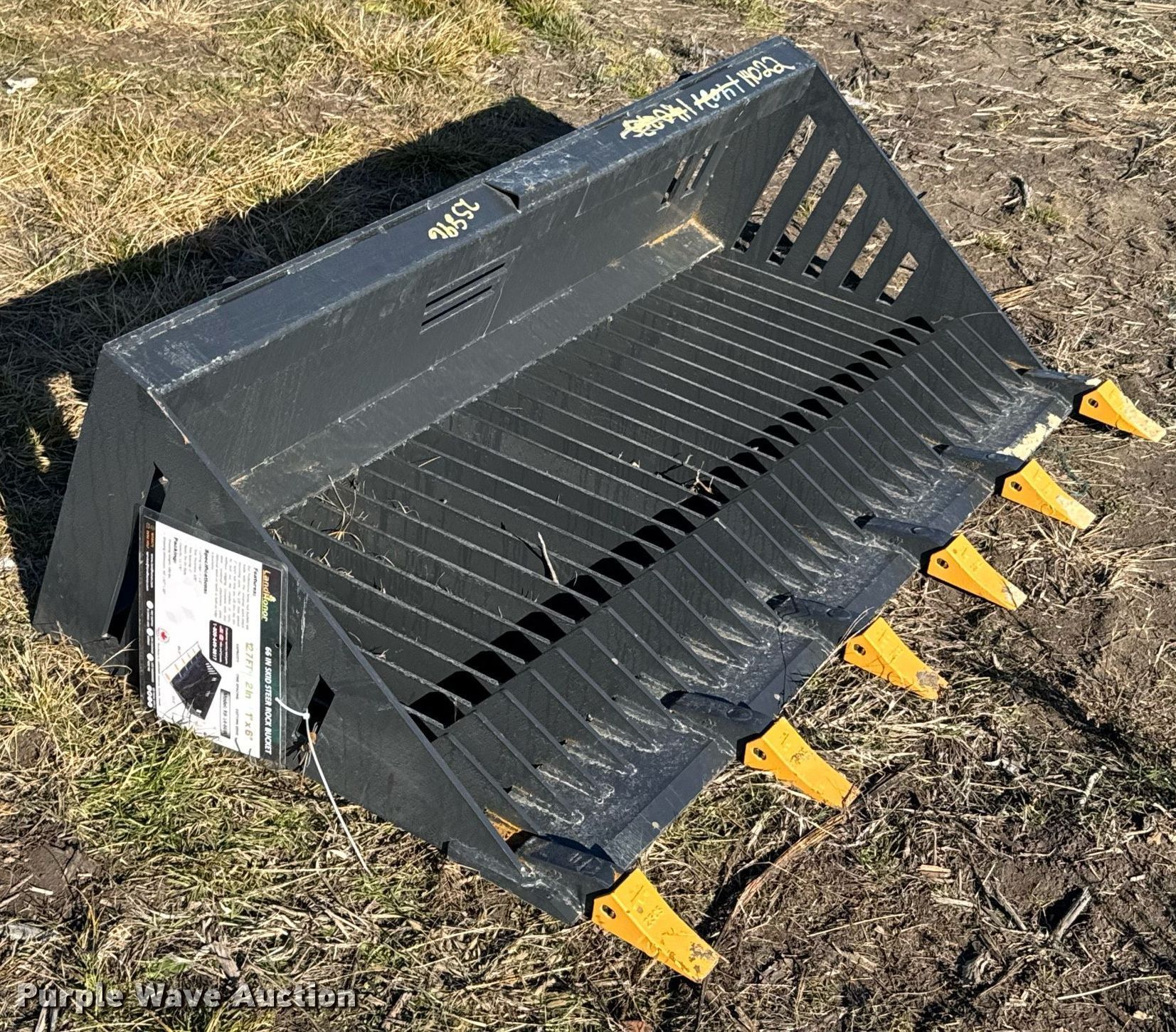 Purple Wave is selling a used Skid Steer Attach. in Kansas. This item is a 2023 LandHonor RB-14-66W skid steer rock bucket with the following: Serial: HL-00235, Width: 66"