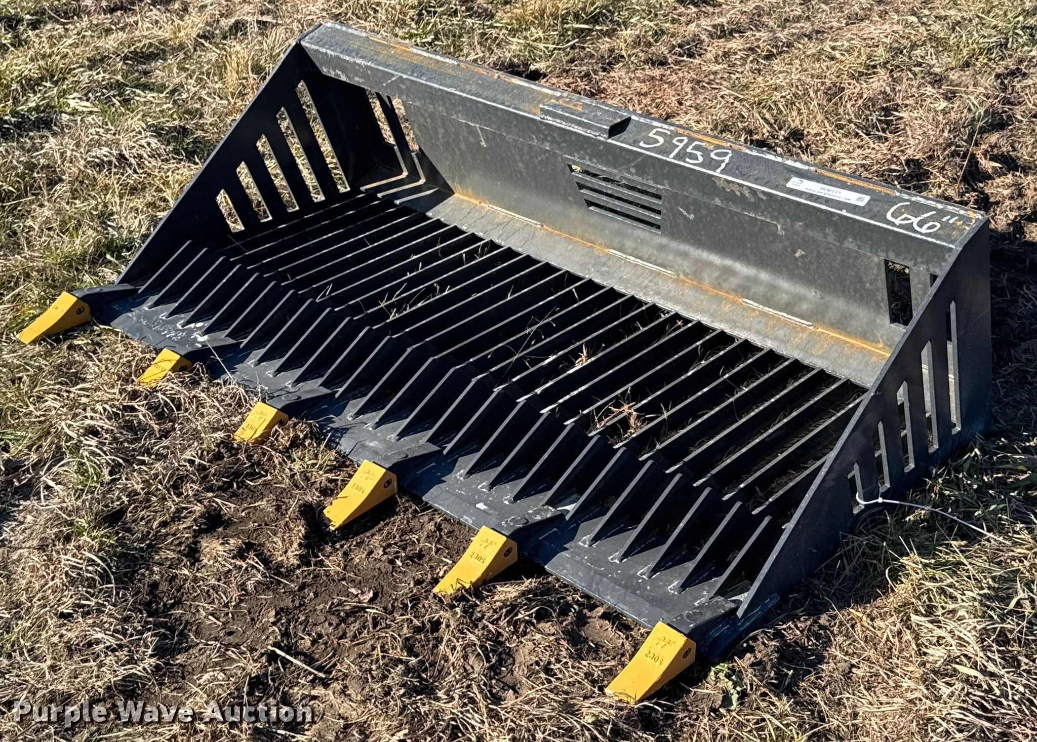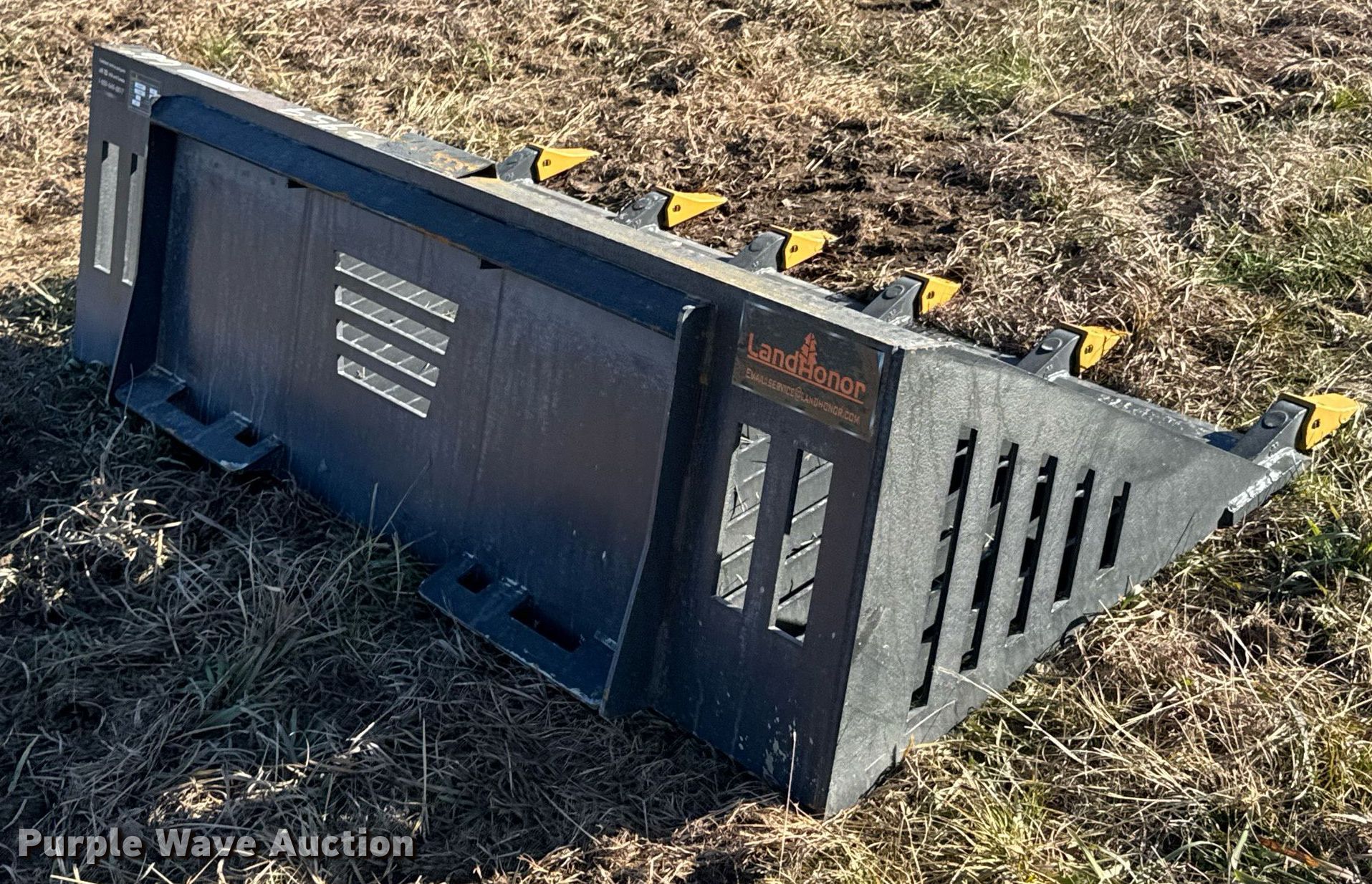 Purple Wave is selling a used Skid Steer Attach. in Kansas. This item is a 2023 LandHonor RB-14-66W skid steer rock bucket with the following: Serial: HL-00285, Width: 66"