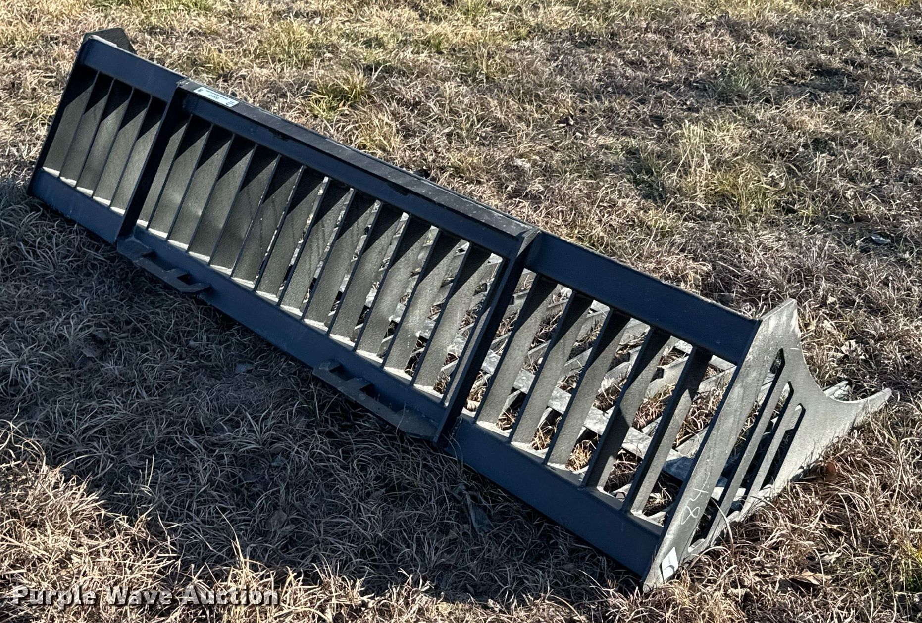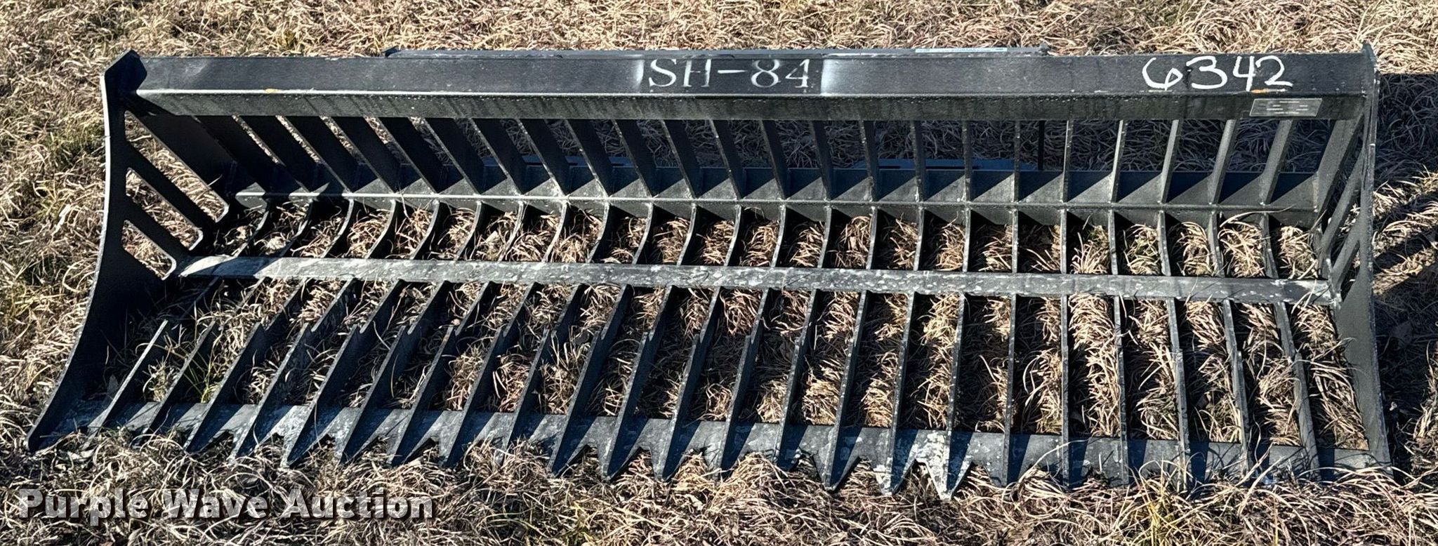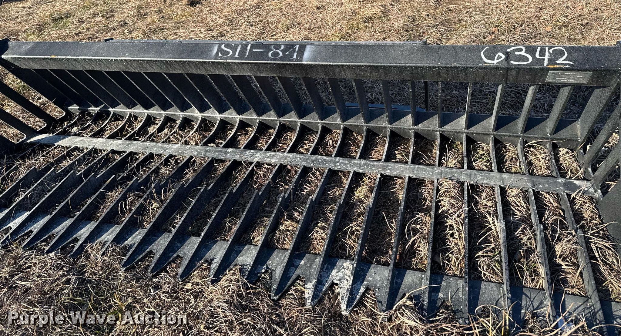 Purple Wave is selling a used Skid Steer Attach. in Kansas. This item is a 84" W skid steer rock bucket with the following: Unused