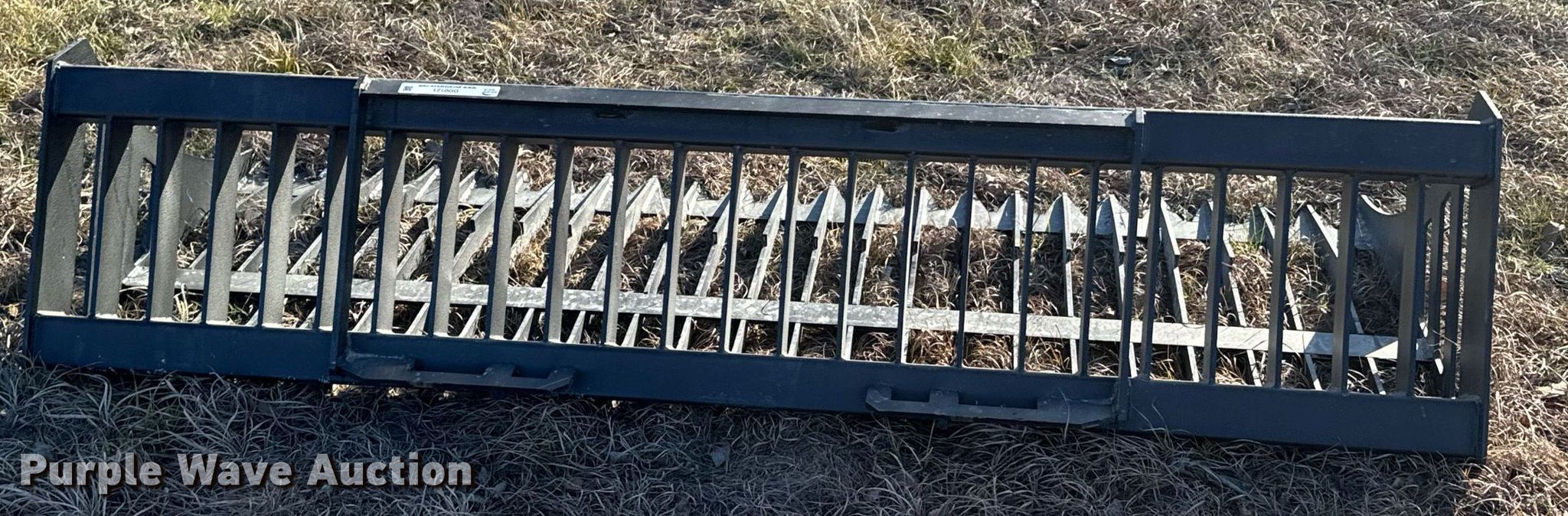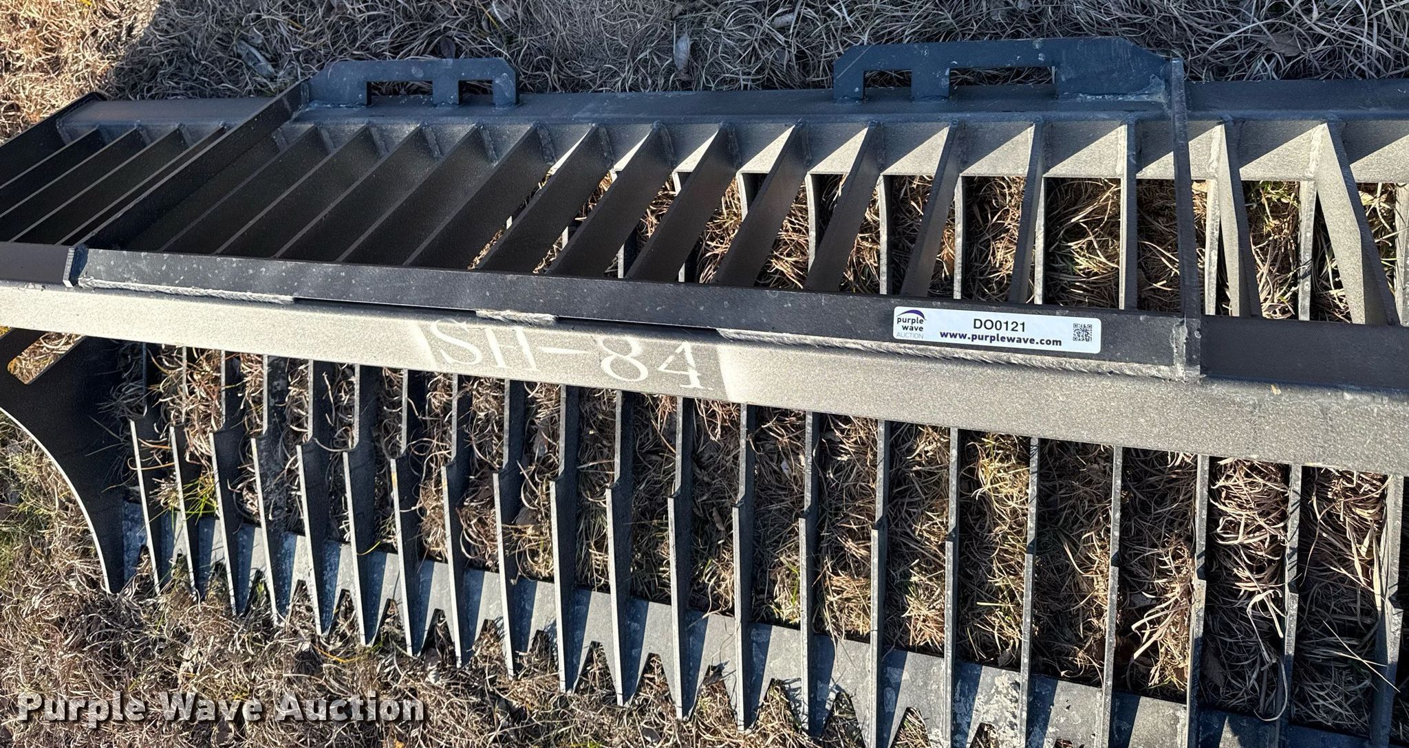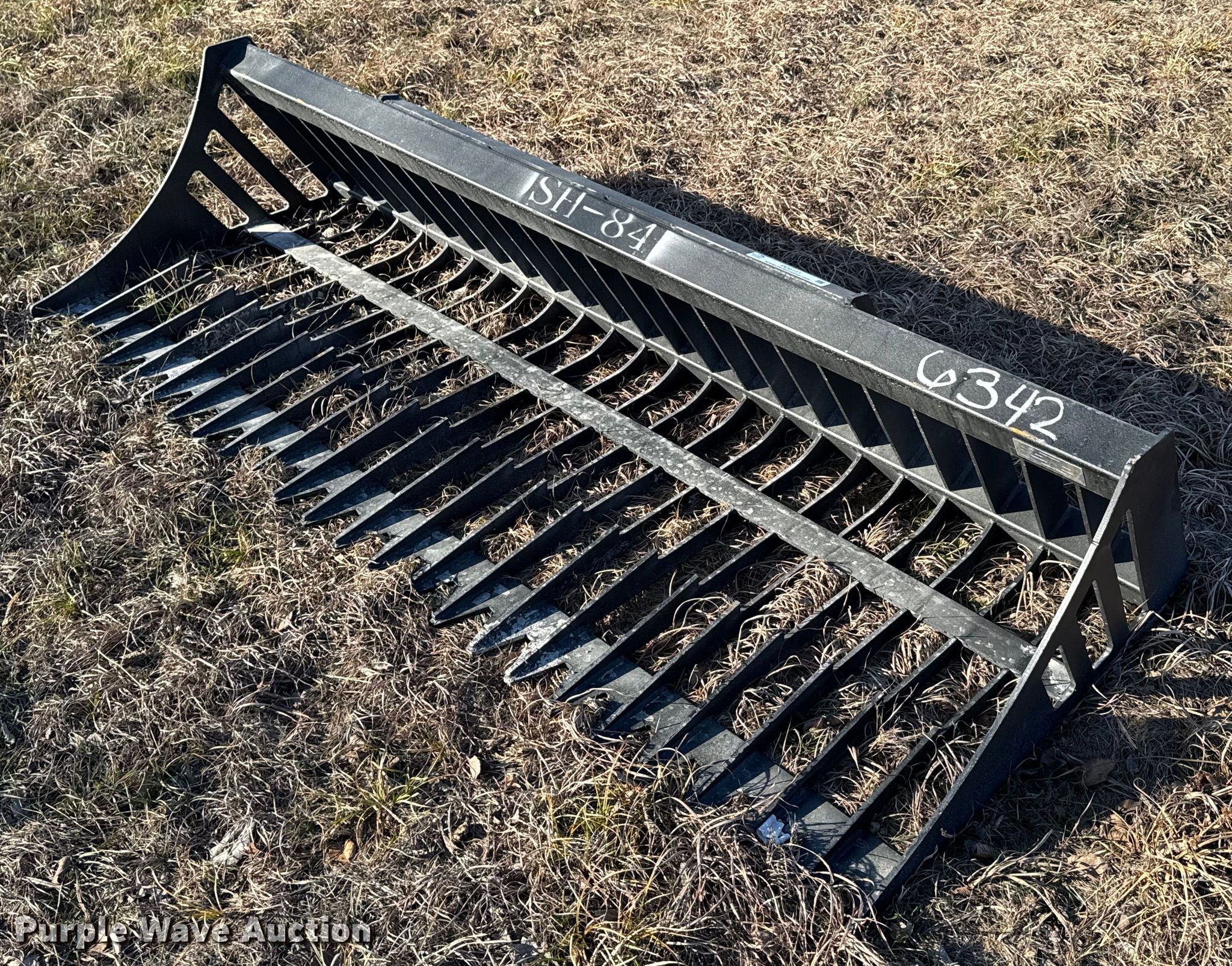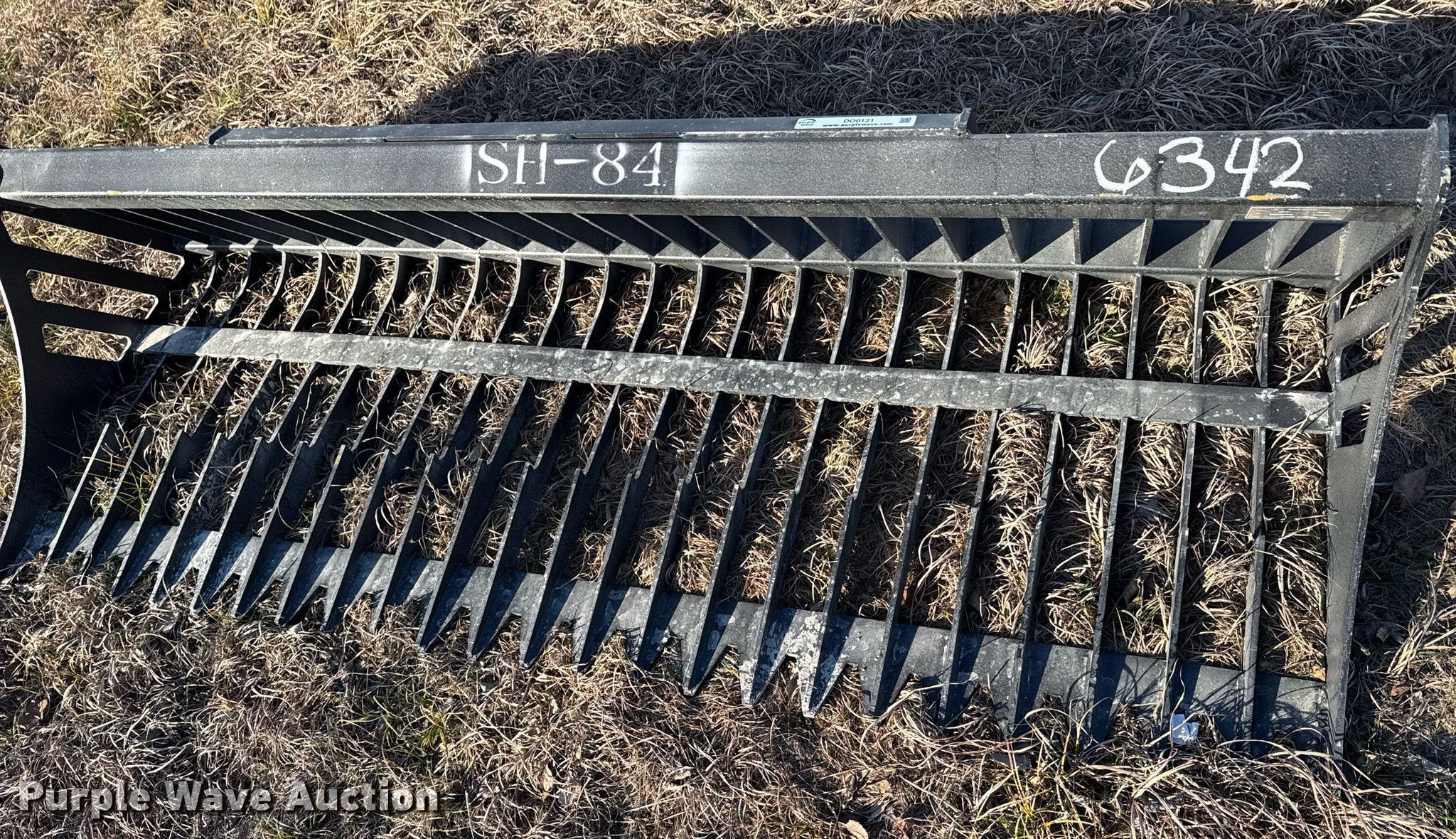 Purple Wave is selling a used Skid Steer Attach. in Kansas. This item is a 84" W skid steer rock bucket with the following: Unused