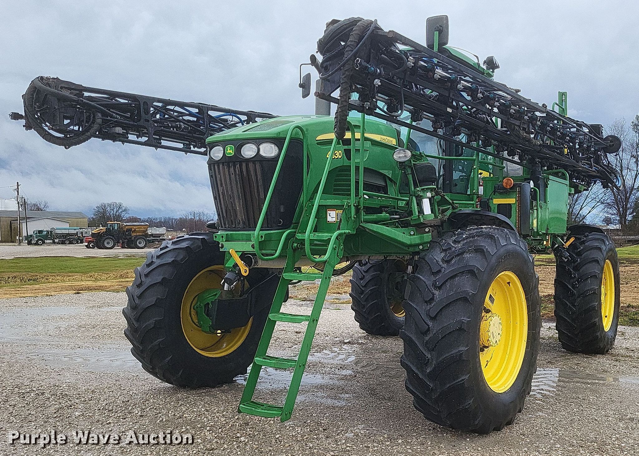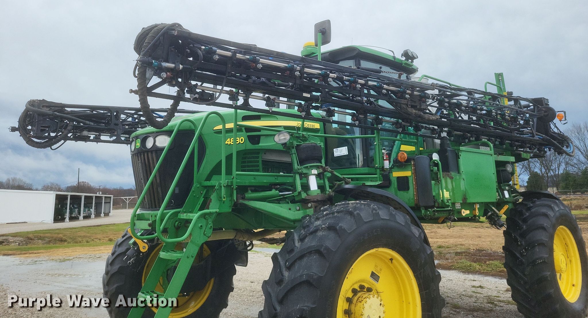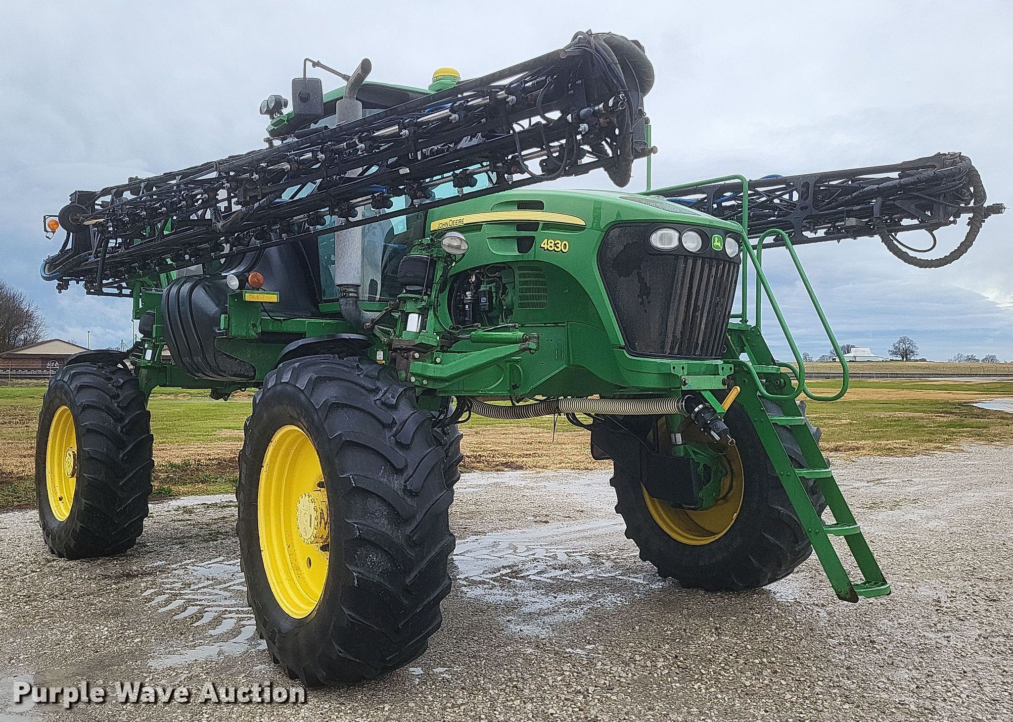 Purple Wave is selling a used Applicator Self Propelled in Indiana. This item is a 2012 John Deere 4830 sprayer with the following: Engine hours: 4,733 on meter, Spray hours: 2,362 on meter, VIN: 1N04830XVC0023171
