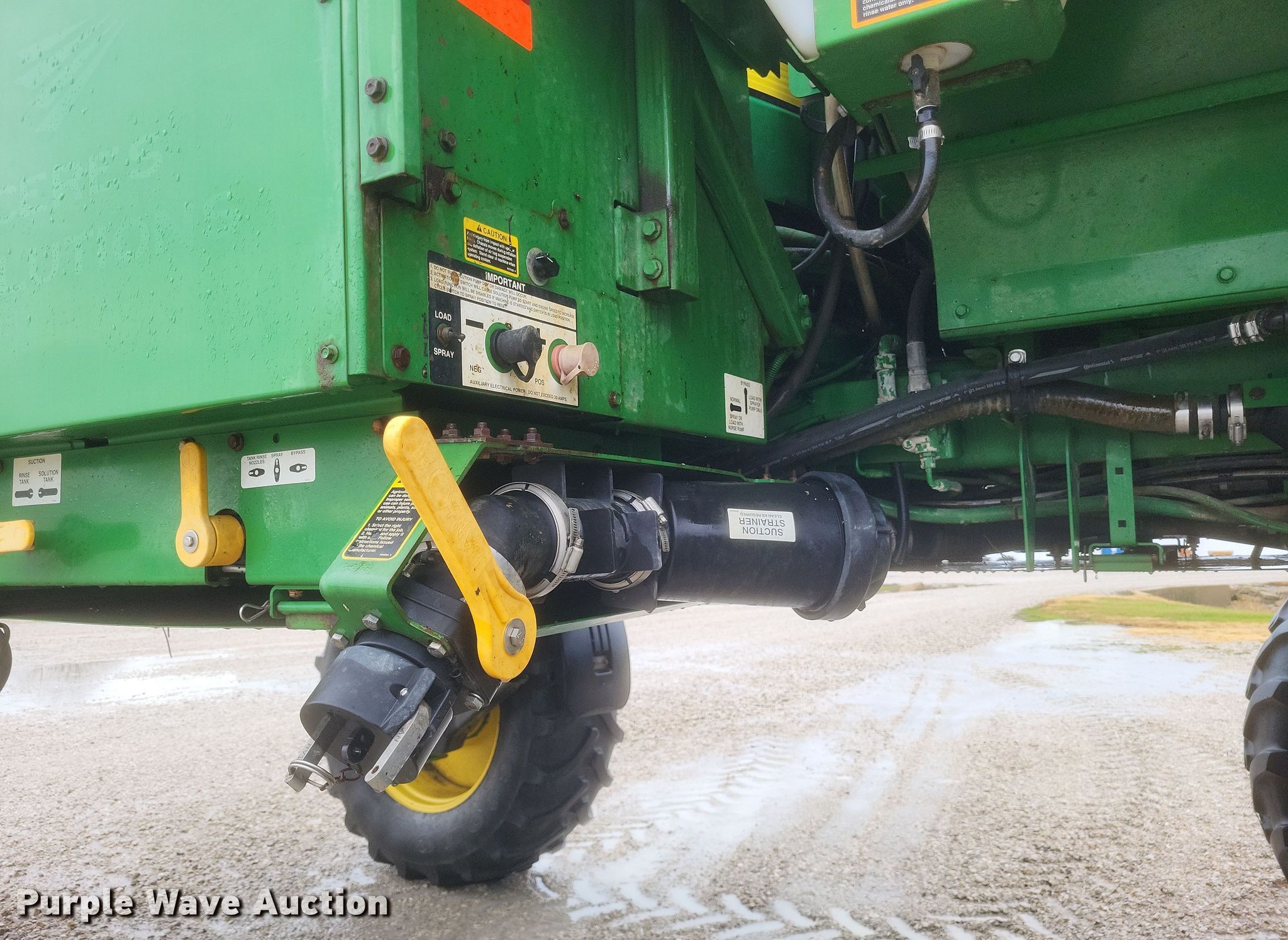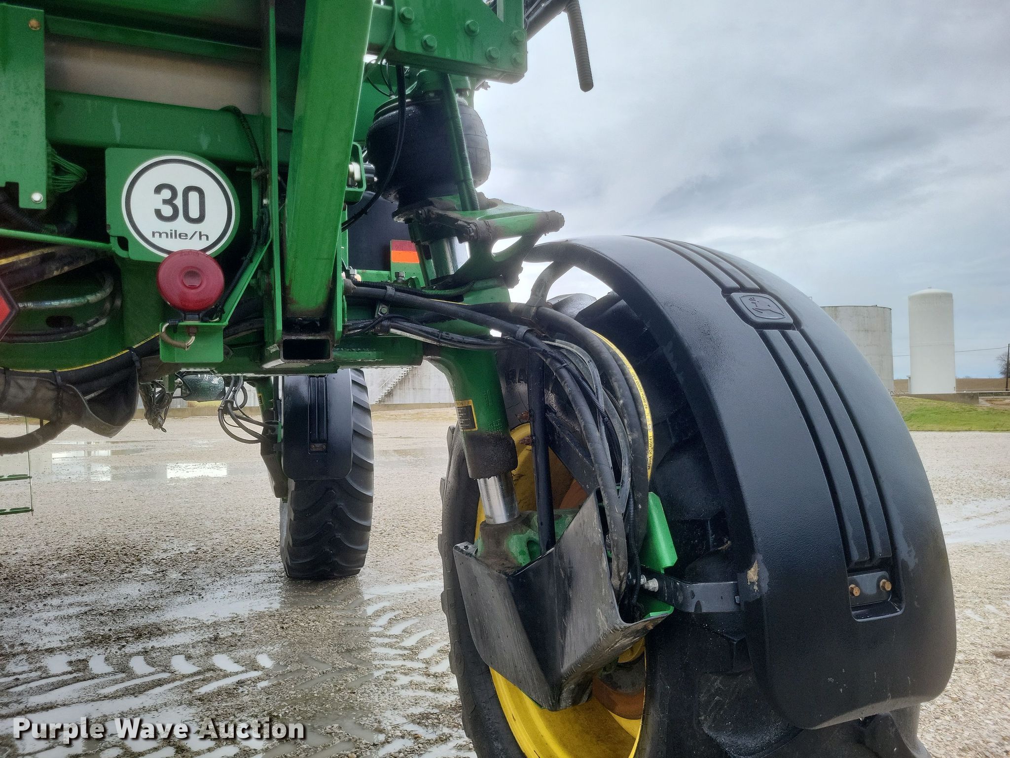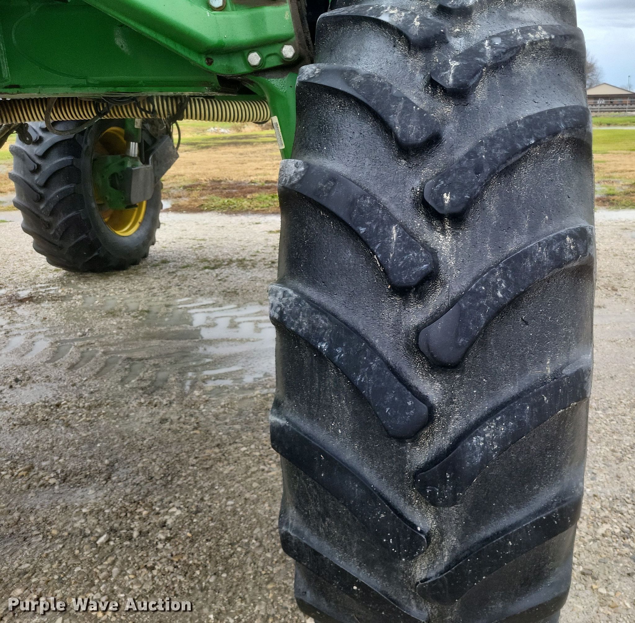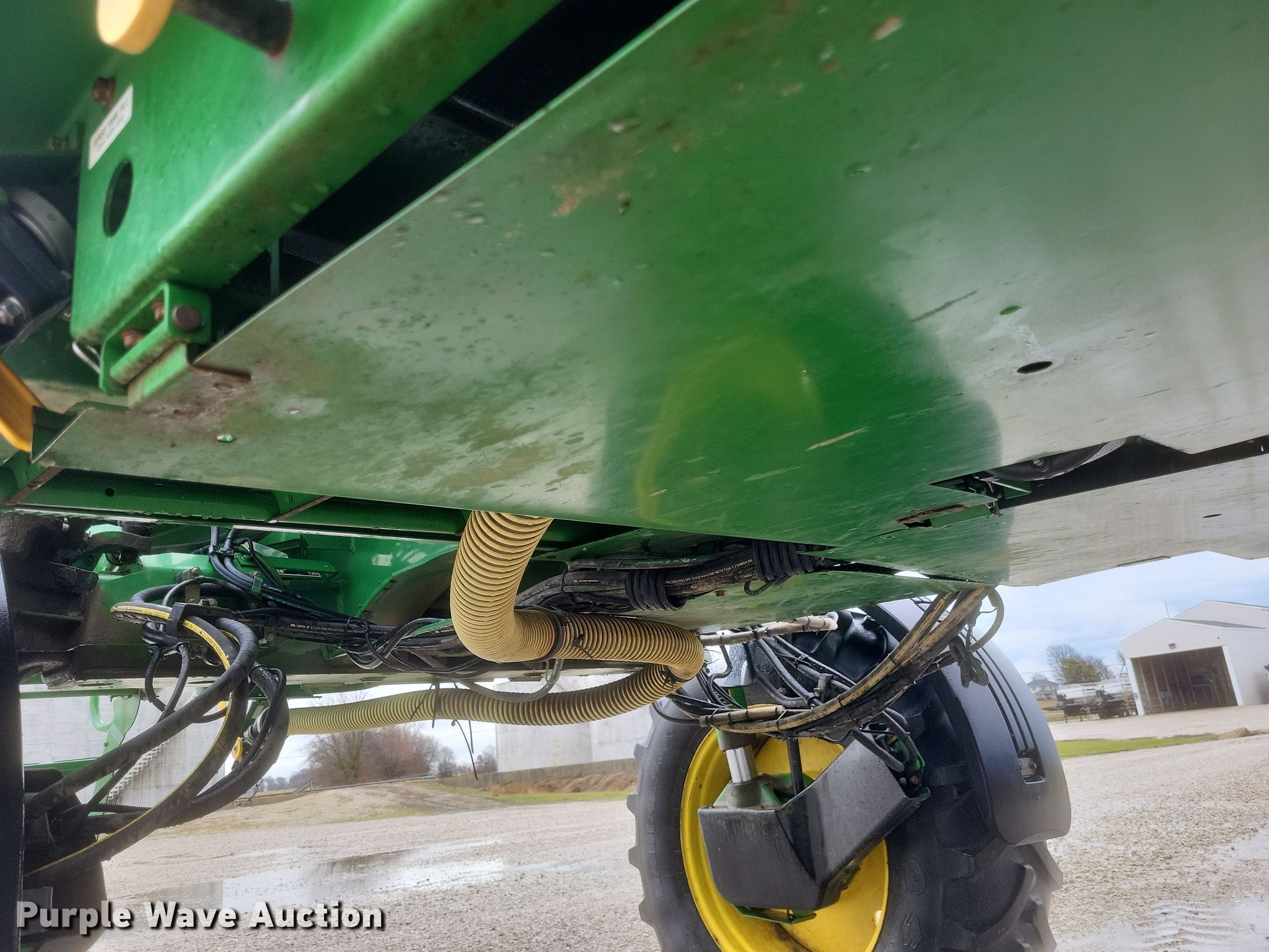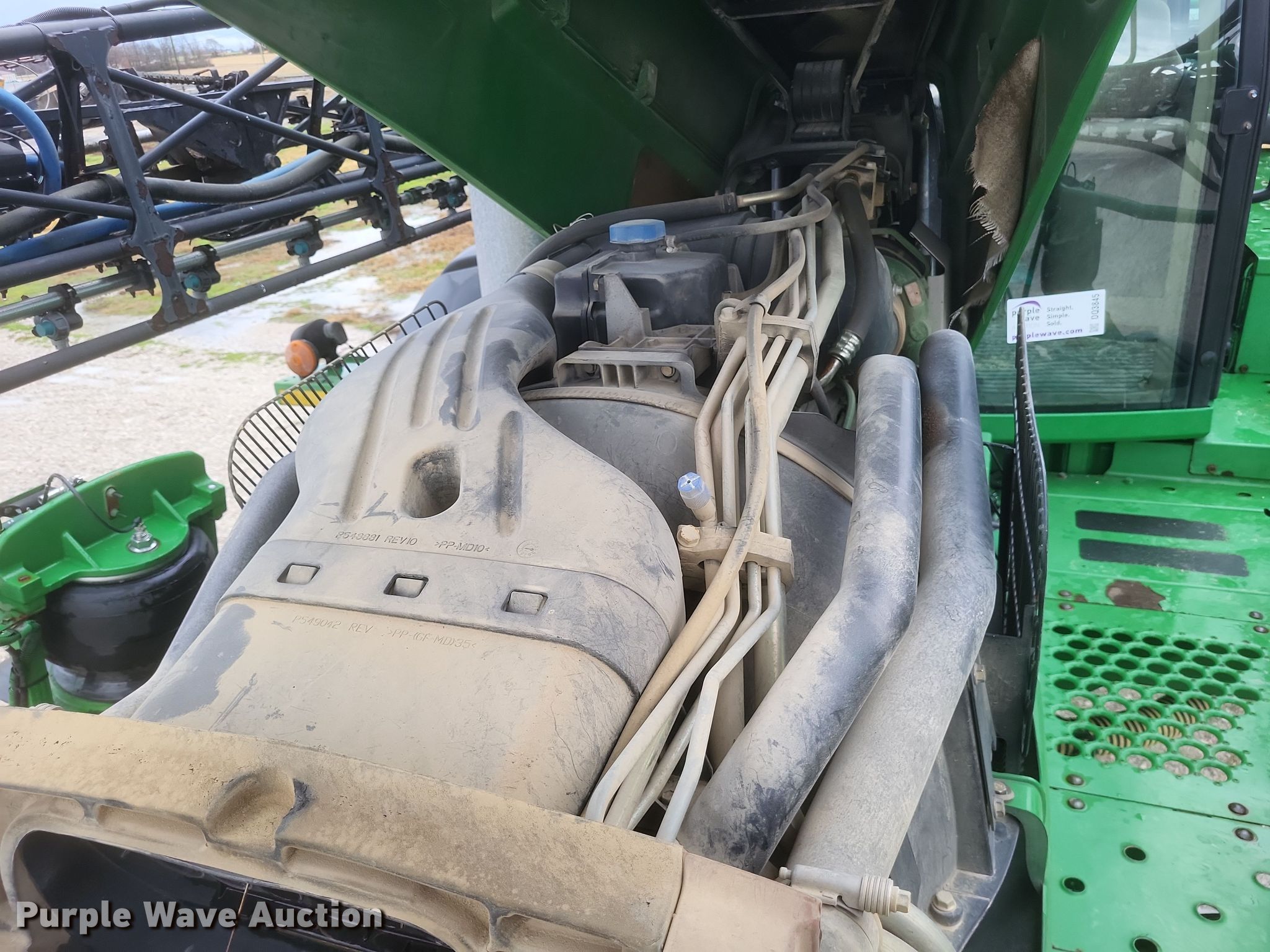 2012 John Deere 4830 sprayer. Engine hours: 4,733 on meter, Spray hours: 2,362 on meter, VIN: 1N04830XVC0023171. Engine John Deere 2240, Displacement: 414 C.I.D., Cylinders: 6, Fuel type: Diesel. Transmission Hydrostatic. Operators station AC, Heat. Features Hydraulic ladder, Belly shield, Solution tank Type: Stainless Steel, Front fill, Capacity: 1000 gallons, Rinse tank Capacity: 120 gallons, Boom Sections: 5, Boom breakaway, Hydraulic boom fold, Hydraulic height control, Nozzle Spacing: 15", Nozzle bodies: 5-way, Fence row nozzles, Electronics GPS monitor John Deere GreenStar 2630, GPS receiver John Deere Starfire 3000.. Tires Size: 600/65R38, Flotation tires. Notes Additional row crop wheels and tires. Keystone Cooperative. Vincennes, IN 47591