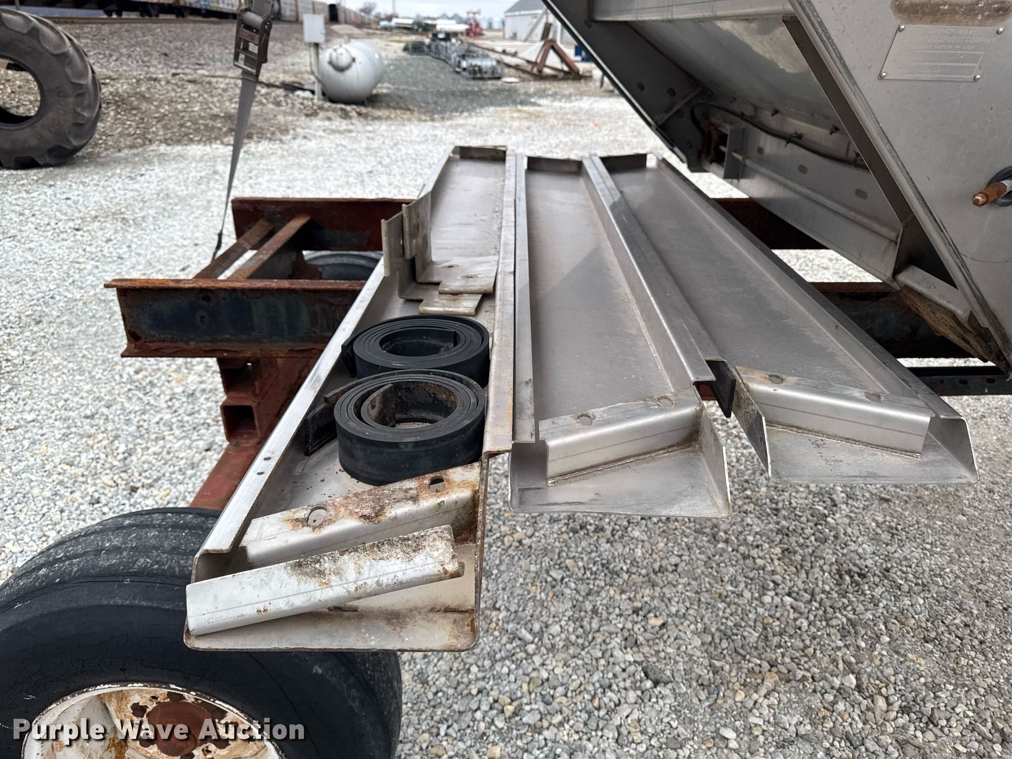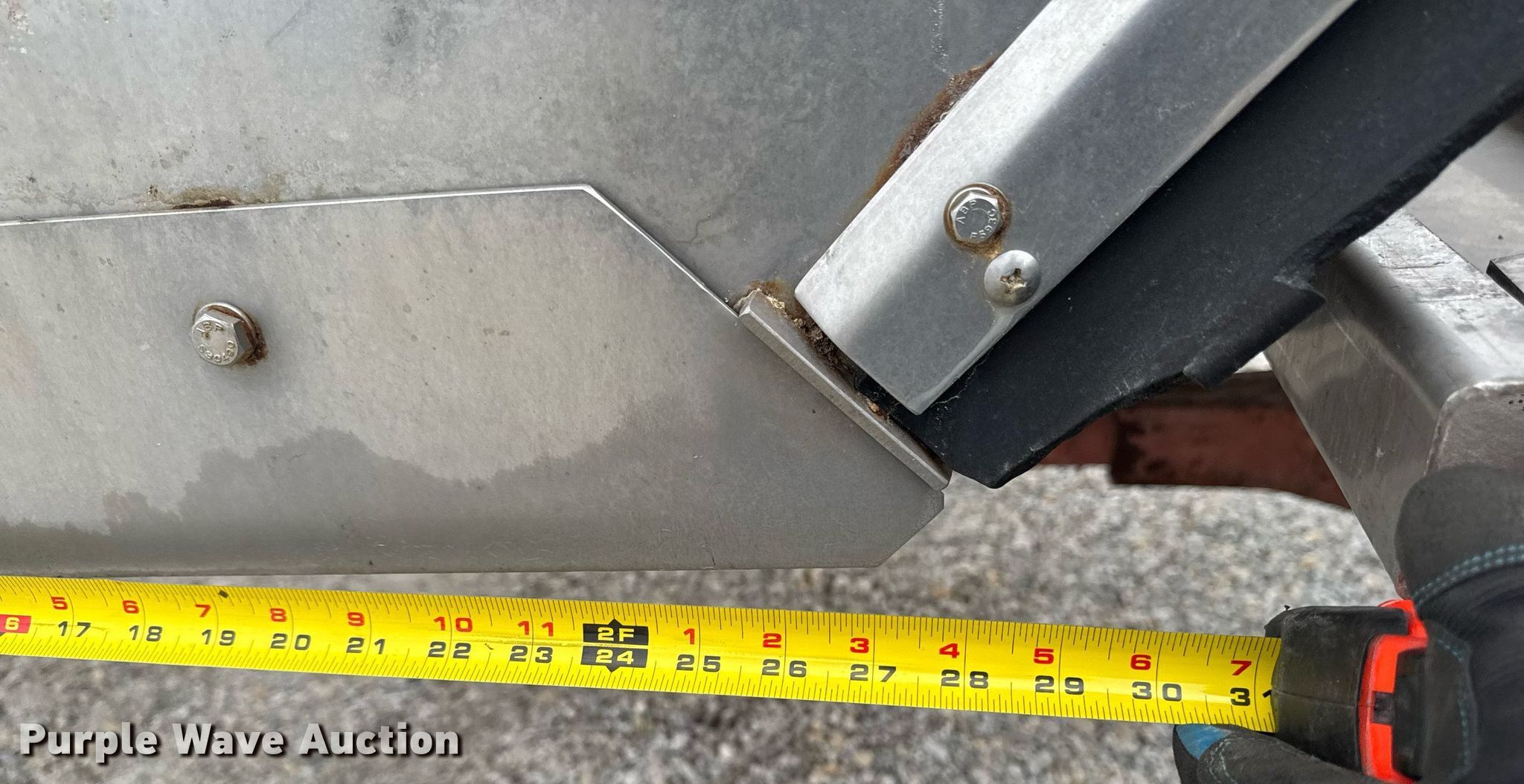 New Leader Multapplier-7 spreader. Serial: 134619. Features Stainless steel, Dimensions: 96" x 28" x 55". Notes Running gear not included, Unknown operating condition. Keystone Cooperative. West Point, IN 47992