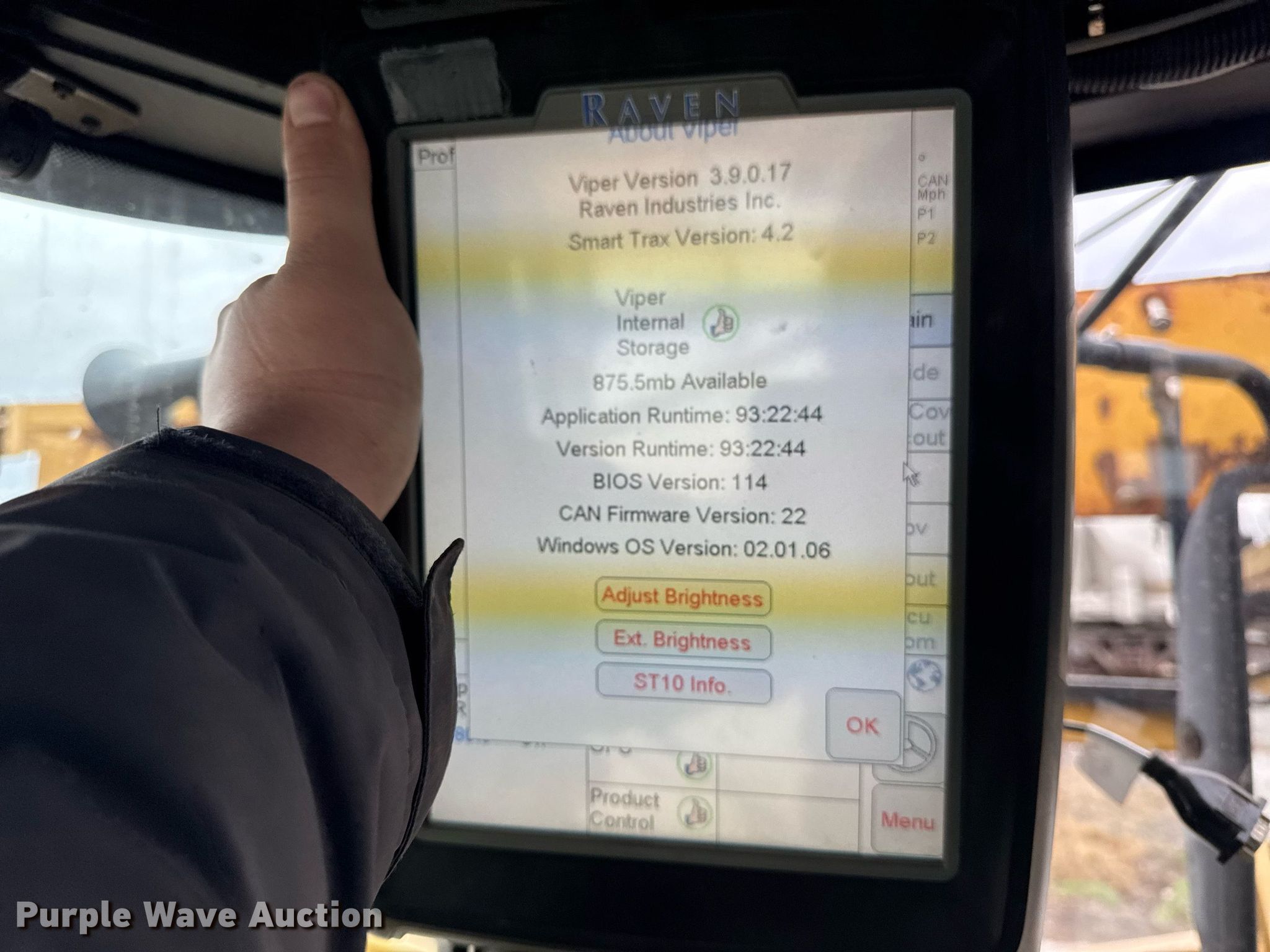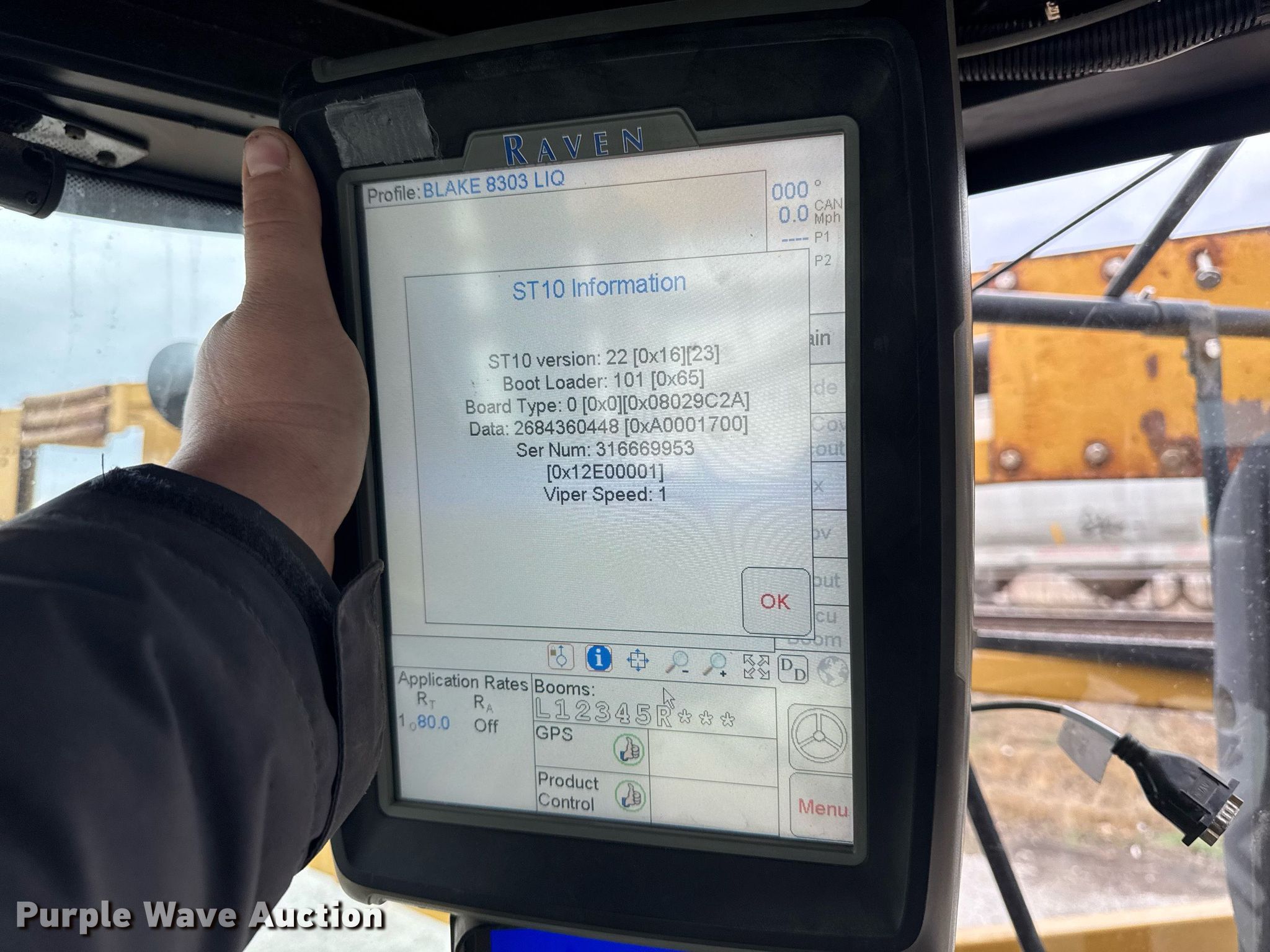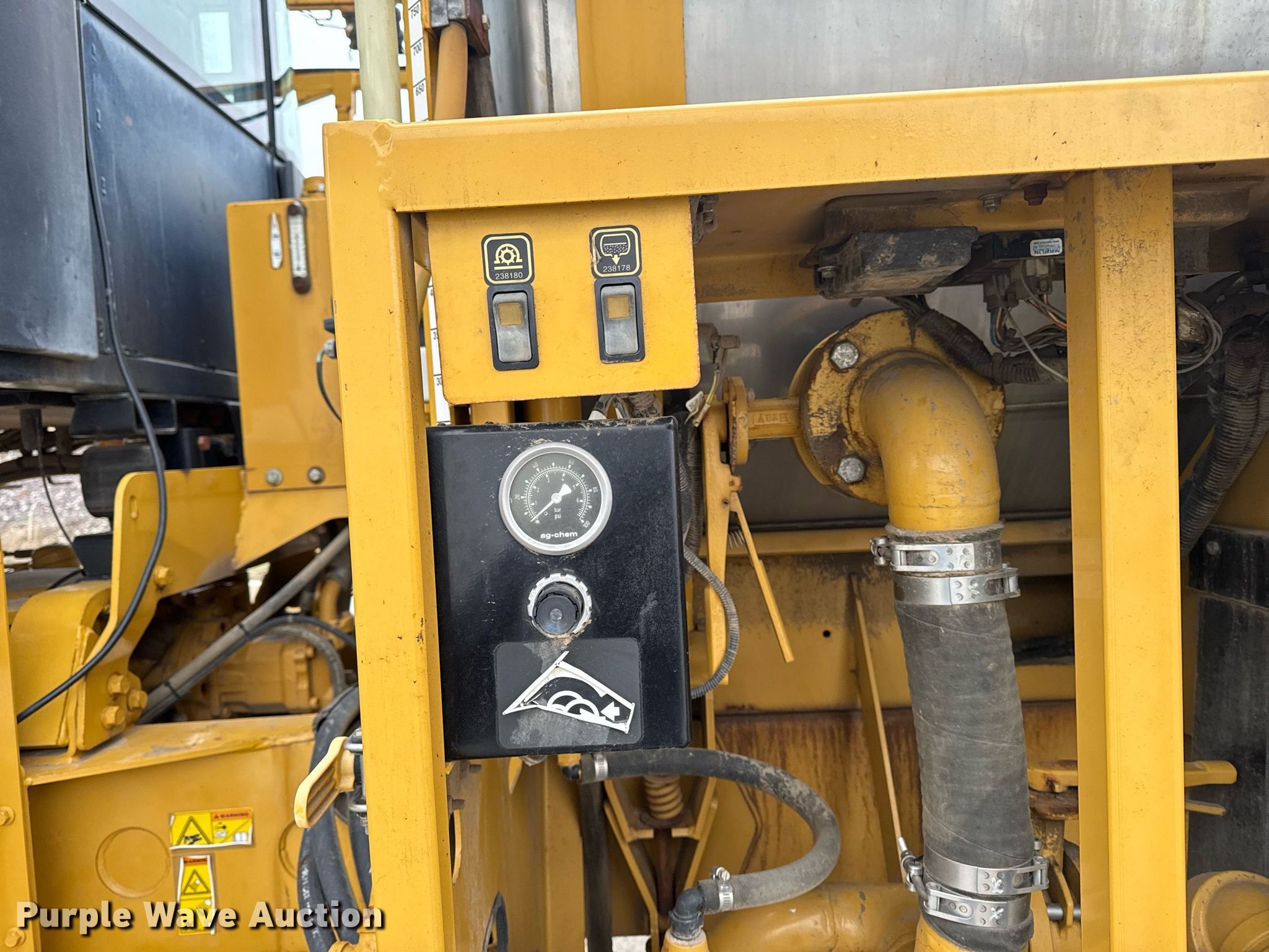 2011 TerraGator 8303 sprayer. Engine hours: 3,226 on meter, Serial: AGCA8303VNW001101. Engine Agco 84CTA-4V, Serial: W15776, Cylinders: 6, Fuel type: Diesel. Transmission CVT, Two speed. Operators station AC, Heat, Rotary beacon. Features Solution tank Capacity: 1,800 gallons, Type: Stainless Steel, Front fill, Foam marker Capacity: 55 gallons, Rinse tank Capacity: 250 gallons, Clean water tank, Boom Width: 95', Sections: 5, Boom breakaway, Hydraulic boom fold, Hydraulic height control, Nozzle Spacing: 30", Nozzle bodies: Single, Fence row nozzles, Electronics Light bar Raven RGL600, GPS monitor Raven 4 Pro, GPS receiver Raven, Auto steer, Ground radar. Tires Size: 1000/50R25, Flotation tires. Notes Hydraulic issues, leaks, Hose issues, blown, Warning indicator: Error code. Keystone Cooperative. West Point, IN 47992