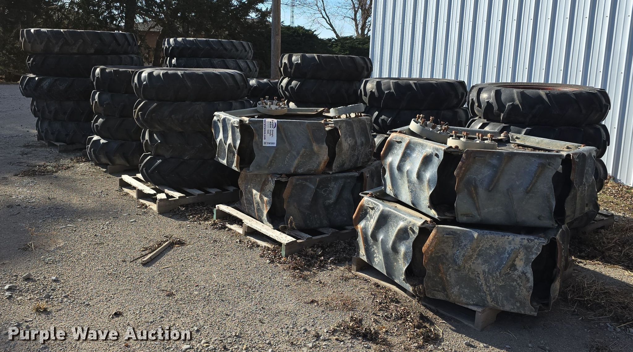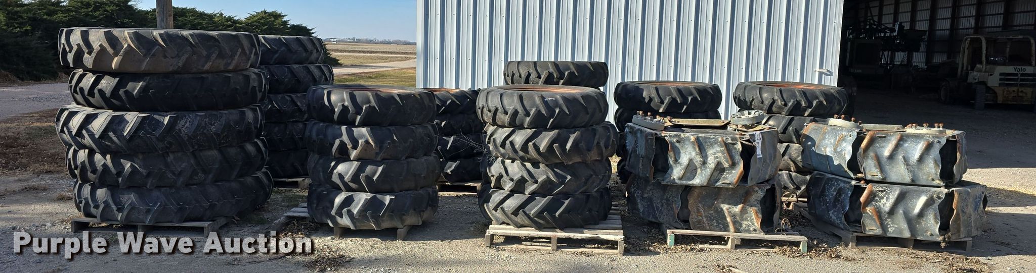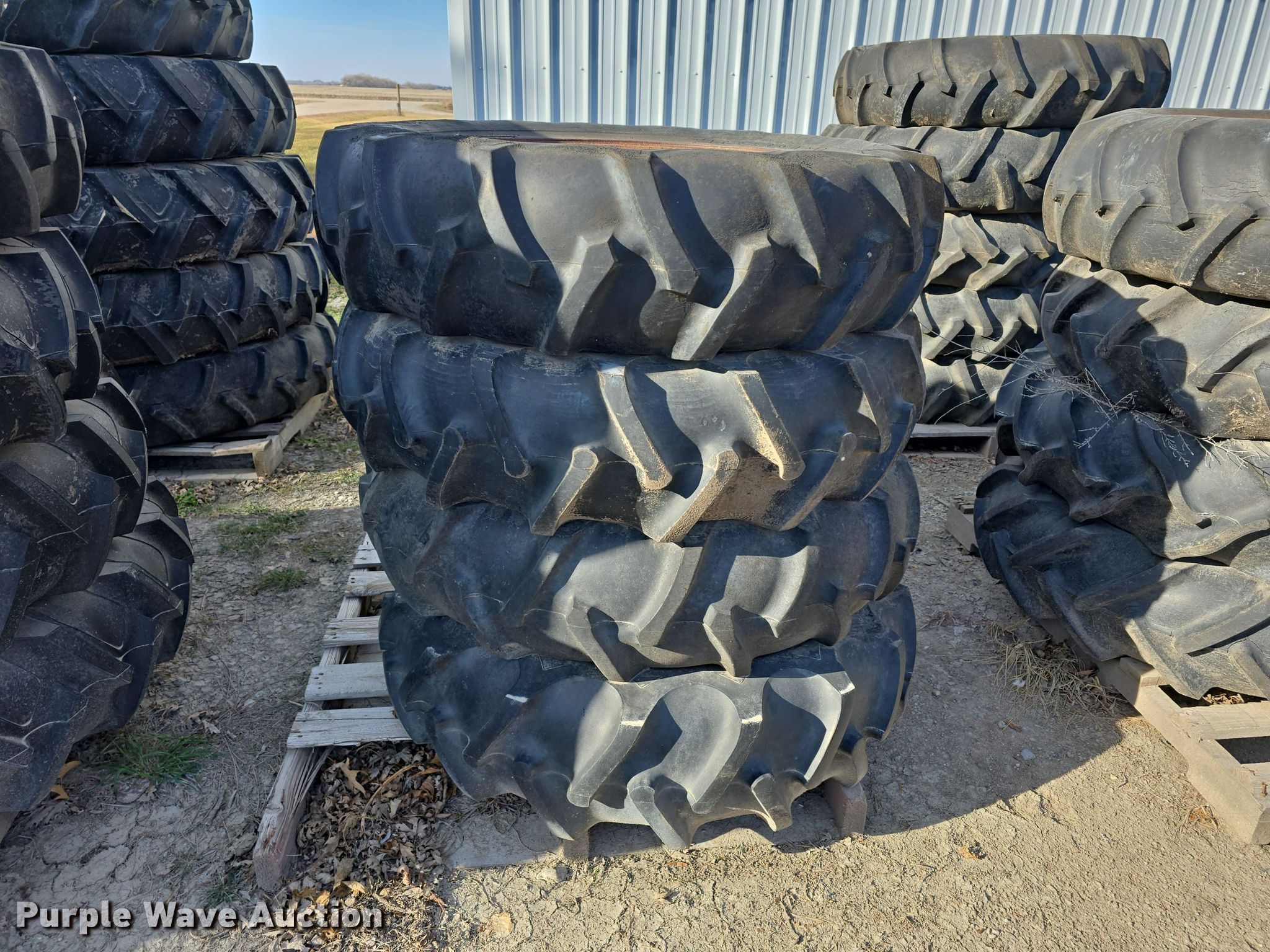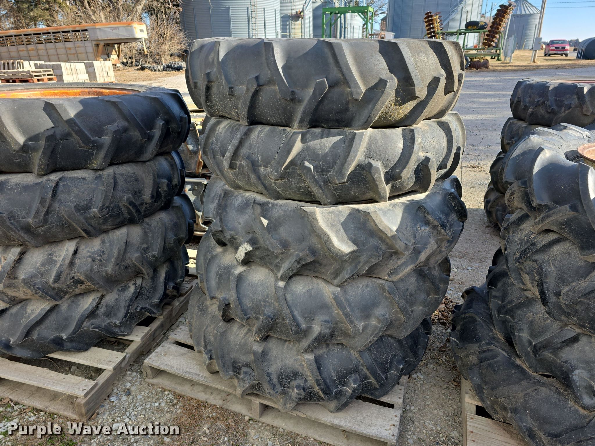 Purple Wave is selling a used Industrial Tires or Tracks in Nebraska. This item is a Irrigation pivot tires and wheels with the following: (4) 11R22.5, Tracks, (16) 11.2-38, (25) 11.2-24