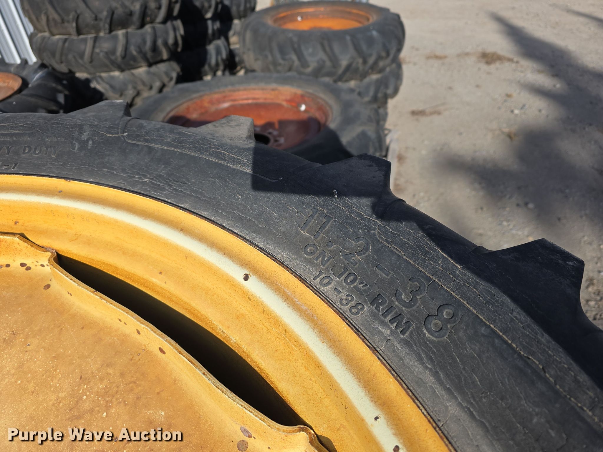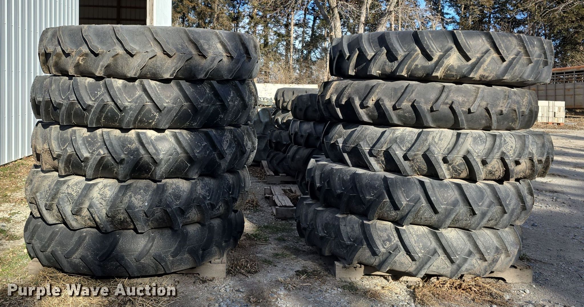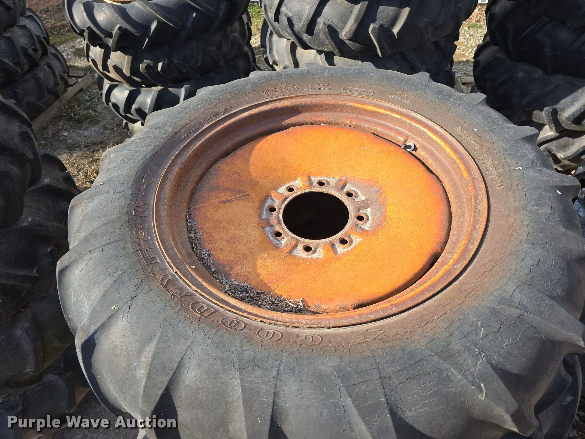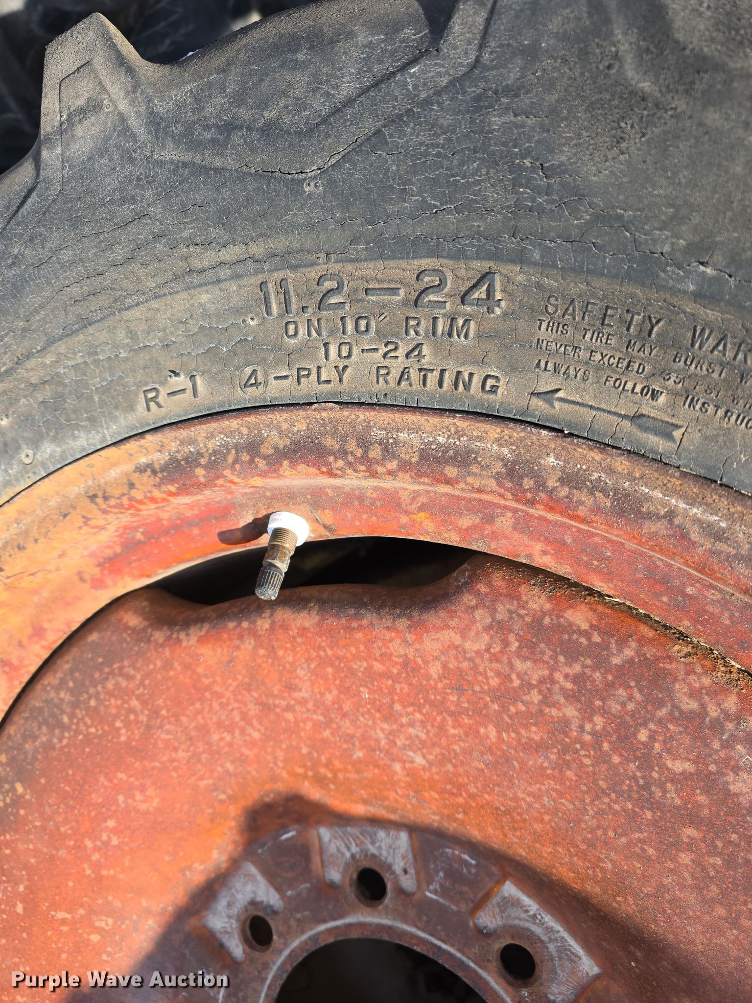 Purple Wave is selling a used Industrial Tires or Tracks in Nebraska. This item is a Irrigation pivot tires and wheels with the following: (4) 11R22.5, Tracks, (16) 11.2-38, (25) 11.2-24