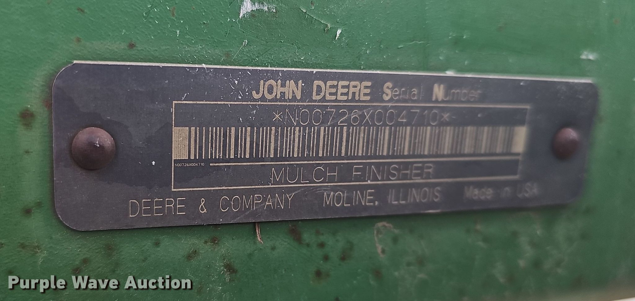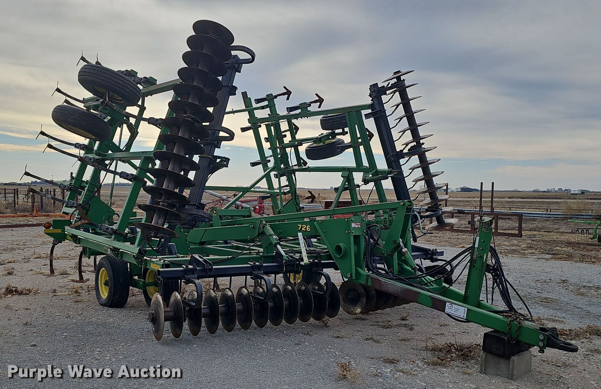 Purple Wave is selling a used Mulcher Finisher in Nebraska. This item is a John Deere 726 mulch finisher with the following: Overall width: 26', Serial: N00726X004710