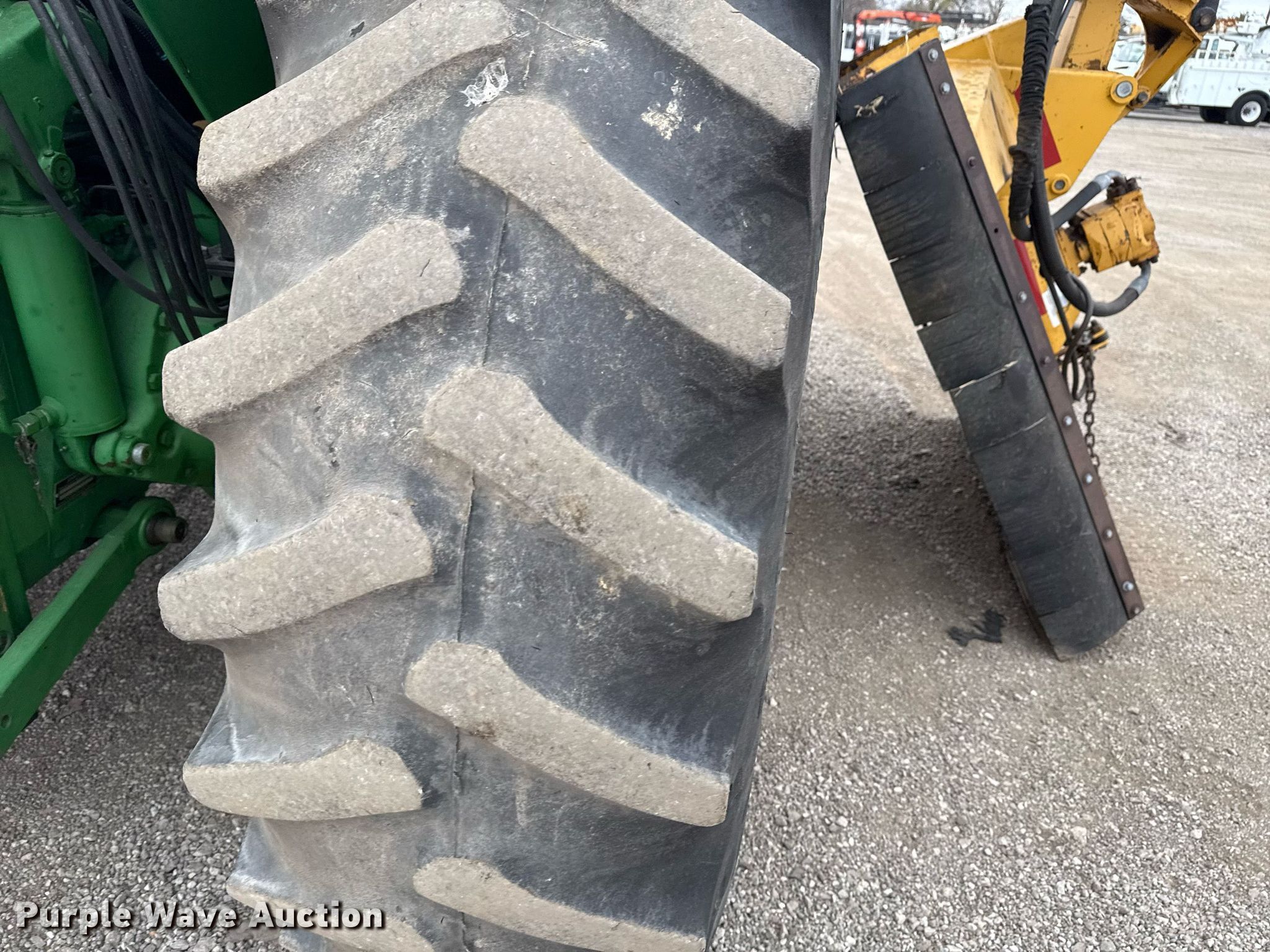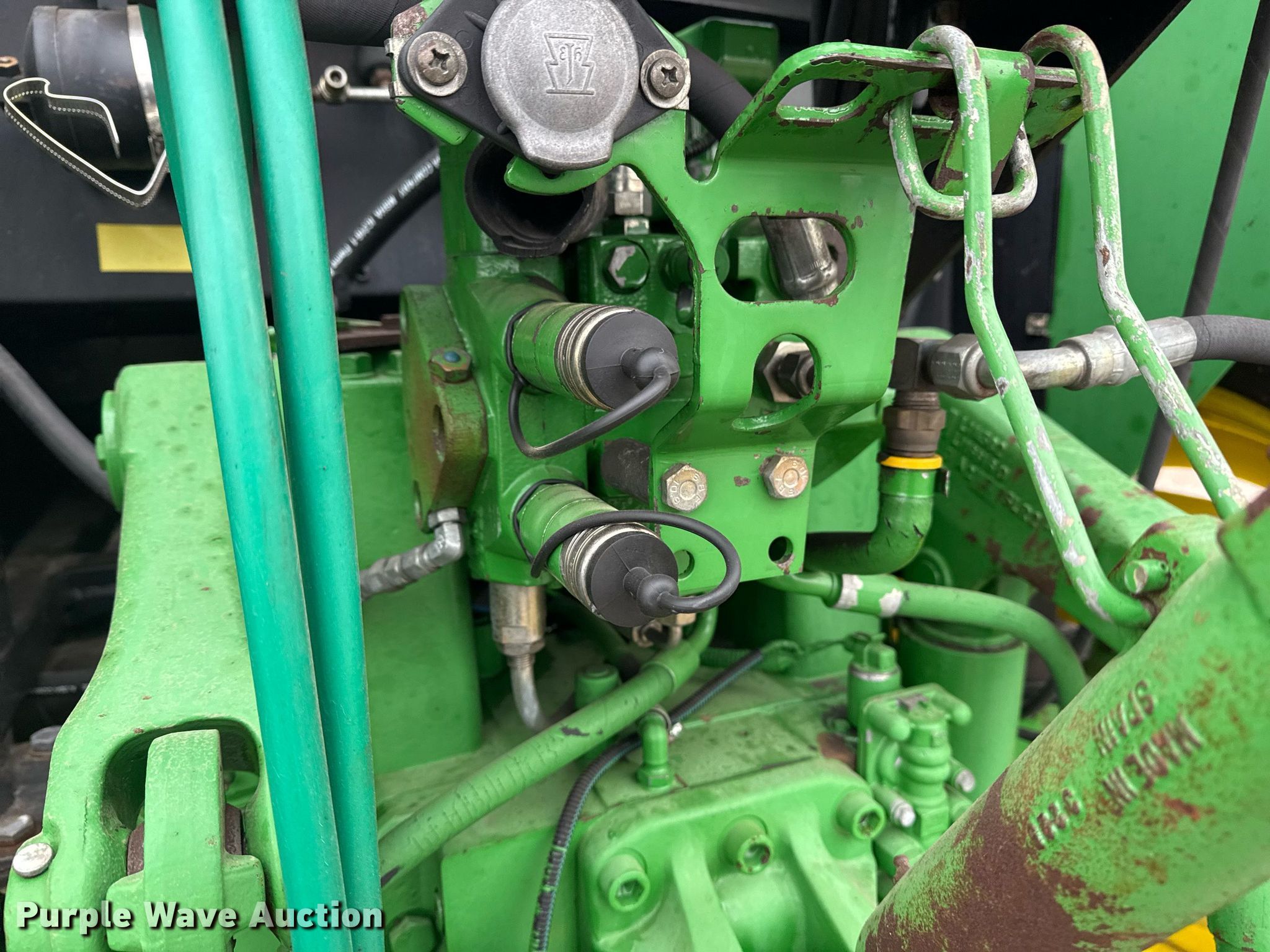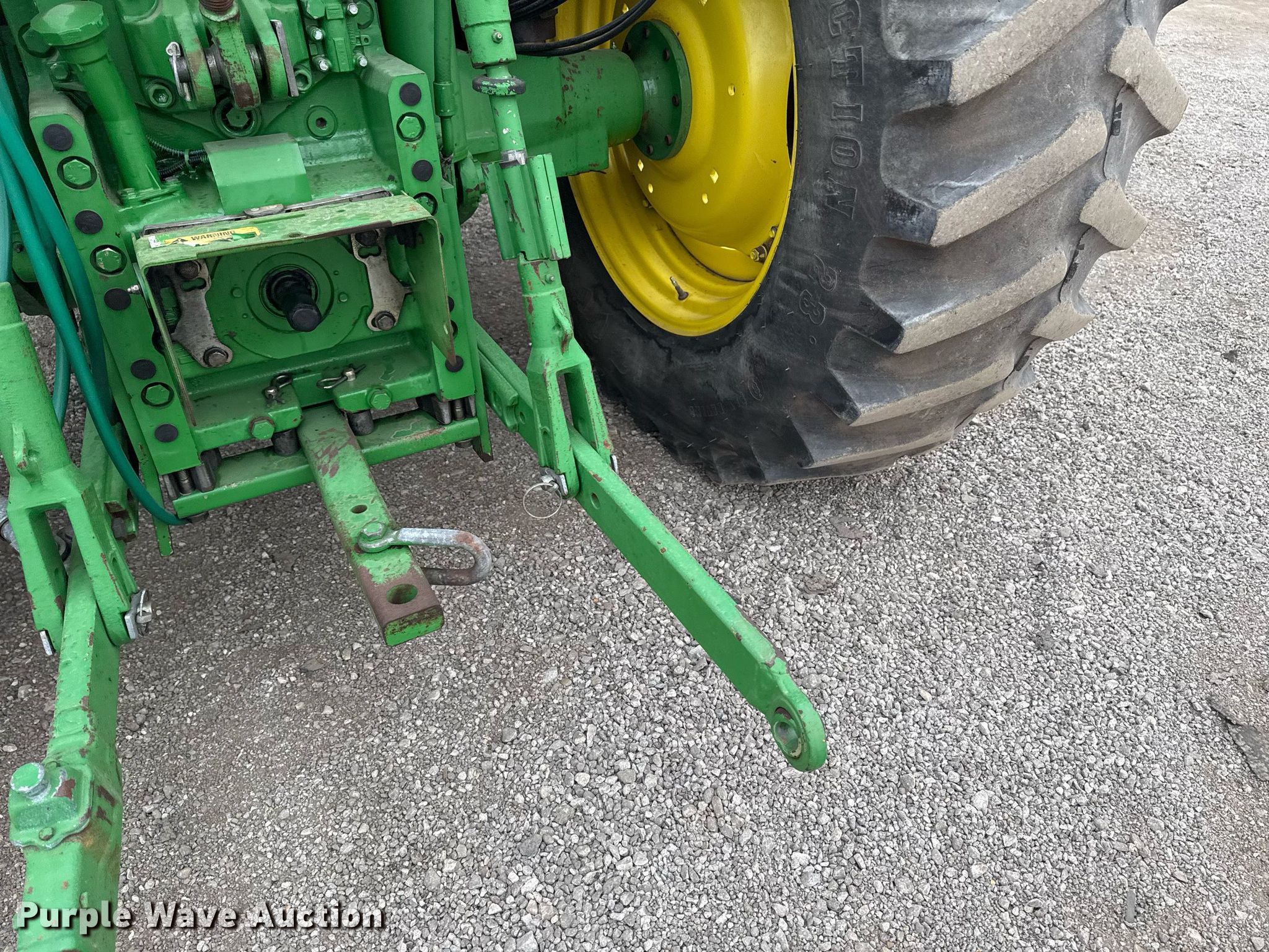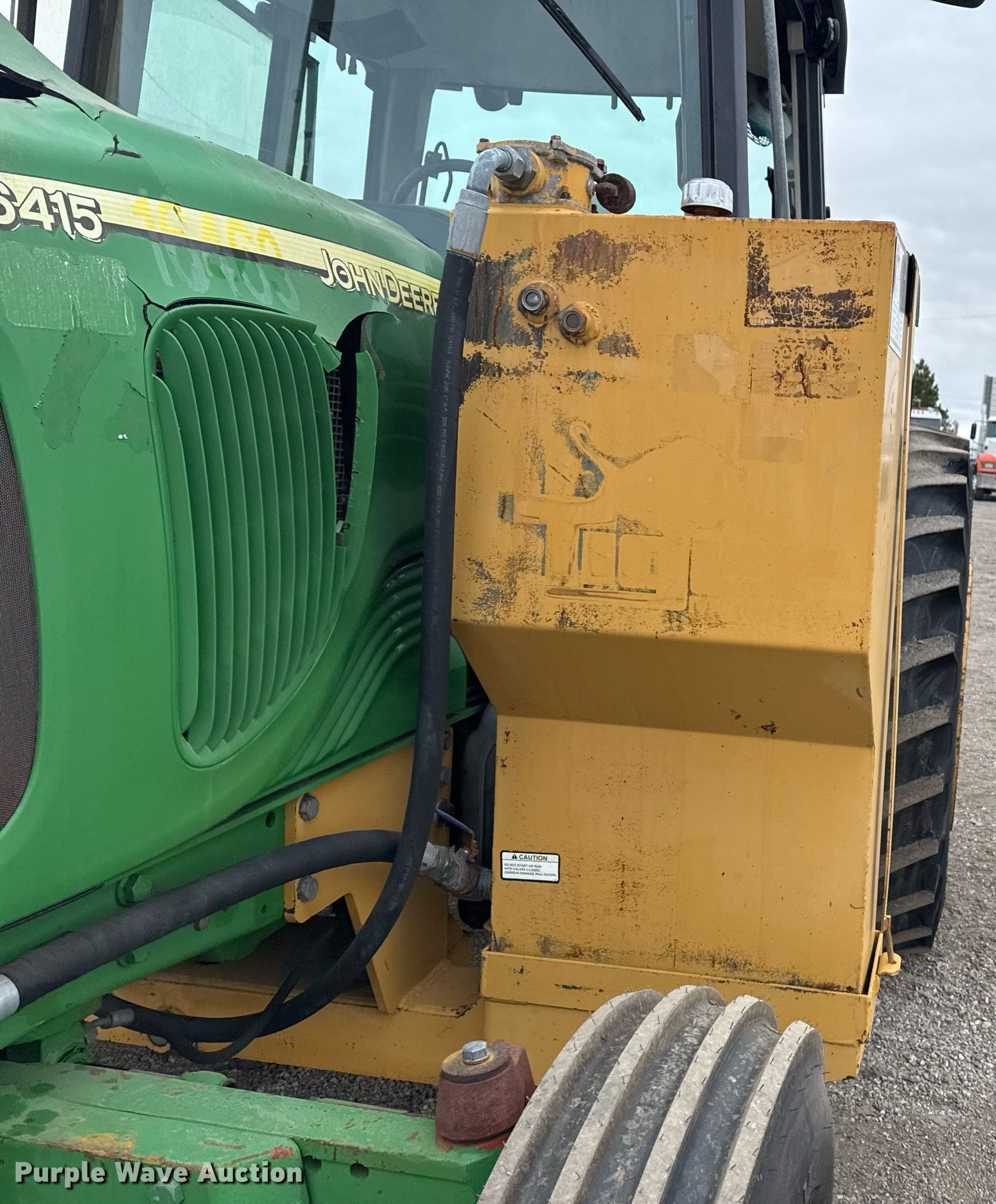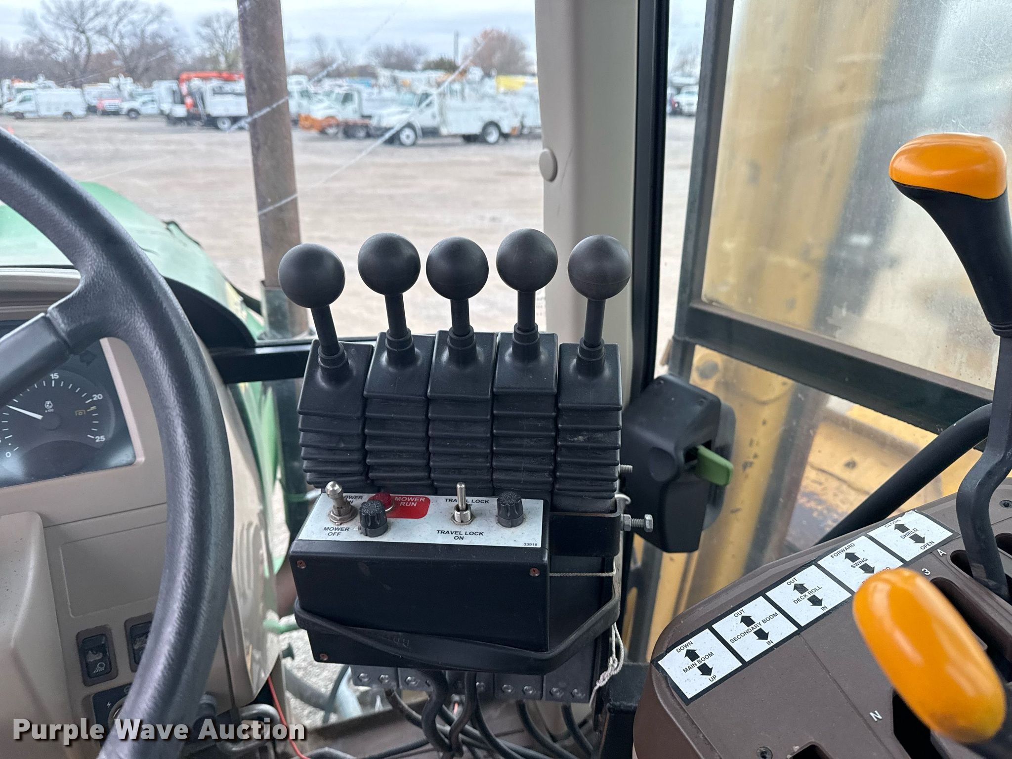 2003 John Deere 6415 tractor. Hours: 4,785 on meter, Serial: L06415B390503. Engine John Deere 4035HL, Cylinders: 4, Fuel type: Diesel. Transmission Synchro, 16F - 16R, Left-hand reverser, Differential lock. Operators station AC, Heat. Features PTO: 540, Three point Top link, Hydraulic remote sets Rear: 1, Side boom rotary mower Tiger, Cutting width: 48". Tires Front: 10.00-16, Rear: 18.4-34, Wheel weights: 1. Notes Driver door missing, Hood damaged, Possible oil leak, Possible hydraulic leak. Collinsville, OK 74021