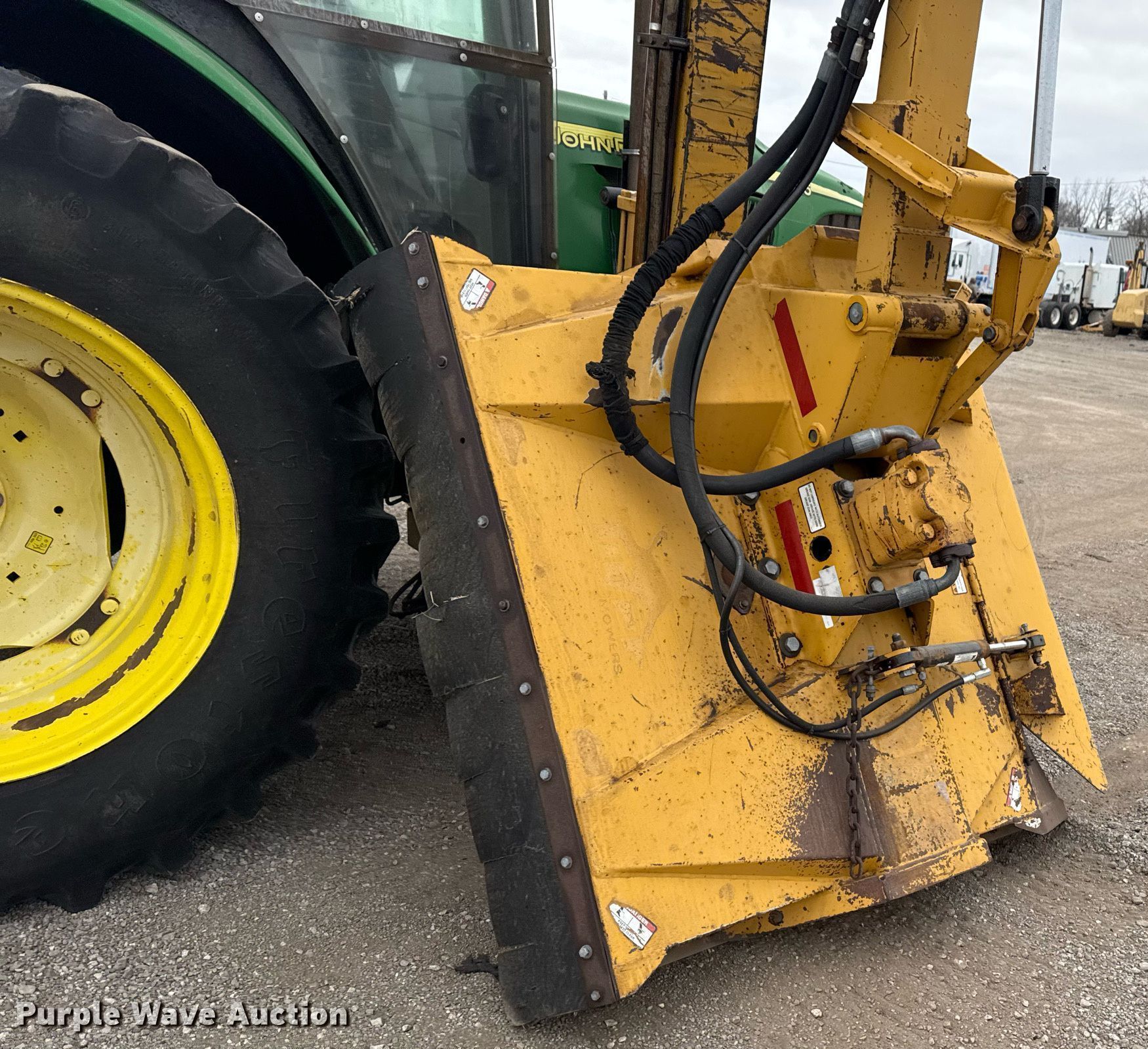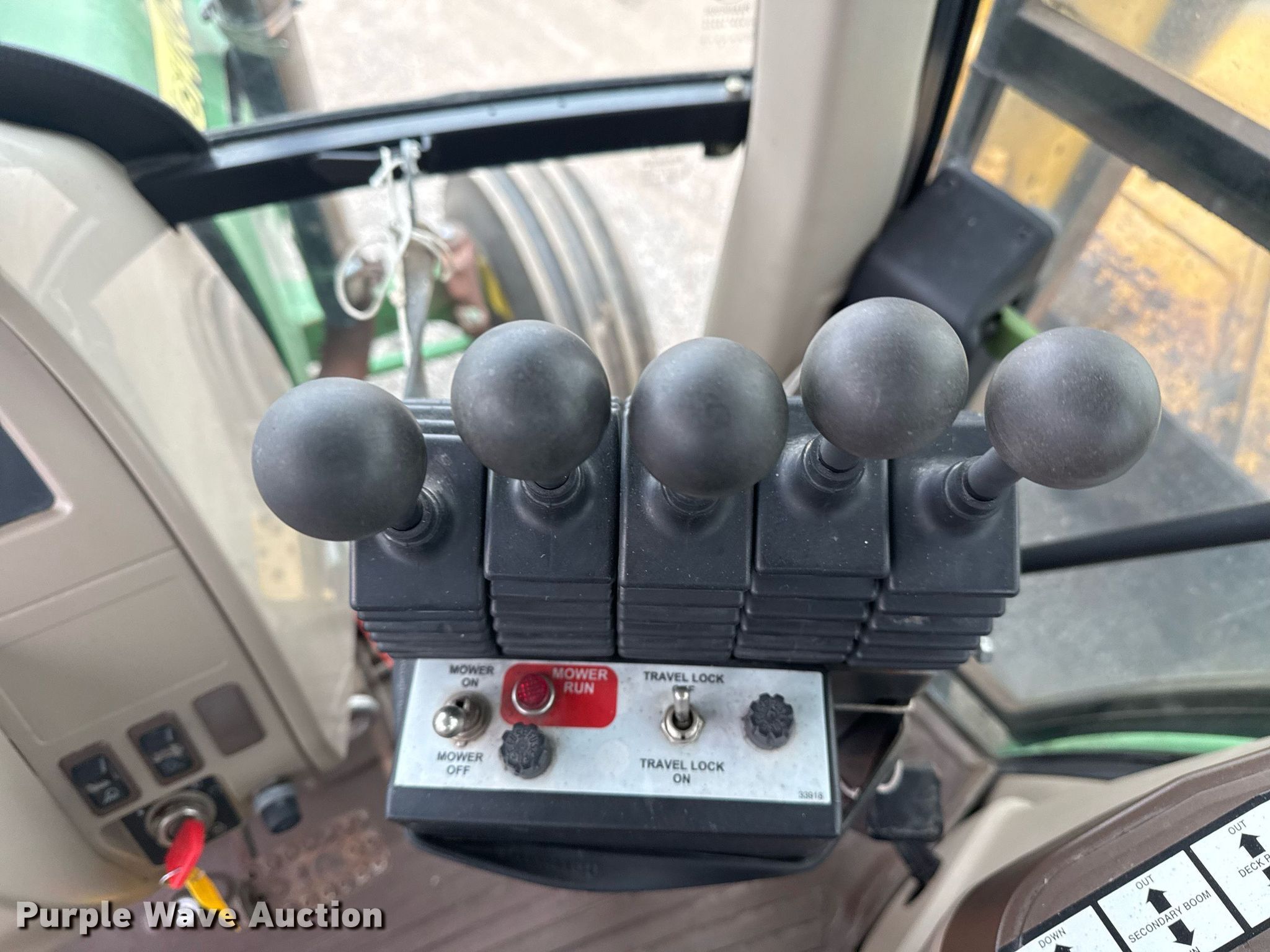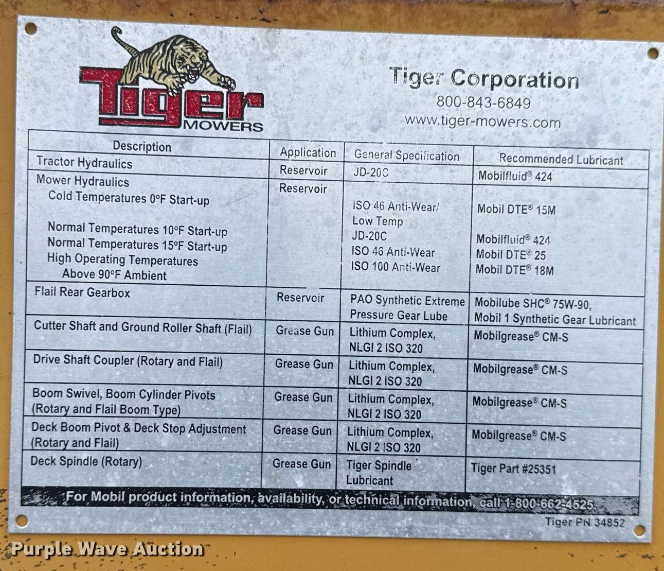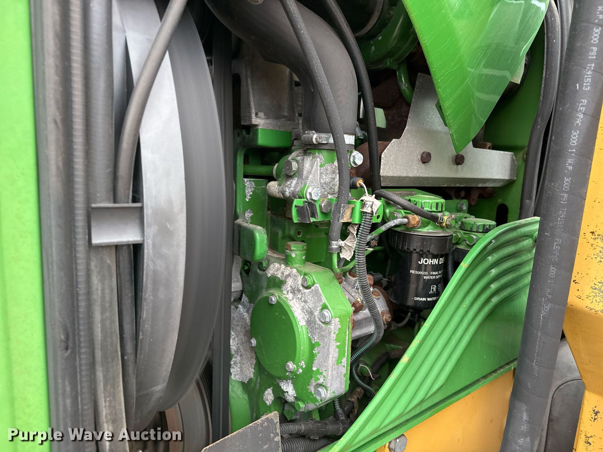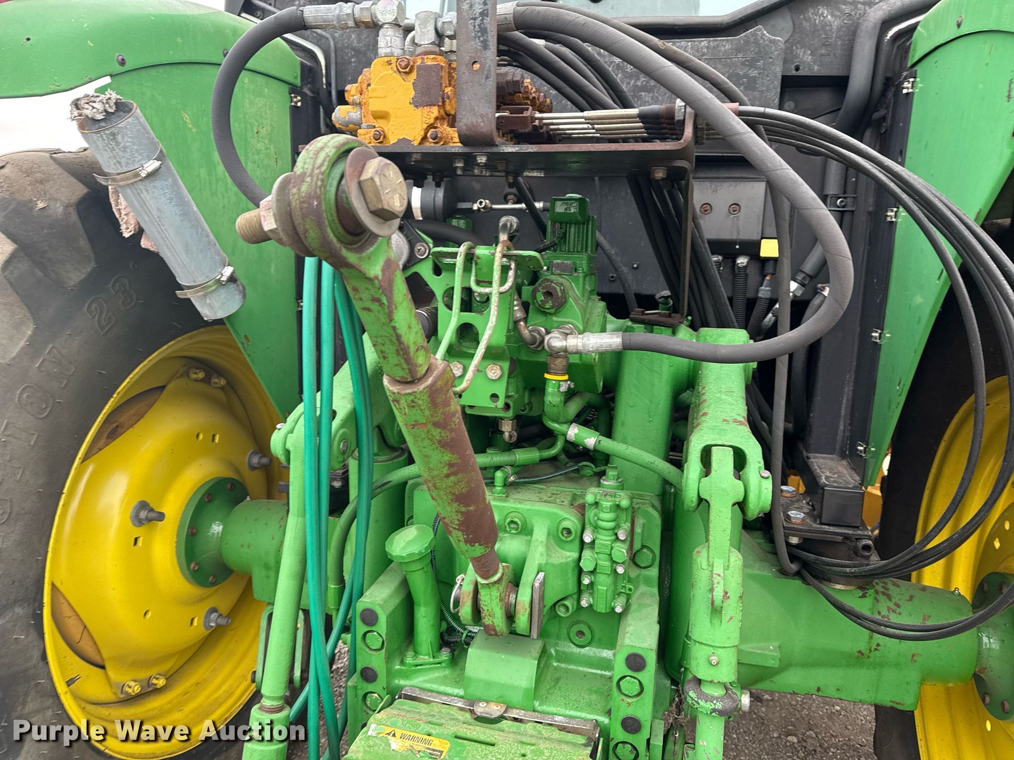 2003 John Deere 6415 tractor. Hours: 4,785 on meter, Serial: L06415B390503. Engine John Deere 4035HL, Cylinders: 4, Fuel type: Diesel. Transmission Synchro, 16F - 16R, Left-hand reverser, Differential lock. Operators station AC, Heat. Features PTO: 540, Three point Top link, Hydraulic remote sets Rear: 1, Side boom rotary mower Tiger, Cutting width: 48". Tires Front: 10.00-16, Rear: 18.4-34, Wheel weights: 1. Notes Driver door missing, Hood damaged, Possible oil leak, Possible hydraulic leak. Collinsville, OK 74021