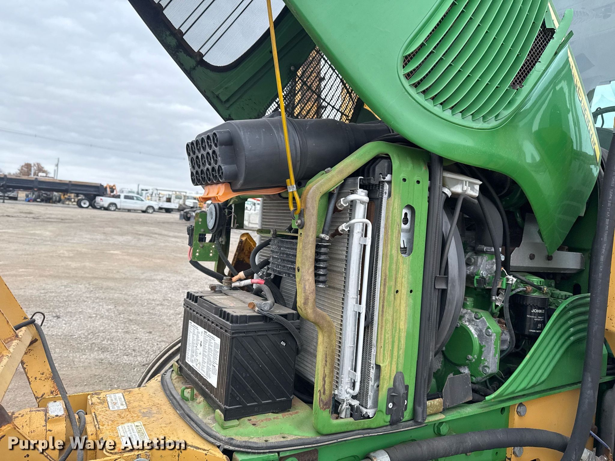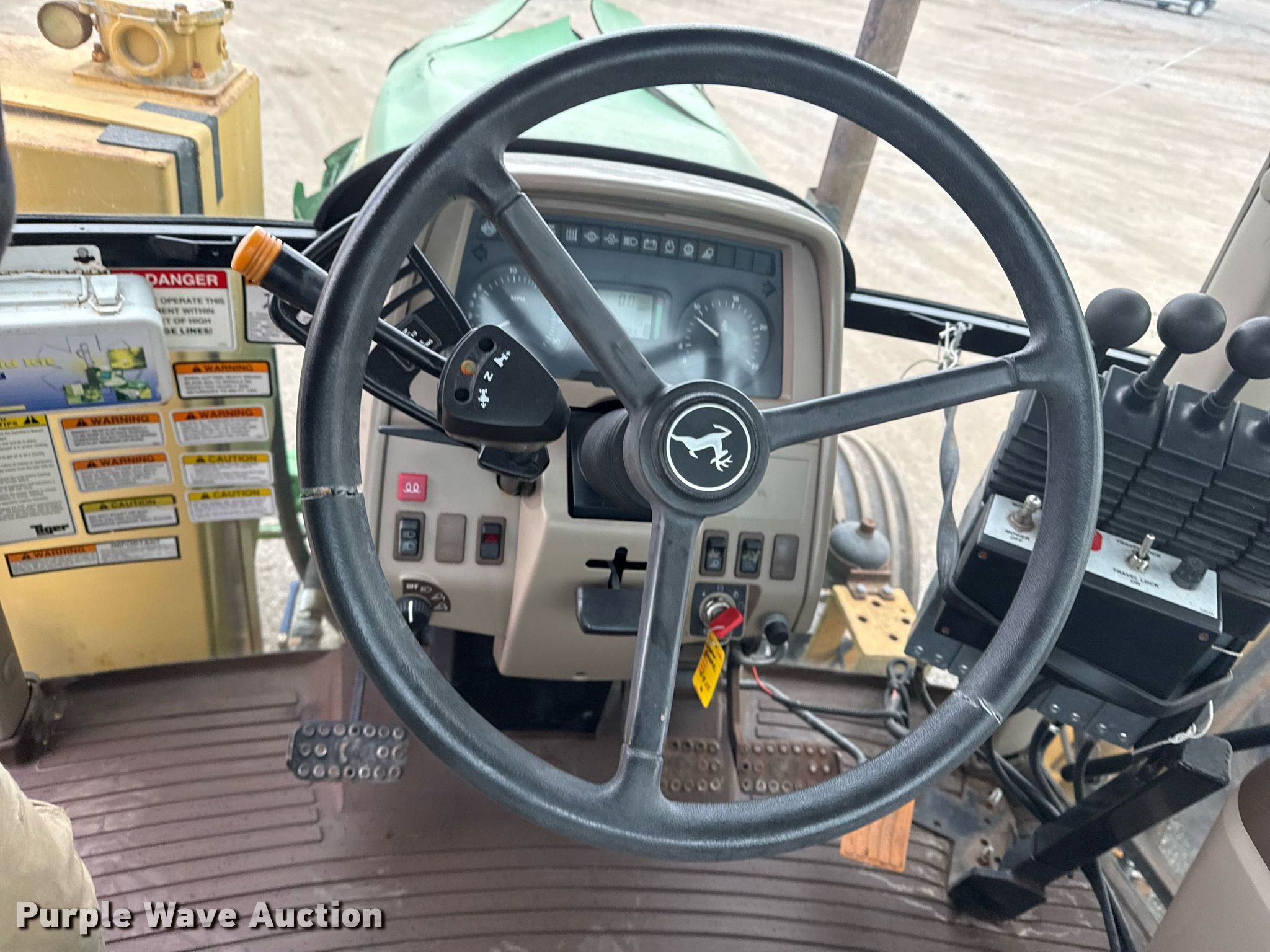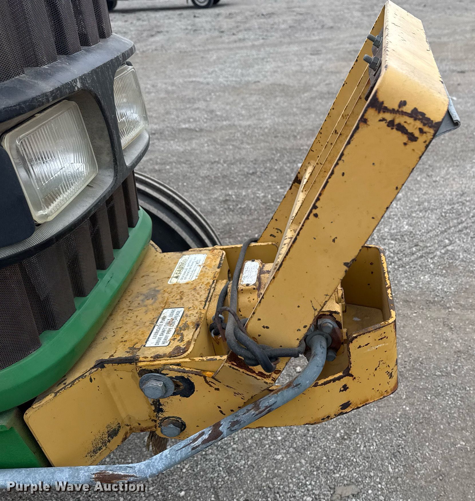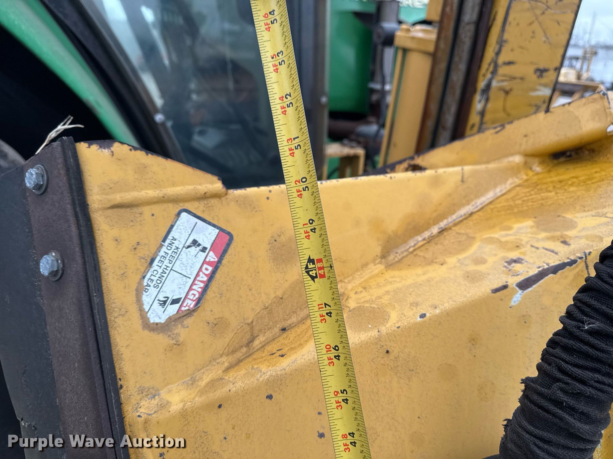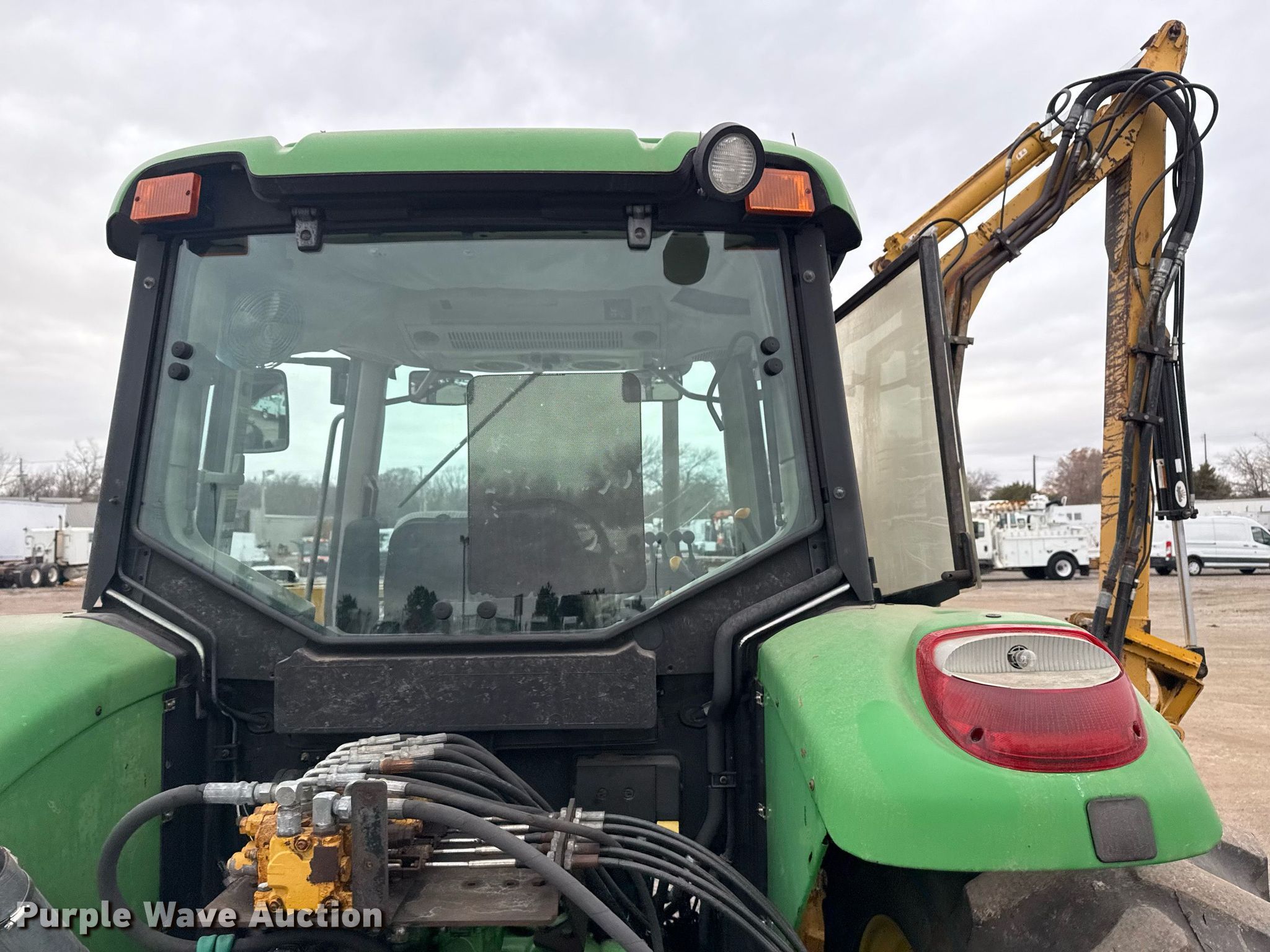 2003 John Deere 6415 tractor. Hours: 4,785 on meter, Serial: L06415B390503. Engine John Deere 4035HL, Cylinders: 4, Fuel type: Diesel. Transmission Synchro, 16F - 16R, Left-hand reverser, Differential lock. Operators station AC, Heat. Features PTO: 540, Three point Top link, Hydraulic remote sets Rear: 1, Side boom rotary mower Tiger, Cutting width: 48". Tires Front: 10.00-16, Rear: 18.4-34, Wheel weights: 1. Notes Driver door missing, Hood damaged, Possible oil leak, Possible hydraulic leak. Collinsville, OK 74021