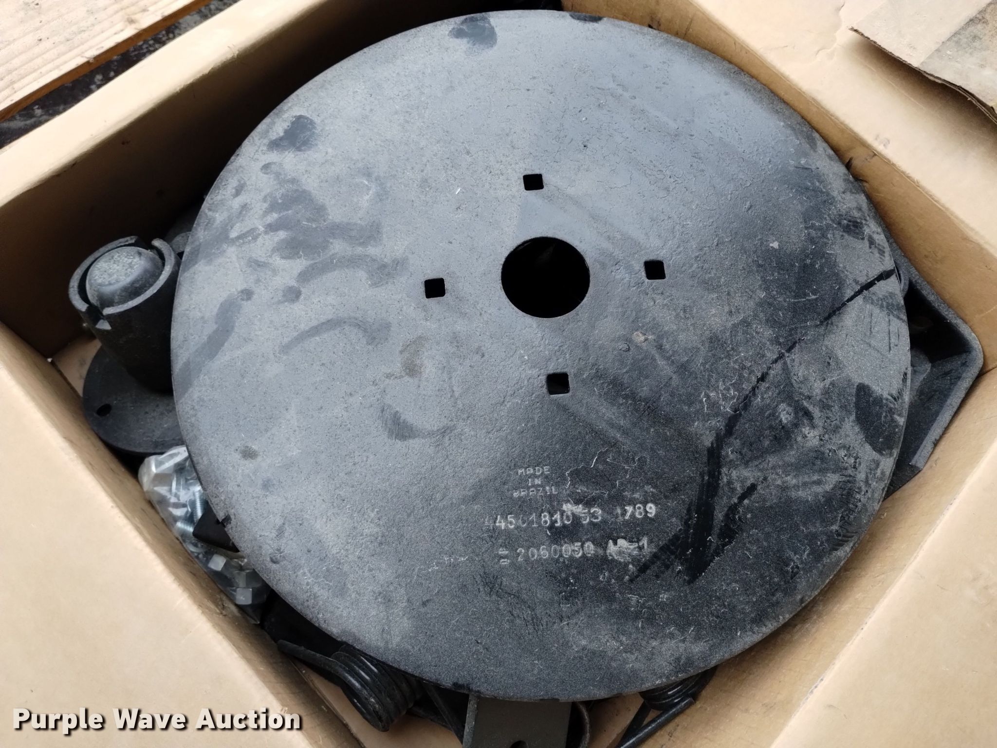 Purple Wave is selling a used Ag Equip. Other in Indiana. This item is a Applicator parts with the following: (4) 18" disc sealers, (6) 24" DMI coulters, Unused