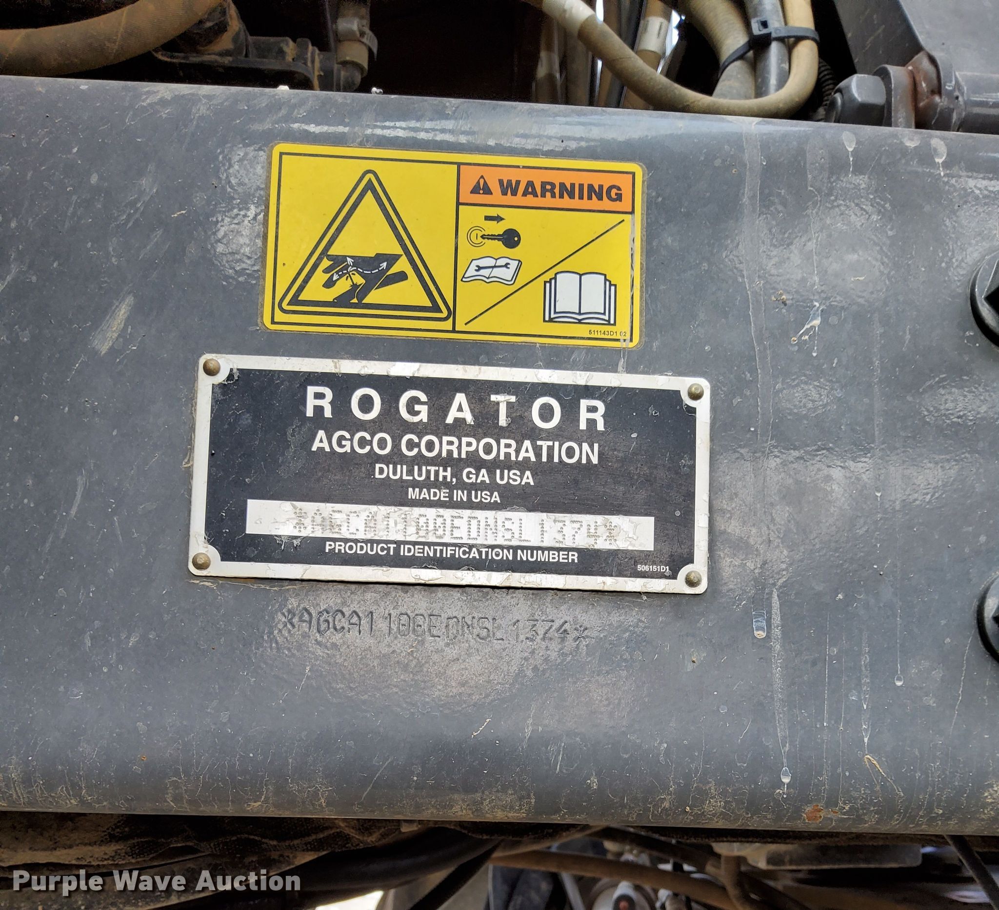 Purple Wave is selling a used Applicator Self Propelled in Indiana. This item is a 2014 RoGator 1100 sprayer with the following: Engine hours: 4,574 on meter, Serial: AGCA1100EDNSL1374, Unit #: 925