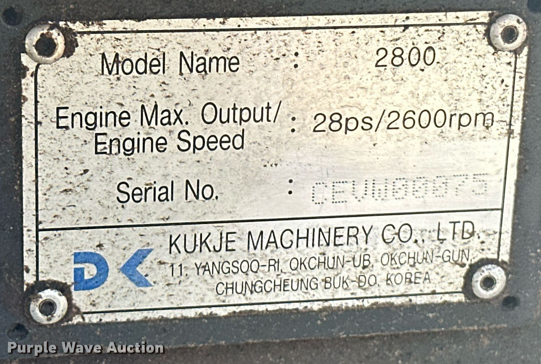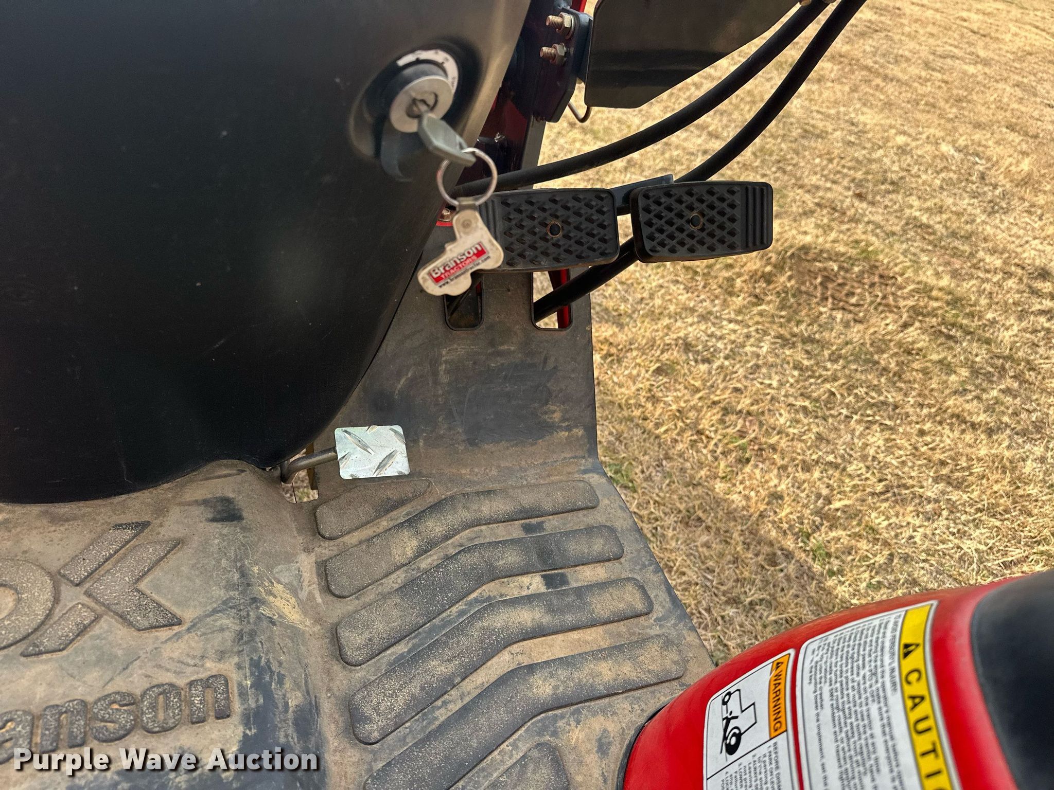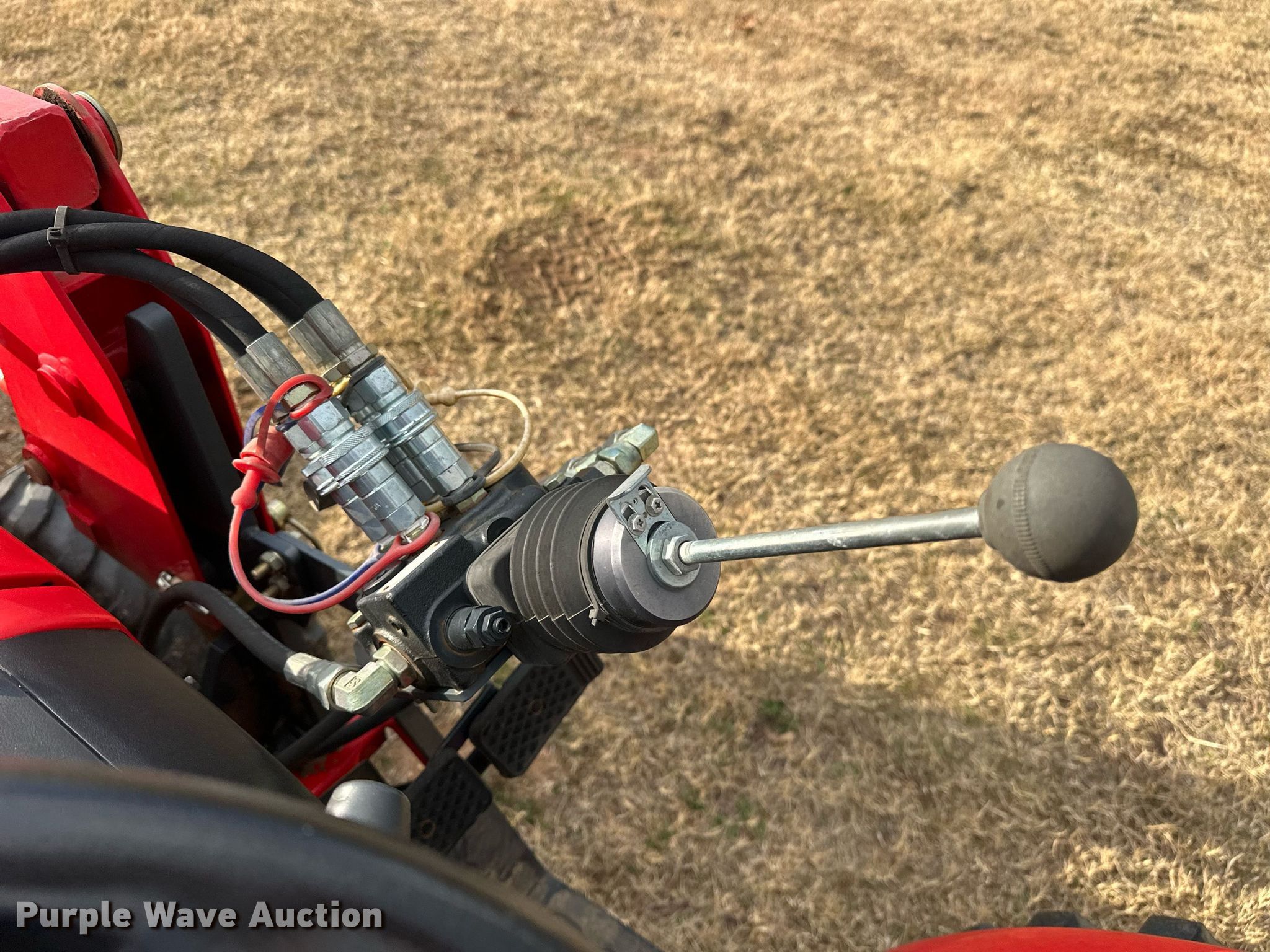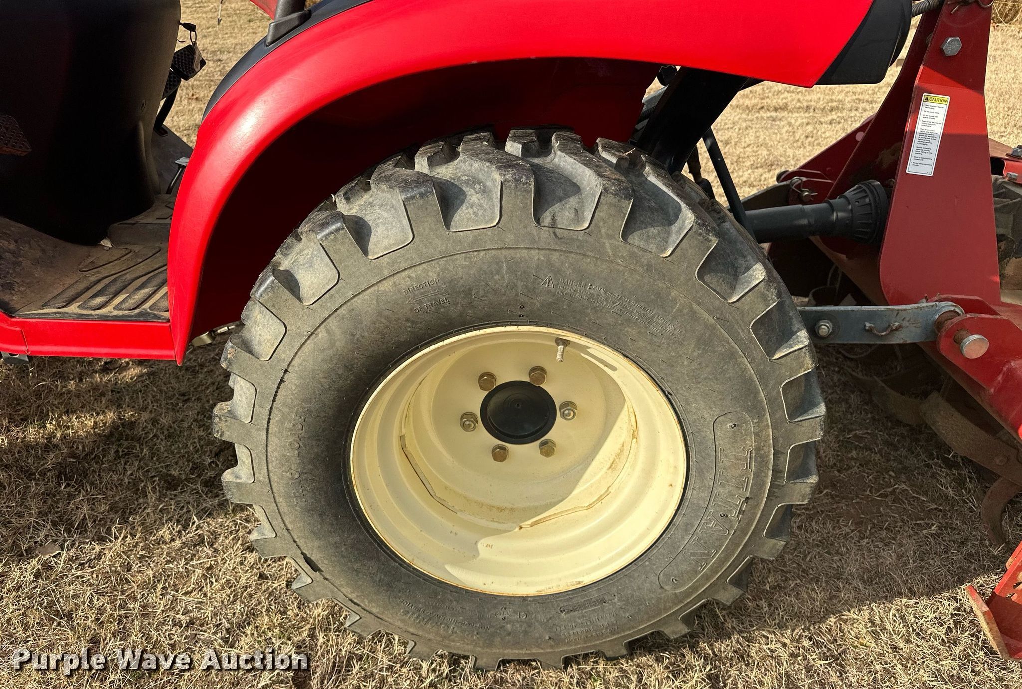 Branson 2800 MFWD tractor. Hours: 383 on meter, Serial: CEVW00075. Engine Cylinders: 3, Fuel type: Diesel. Transmission Manual, 6F - 2R, Differential lock. Features PTO: 540, Three point Top link, Loader Branson BLOO, Quick attach, Controls: Joystick, Bucket Width: 48", Rototiller Width: 47�, Diameter: 15�, Blade width: 7�. Tires Front: 23X8.50-12, Rear: 12-16.5. Ada, OK 74820