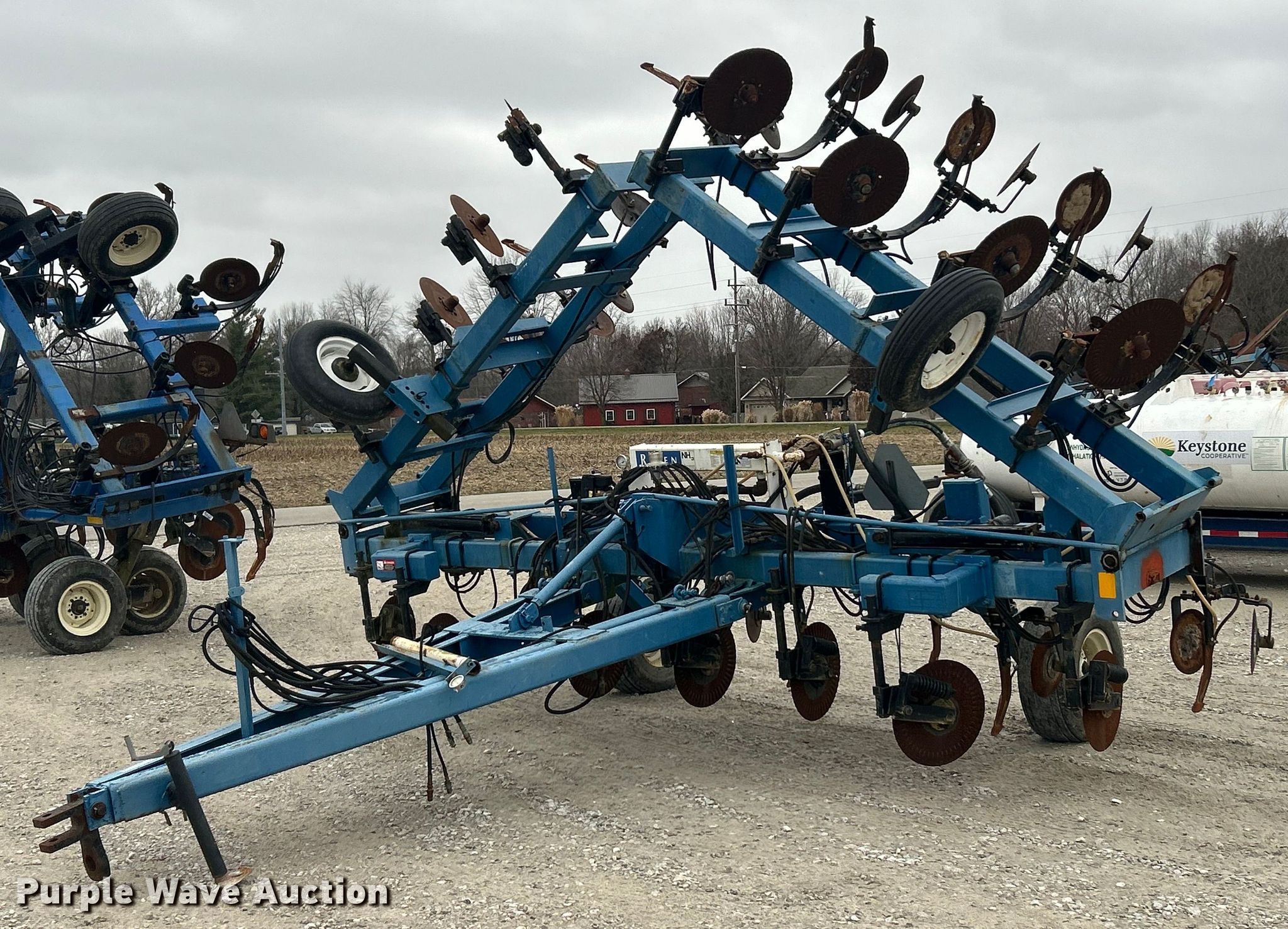 DMI NH3 applicator. Unit #: 012819. Features Boom Hydraulic fold, Hydraulic height control, Liquid/NH3 applicator Rows: 15, Spacing: 30", Delivery type: Knife, NH3 hookups Raven, Rear hitch. Tires Size: 12.5L-15, 7.50-14SL. Notes (7) closing disks missing. Keystone Cooperative. Brazil, IN 47834