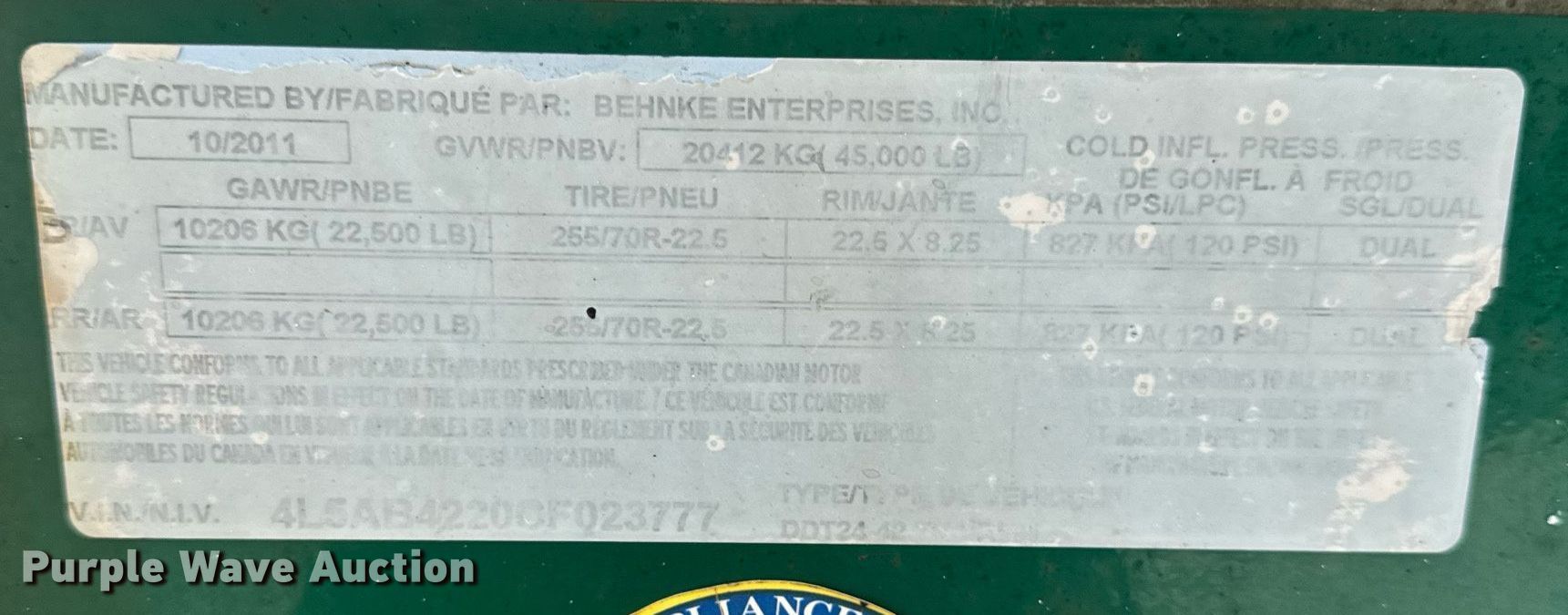 2012 Behnke Enterprises DDT24-42 fertilizer delivery trailer