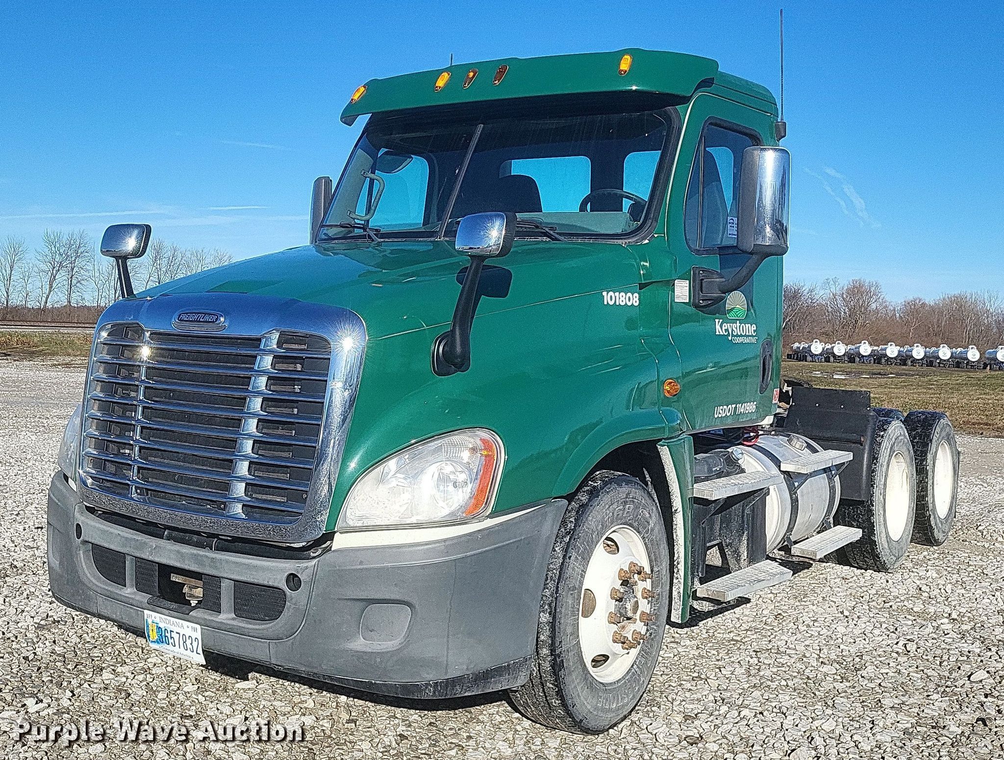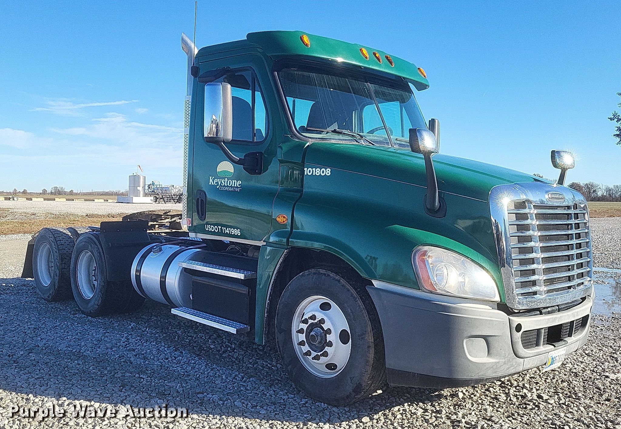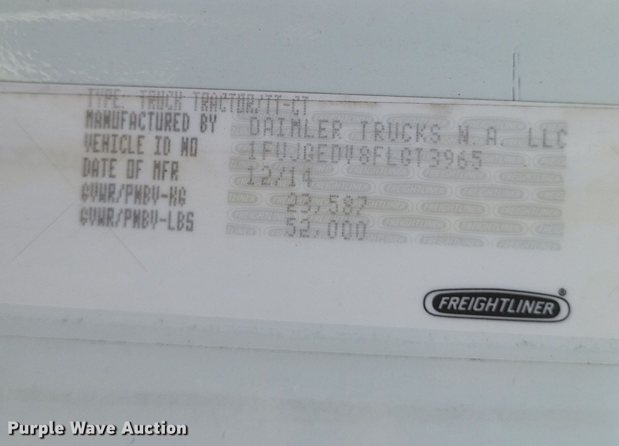 Purple Wave is selling a used Truck Tractor in Indiana. This item is a 2015 Freightliner Cascadia semi truck with the following: Miles: 539,580 on odometer, Hours: 15,896 on meter, VIN: 1FUJGEDV8FLGT3965, Unit #: 101808