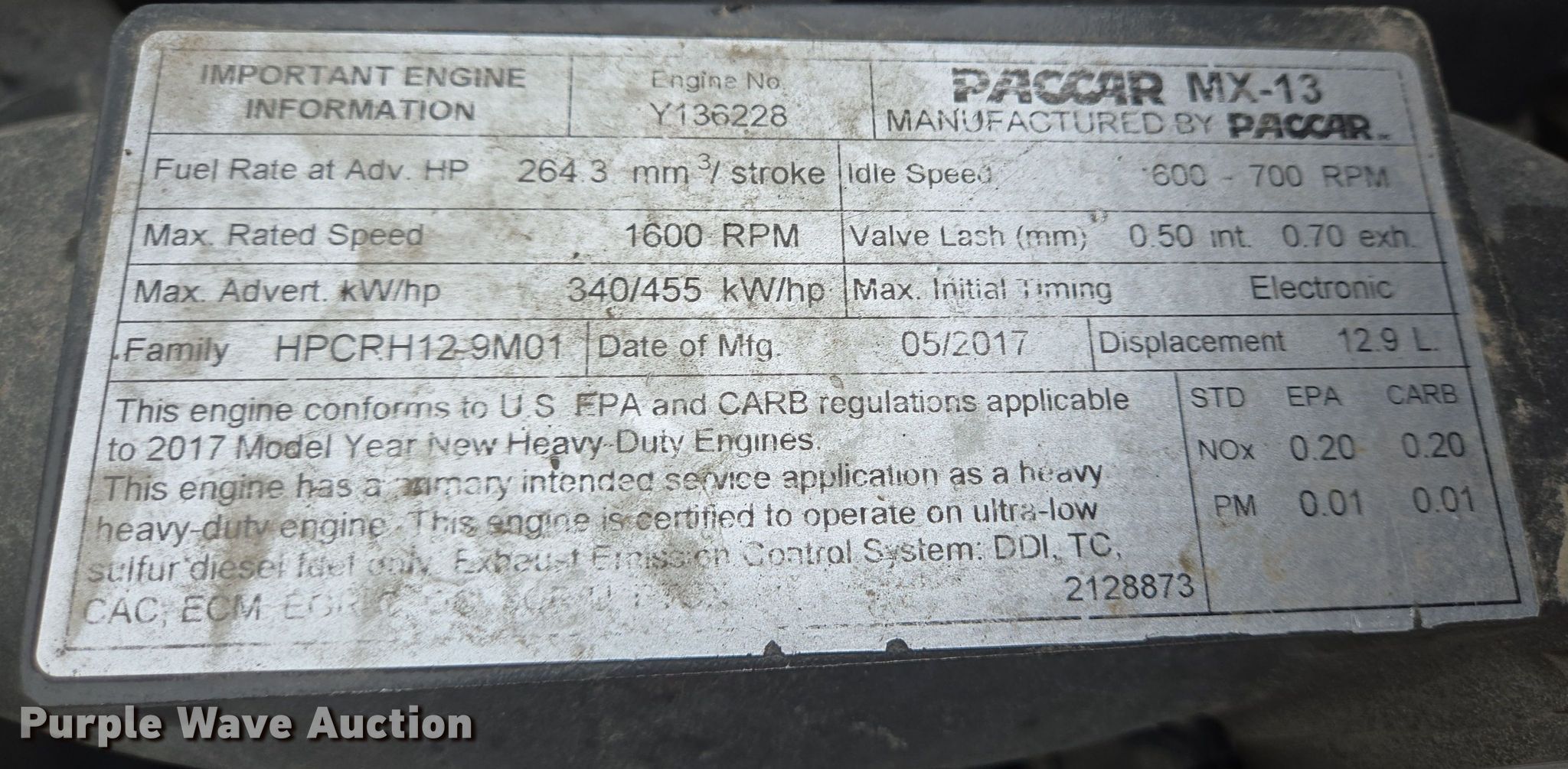 2018 Kenworth T880 semi truck. Miles: 295,311 on odometer, VIN: 1XKZAP8X2JJ198031. Engine Paccar MX-13, Serial: Y136228, Displacement: 12.9L, Cylinders: 6, Fuel type: Diesel, HP: 455, kW: 340, Engine brake. Transmission Eaton Fuller FRO-16210C, Manual, Speed: 10. Chassis Axles: Single, Suspension: Air Dump valves, Brakes: Air, GVWR: 34,700 lbs FAWR: 12,000 lbs, RAWR: 22,700 lbs, Wheelbase: 155". Interior AC, Heat, Power windows, Power locks, Air ride cab. Features Deck plate: Aluminum, Fifth wheel type: Fixed, Fuel tank: Dual. Tires Size: 295/75R22.5. Buyer responsible for all aspects of state emissions compliance. Titles will be distributed after confirmation of payment and removal. California title. Title distribution may be delayed up to 30 days from verification of funds. The Pape Group. Sacramento, CA 95838