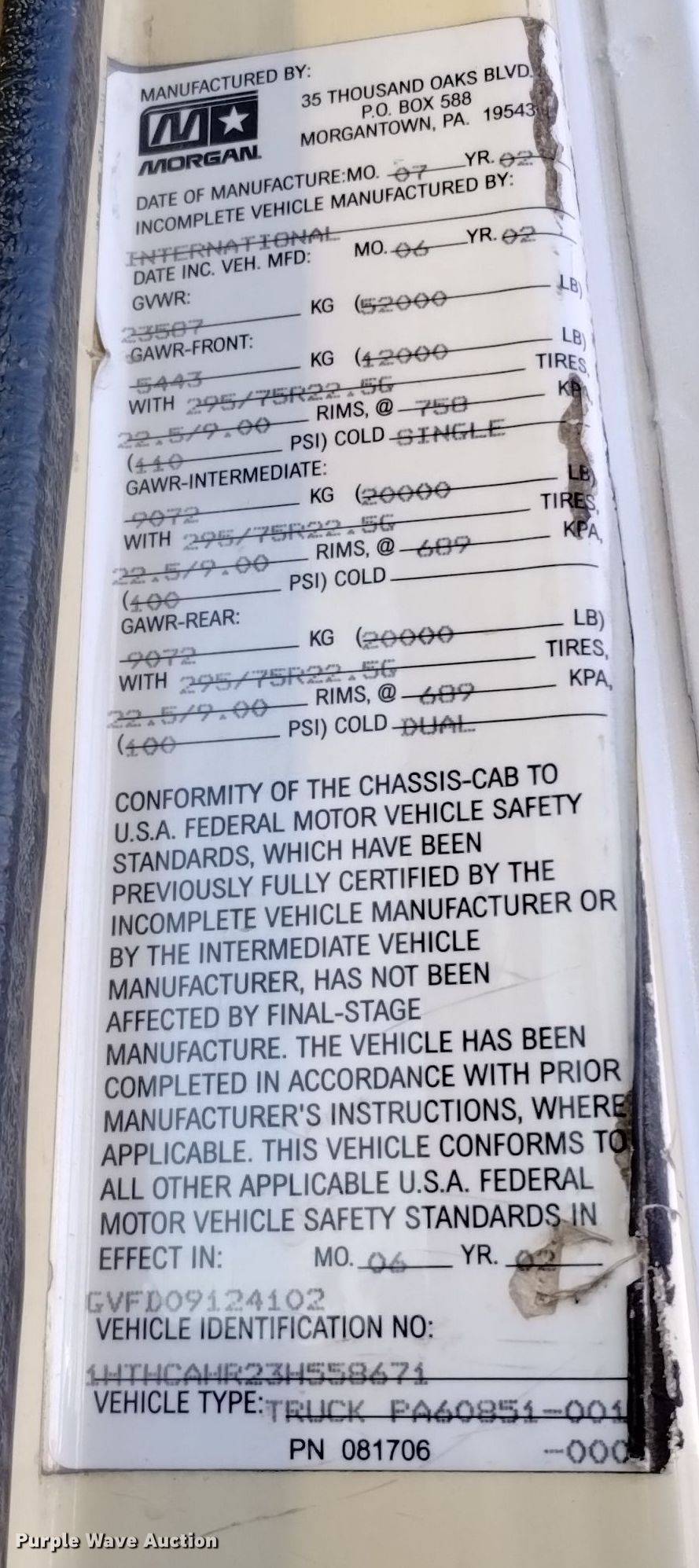 Purple Wave is selling a used Box Truck in Colorado. This item is a 2003 International 8100 box truck with mud mixing system with the following: Miles: 329,354 on odometer, VIN: 1HTHCAHR23H558671